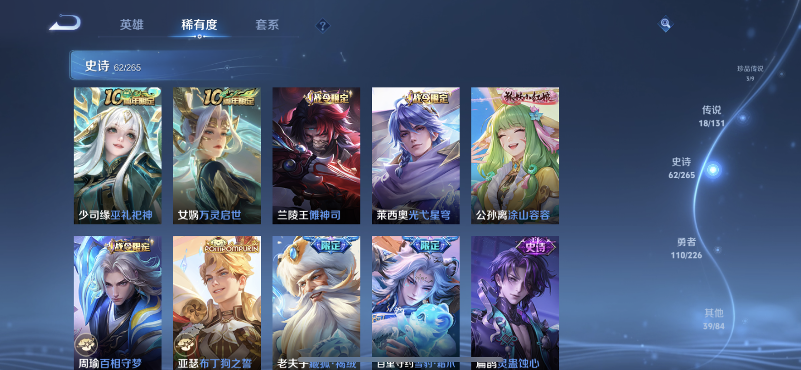 【王者荣耀】【lywz20996】珍品无双0 典藏1 无双2 珍品传说3 传说18 史诗62 英雄126 皮肤235 贵族8级 荣耀典藏:弑呛猎影__无双皮肤:器灵·螭龙剑|神罪__珍品传说:兔狲·蓬尾|大耳狗之梦|酷洛米之心__传说皮肤:无双飞将|绛天战甲|炽阳神光|启明星使|地狱之眼|仲夏夜之梦|久胜战神|刘备-时之恋人|云鹰飞将|游龙清影|孙尚香-末日机甲|马超-琥珀纪元|霜月吟|幻光神呛|祥瑞亨通|愿照·九州拓|千山共赴|神树通天__稀有限定:一生所爱|大漠名商|海滩派对|海盐诗旅|胡桃异想国|皇家上将|剑破天穹|黎明之约|魔术师|女武神|千军破阵|擒涛扼浪|青焰无极|驱傩正仪|荣光圣徽|沙漠行僧|探海日志|无心|星界游侠|演武夺筹|阴阳师|驭风魔法|暗隐猎兽者|缤纷独角兽|冰冠公主|冰雪圆舞曲|乘风破浪|电玩小子|鬼剑武藏|黄金分割率|箭羽风息|节奏热浪|乐园奇幻夜|李元芳-蔬乡物语|魅力维加斯|魅语|女仆咖啡|偶像歌手|赏金猎手|圣诞狂欢|圣诞恋歌|水果甜心|孙策-猫狗日记|晚萤|星夜王子|摇滚巨星|鹰眼统帅|幽灵船长|钟无艳-超时空战士|逐浪之夏|紫霞仙子|东方月初|涂山红红|天穹之誓|怒海争锋|曙光守护者|心灵战警|无限星赏官|特工魅影|茶境仙|谧流熔炉|狼魂孤将|绮世丹青|化蝶舞|云中旅人|玲珑珍味|钟馗-神迹守卫|达摩-星际陆战队|流音漫舞|访茗客|暖冬·兔眠|苍威无极|落雪兰心|刘禅-鸭鸭历险记|沈梦溪-鸭鸭历险记|灵蛊蚀心|藏狐·褐绒|雪豹·霜爪|龙之律动|布丁狗之约|虚灵犬护|布丁狗之誓|逆浪荇歌|孙策-百相守梦|周瑜-百相守梦|涂山容容|光弋星穹|傩神司|往忆晖光|荣光之誓|万灵启世|巫礼祀神|鹤鸣心笺__优质皮肤:一千零一夜|创世神祝|年年有余|孤猎|熊喵少女|未来旅行|激情绿茵|碧珀绯影|冰刃幻境|森|维京掠夺者|绯红之刃|启蛰|伊势巫女|画中游|威尼斯狂欢|第七人偶|芝加哥教父|街头旋风|地府判官|幸存者|赤焰之缨|前尘|三太子|精灵王|星航指挥官|龙域领主|爱与和平|占星师|花间舞|魇语军师|战争女神|加勒比小姐|阿摩司公爵|万圣前夜|异域游侠|暗都幽影|功夫炙烤|潮玩探月行|秘密基地|次元突破|鲨炮海盗猫|守护之力|坚韧之力|幻乐之宴|命运角斗场|幻想奇妙夜|海滩丽影|阿尔法小队|兔女郎|死亡骑士|黄金武士|天使之翼|红桃皇后|忍·炎影|爱心护理|街头霸王|教廷特使|破局者|零食大作战|太极少年|乐园追猎者|牛运亨通|幻泉雾影|危途狂花|胡桃狂想曲|潮玩牛仔|紫罗兰之誓|铁甲之心|重装意志|无尽征程|拳王|时尚教父|白色死神|大发明家|哥特玫瑰|魅影绮裳|西施-雪境奇遇|金福满堂|星梦巡礼|灵卦秘语|景韶洛都|浪漫序章|缤纷绘卷|掌控之力|纽约教父|龙腾万里|乱世虎臣|敏锐之力|孙悟空-西部大镖客|牛魔-西部大镖客|鲁班大师-归虚梦演|龙舞盛年|汉昭烈帝|乓乓大师|五福同心|蒙犽-归虚梦演|万事如意|曜-归虚梦演|花好人间|熔金海岸|万象初新|潮玩骑兵|妄想特派|秘证寻踪|春野闲踪|灵野札记|玫蓝誓约|命运加冕|潮玩士官长|踏浪烽翎|戏梦巡演|落日弦歌|青衿临川|哪吒-罗小黑战记|张良-罗小黑战记|径山谋武|逐霄之志__贵族等级:贵族8级__王者段位:荣耀王者荣耀典藏1 无双2 珍品传说3 星元皮肤2 传说皮肤18
