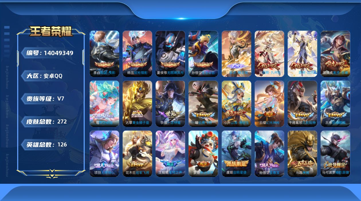[14049349]【终身售后 找回包赔】安卓手q315区272皮4典藏16传说1无双 营地id2112574587包人脸v7至尊星耀v 【无双皮肤】:器灵·螭龙剑【荣耀典藏】:弑呛猎影全息碎影无限飓风号鸣剑·曳影【优质限定皮肤】:山海·琳琅生瑶时之祈愿神威至尊宝【传说皮肤】:胖达荣荣幻光神呛愿照·山河定愿照·九州拓无限倾心山海·琳琅生怒海麟威星穹之声启明星使瑶时之祈愿冠军飞将一念神魔寅虎·赤拳久胜战神黄金狮子座云鹰飞将【特殊英雄】:嬴政,【史诗皮肤】:圣诞恋歌猫狗日记妄想食味器灵·浮梦炉游园惊梦猫狗日记水晶猎龙者燃音魔法星夜王子荣光圣徽冰雪圆舞曲江河有灵逐浪之夏电玩·爆裂旋风德古拉伯爵星界游侠虎魄地狱岩魂山海·玄木吟女仆咖啡未来纪元偶像歌手绅士熊喵顽趣无心优雅恋人五谷丰年梦圆繁星末日机甲鬼剑武藏摇滚巨星苍穹之光暗夜贵公子一生所爱暗隐猎兽者心灵战警火炮绅士修罗真爱至上曙光守护者暗渊魔法如梦令寅虎·展翼寅虎·御盾电玩小子傲雪梅呛青春决赛季黎明之约真爱魔法高山流水神威猪悟能金属风暴圣诞狂欢缤纷独角兽航海奇遇记蔷薇恋人冰锋战神幽灵船长云间偶戏水果甜心乱世虎臣功夫厨神原初追逐者纤云弄巧天才门将朱雀志李小龙特工魅影暗影游猎魔术师天狼绘梦者千年之狐皇家上将时之恋人迷踪丽影烈魂至尊宝乘风破浪鹰眼统帅梁祝魅力维加斯 星元:48天幕:1按键:9签名:2贵族:7点卷:2皮肤碎片:122荣耀积分:3英雄碎片:1071
