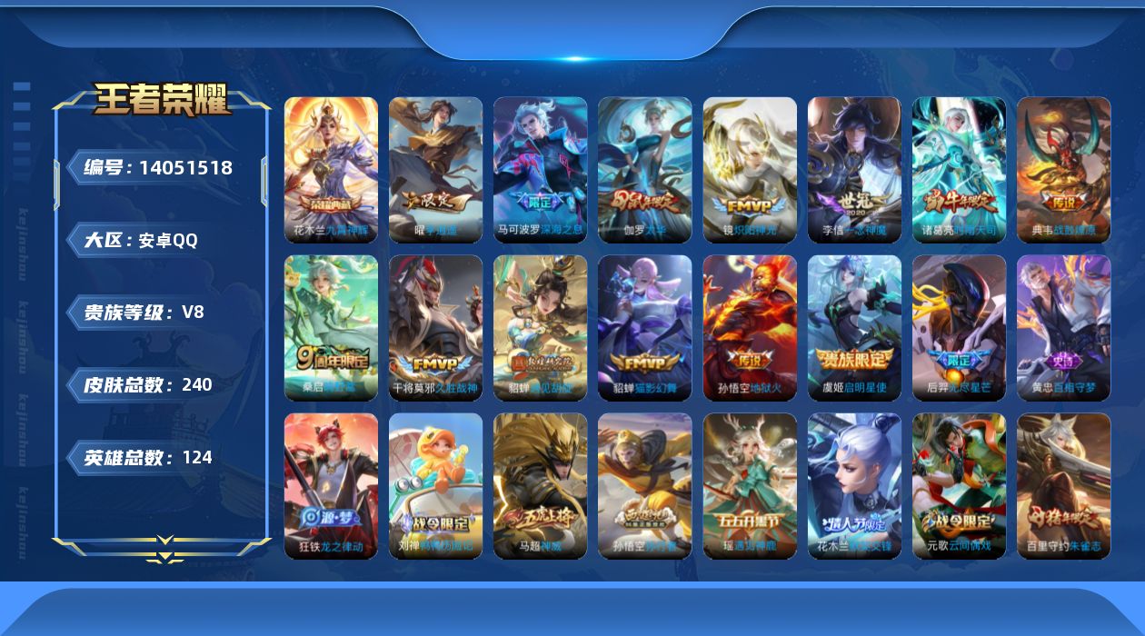 [14051518]【终身售后 找回包赔】安卓手q85区240皮1典藏14传说0无双 营地id526935022可二次v8永恒钻石iii 【荣耀典藏】:九霄神辉【优质限定皮肤】:神威【传说皮肤】:战鼓燎原鸣野蒿深海之息无尽星芒李 启明星使遇见胡旋太华炽阳神光久胜战神地狱火一念神魔时雨天司猫影幻舞【特殊英雄】:嬴政,【史诗皮肤】:百相守梦星夜王子鸭鸭历险记天秀·启明龙骑士末日机甲摇滚巨星金属风暴乱世虎臣鬼剑武藏火炮绅士冰冠公主拒霜思优雅恋人朱雀志高山流水圣诞恋歌暗渊魔法神威千年之狐真爱魔法猪悟能梁祝白龙吟圣诞狂欢孙行者时之奇旅遇见神鹿女仆咖啡冰雪圆舞曲猫狗日记热力回旋逐浪之夏乘风破浪航海奇遇记晚萤缤纷独角兽青蛇天狼溯光者时之恋人白鹤梁神女胡桃异想国猫狗日记云间偶戏德古拉伯爵水果甜心默契交锋无限星赏官暗隐猎兽者魔术师霸王别姬修罗白晶晶曙光守护者箭羽风息魅语狂想玩偶喵皇家上将纤云弄巧特工魅影节奏热浪紫霞仙子心灵骇客鹰眼统帅魅力维加斯龙之律动 星元:27天幕:3按键:2签名:1贵族:8点卷:9皮肤碎片:37荣耀积分:12英雄碎片:96