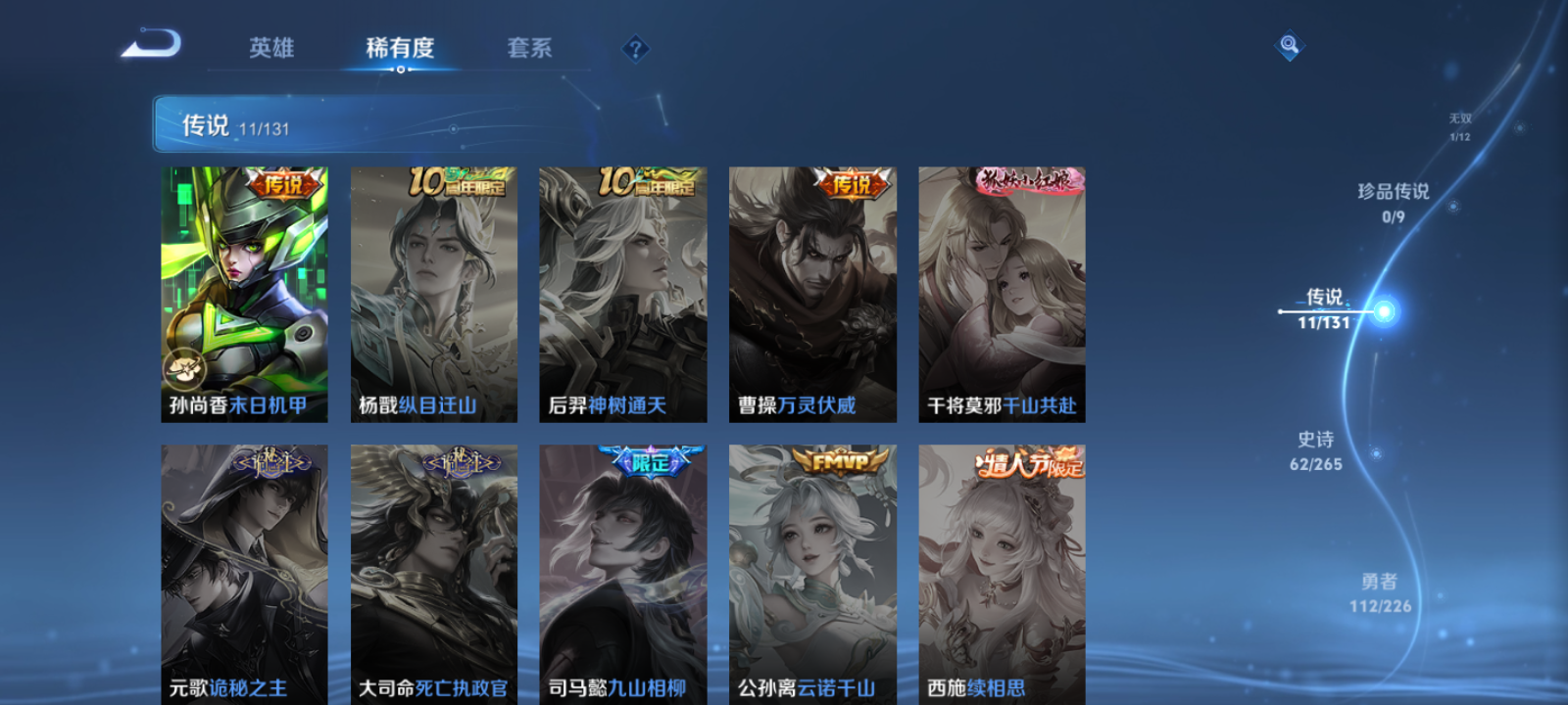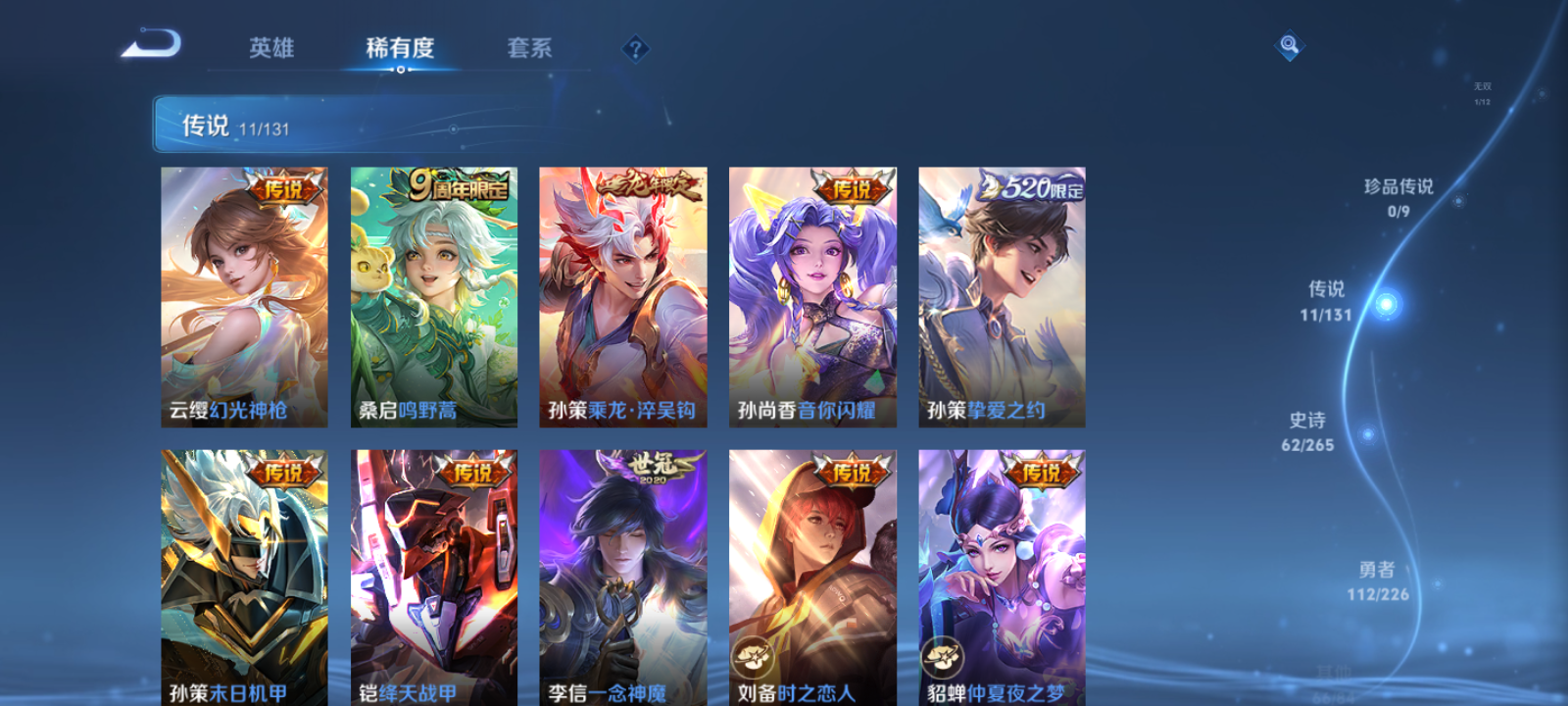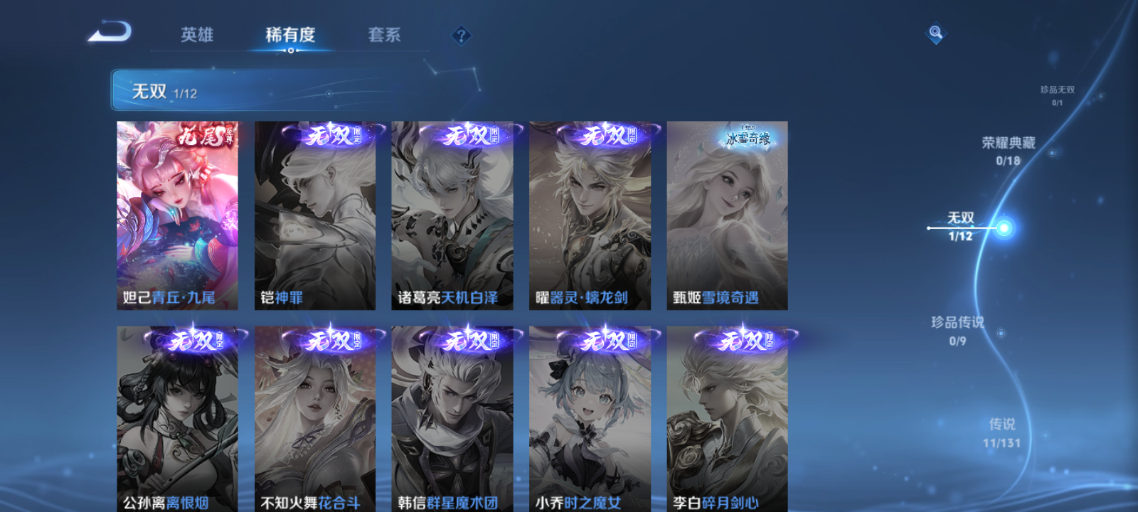 【王者荣耀】【lywz21004】珍品无双0 典藏0 无双1 珍品传说0 传说11 史诗62 英雄124 皮肤252 贵族2级 无双皮肤:青丘·九尾__传说皮肤:鸣野蒿|音你闪耀|挚爱之约|绛天战甲|孙策-末日机甲|仲夏夜之梦|刘备-时之恋人|一念神魔|孙尚香-末日机甲|乘龙·淬吴钩|幻光神呛__稀有限定:白晶晶|至尊宝|青龙志|朱雀志|蔷薇恋人|梁祝|拒霜思|百里守约-真我赫兹|大漠名商|地狱燃心|电玩高手|古海寻踪|海滩派对|海盐诗旅|航海奇遇记|胡桃异想国|皇家上将|剑破天穹|江河有灵|金庭之子|黎明之约|魔术师|奇幻香踪|千军破阵|擒涛扼浪|青焰无极|驱傩正仪|燃音魔法|沙漠行僧|探海日志|天狼绘梦者|天穹祈灯|玩趣恶龙|万华元夜|妄想食味|五谷丰年|午后时光|演武夺筹|阴阳师|驭风魔法|云间偶戏|真爱魔法|暗夜贵公子|暗隐猎兽者|缤纷独角兽|冰冠公主|冰雪圆舞曲|苍穹之光|大乔-猫狗日记|德古拉伯爵|电玩·爆裂旋风|功夫厨神|鬼剑武藏|金属风暴|魅力维加斯|魅语|女仆咖啡|上官婉儿-群星魔术团|绅士熊喵|圣诞狂欢|圣诞恋歌|水果甜心|水晶猎龙者|孙策-猫狗日记|天秀·启明|晚萤|鹰眼统帅|幽灵船长|遇见神鹿|钟无艳-超时空战士|逐浪之夏|百里守约-百相守梦|老夫子-百相守梦|噬灭天穹|敬我三分|蔡文姬-夏日便利店|虞姬-夏日便利店|天穹之誓|心灵战警|刘备-百相守梦|孙尚香-时之恋人|舞动绿茵|心灵骇客|谧流熔炉|云中旅人|玲珑珍味|达摩-星际陆战队|流音漫舞|灵卜魔法|苍威无极|圣弓游侠|墨子-神迹守卫|落雪兰心|布丁狗之约|虚灵犬护|鹤鸣心笺__优质皮肤:一千零一夜|创世神祝|年年有余|埃及法老|孤猎|木偶奇遇记|熊喵少女|午夜歌剧院|露花倒影|未来旅行|激情绿茵|海之征途|天启骑士|碧珀绯影|锦衣卫|森|超能战警|英喵野望|维京掠夺者|海军大将|绯红之刃|踏雪寻梅|启蛰|伊势巫女|画中游|生化警戒|威尼斯狂欢|第七人偶|芝加哥教父|街头旋风|绝影神呛|地府判官|荷鲁斯之眼|赤焰之缨|福禄兄弟|隐刃|前尘|特种部队|三太子|剑舞者|范海辛|星航指挥官|龙域领主|爱与和平|花间舞|花见巫女|蔷薇王座|灼热之刃|精准探案法|圣殿之光|帝国元帅|战争女神|霓裳曲|加勒比小姐|阿摩司公爵|异域舞娘|精灵公主|修竹墨客|万圣前夜|异域游侠|功夫炙烤|暖冬絮语|潮玩探月行|瓷语鉴心|秘密基地|次元突破|鲨炮海盗猫|野性能量|丁香结|虹云星官|守护之力|坚韧之力|幻乐之宴|功夫老勺|命运角斗场|海滩丽影|阿尔法小队|兔女郎|死亡骑士|黄金武士|少女阿狸|天使之翼|玩偶对对碰|宫本武藏-未来纪元|东方不败|忍·炎影|街头霸王|教廷特使|零食大作战|潮玩造梦师|危途狂花|紫罗兰之誓|铁甲之心|救世之瞳|白色死神|大发明家|哥特玫瑰|西施-雪境奇遇|星梦巡礼|浪漫序章|缤纷绘卷|掌控之力|雾都夜雨|逐霄战戟|铁骨偃魂|纽约教父|龙腾万里|乱世虎臣|敏锐之力|西施-归虚梦演|孙悟空-西部大镖客|牛魔-西部大镖客|鲁班大师-归虚梦演|热血海滩|汉昭烈帝|乓乓大师|五福同心|盾山-圆桌骑士|猎兽之王|蒙犽-归虚梦演|唤灵魔甲|太乙真人-圆桌骑士|沉稳之力|程咬金-群星魔术团|化身博士|花好人间|熔金海岸|潮玩骑士王|潮玩骑兵|苍林狼骑|蔚蓝守将|劲辣红锅|特工战影|炽热元素使|妄想特派|春野闲踪|灵野札记|玫蓝誓约|命运加冕|小满鸭|无双福将__贵族等级:贵族2级__王者段位:永恒钻石精美小号 妲己无双 乘龙·淬吴钩,一念神魔,朱雀志,青龙志,真爱魔法,白晶晶,至尊宝,末日机甲,挚爱之约,时之恋人,音你闪耀,末日机甲