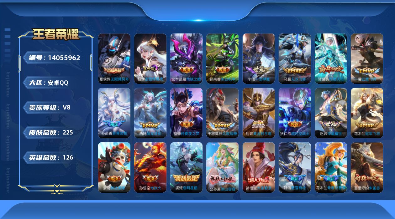 [14055962]【终身售后 找回包赔】安卓手q385区225皮1典藏17传说0无双 营地id94177850可二次v8至尊星耀iv 【荣耀典藏】:无限飓风号【优质限定皮肤】:无双飞将【传说皮肤】:胖达荣荣无双飞将异界灵契淬星耀世云鹰飞将超时空战士启明星使游龙清影久胜战神一念神魔时雨天司冠军飞将黄金射手座地狱火末日机甲仲夏夜之梦地狱之眼【特殊英雄】:嬴政,【史诗皮肤】:暗渊魔法江河有灵晚萤涂山容容水晶猎龙者鬼剑武藏妄想食味永昼天才门将火炮绅士星夜王子傲雪梅呛拒霜思圣诞恋歌修罗朱雀志高山流水真爱魔法梁祝水果甜心时之奇旅幽灵船长鹰眼统帅乒乒小将天狼溯光者航海奇遇记女仆咖啡胡桃异想国心灵骇客诗语江南心灵战警时之恋人猫狗日记摇滚巨星白昼王子乱世虎臣大圣娶亲一生所爱引擎之心节奏热浪遇见飞天曙光守护者德古拉伯爵乘风破浪特工魅影白龙吟嘻哈天王魔术师青春决赛季圣诞狂欢游园惊梦暗隐猎兽者皇家上将紫霞仙子千年之狐魅力维加斯偶像歌手 星元:44星传说:1天幕:1按键:2贵族:8点卷:15皮肤碎片:179荣耀积分:32英雄碎片:240星传说:貂蝉-金色仲夏夜
