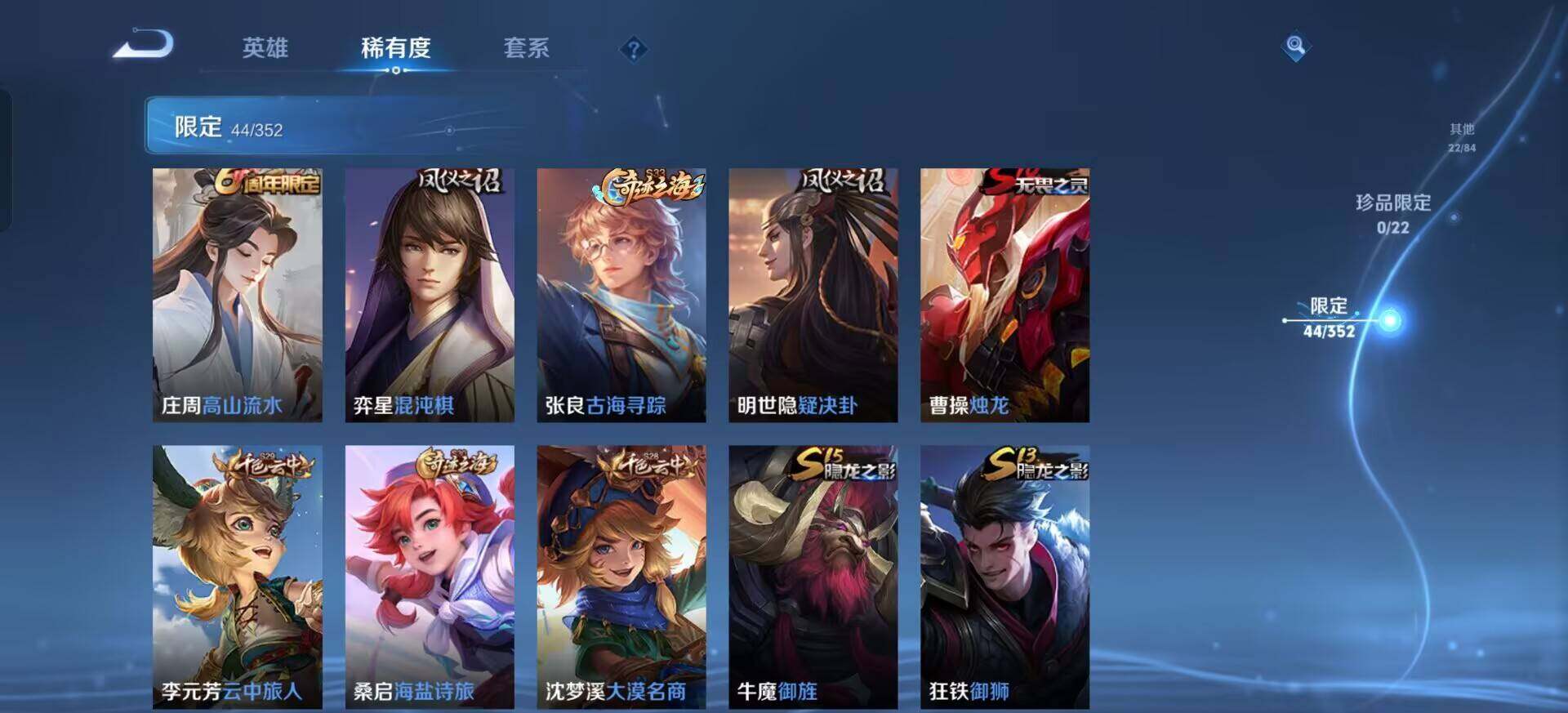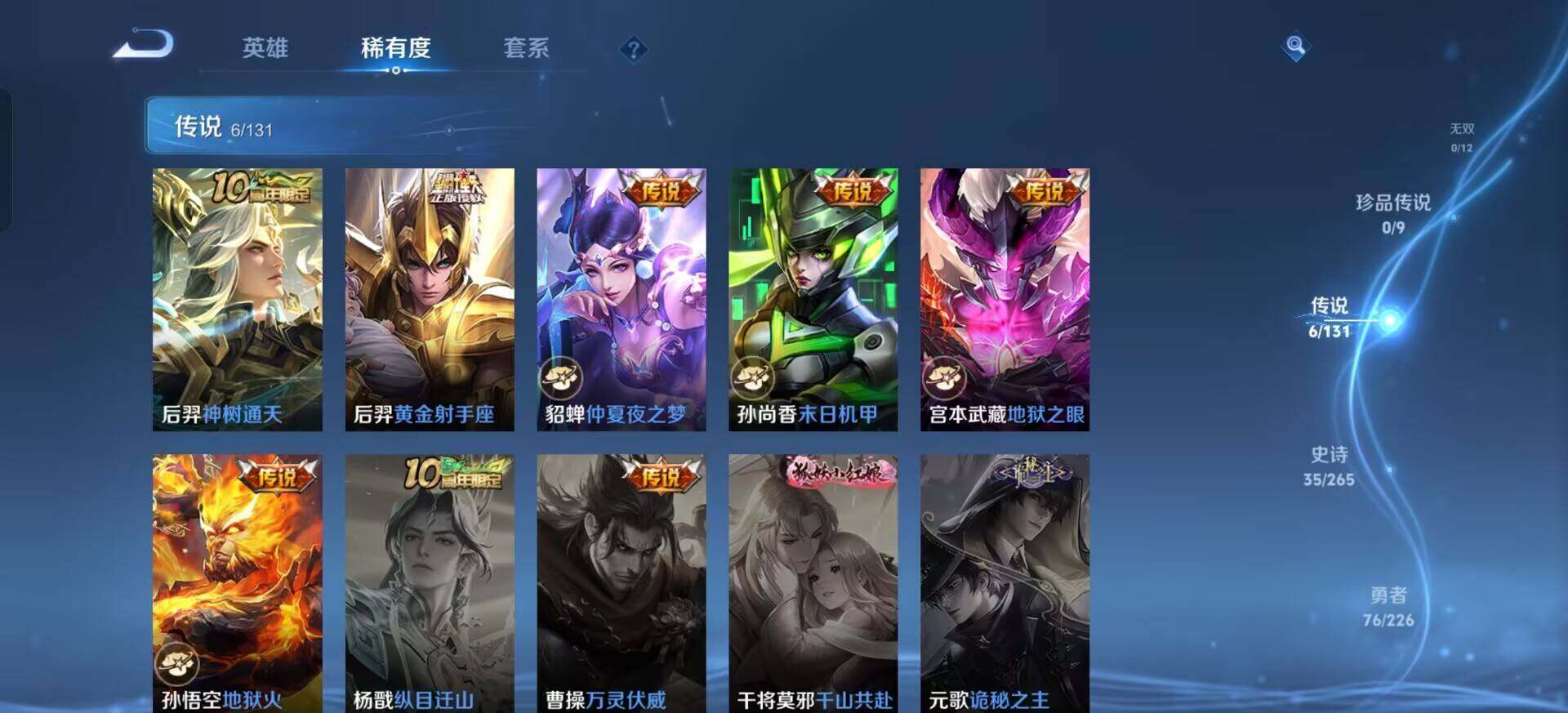 w9697 可立即换绑无需挂单养号 铭文满级 传说6 按键1 夺宝75 安卓q-v7-荣耀黄金iii段位-122英雄-139皮肤-0典藏-0珍品无双-0无双-0珍品传说-6传说-35史诗 【传说皮肤】:后羿神树通天,后羿黄金射手座,貂蝉仲夏夜之梦,孙尚香末日机甲,宫本武藏地狱之眼,孙悟空地狱火 【限定皮肤】:白起狰,狄仁杰阴阳师,赵云皇家上将,庄周高山流水,高渐离玩趣恶龙,芈月重明,夏