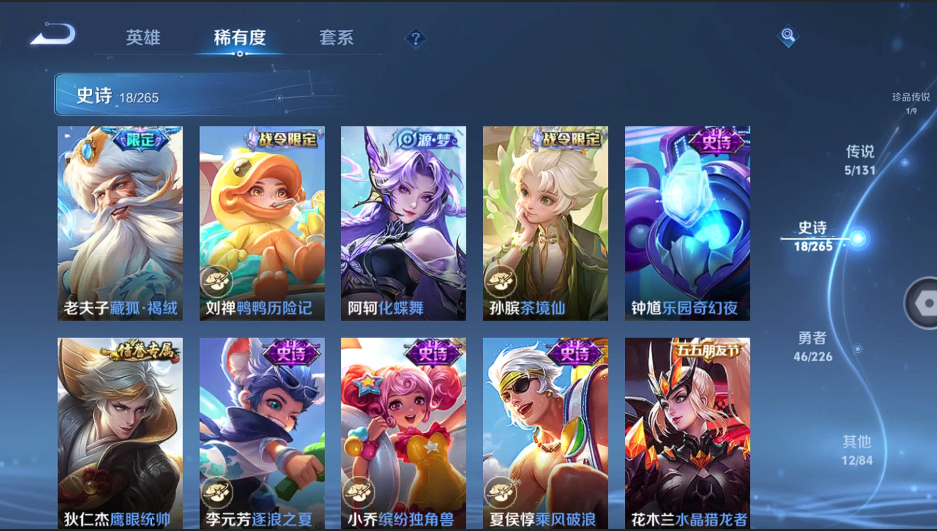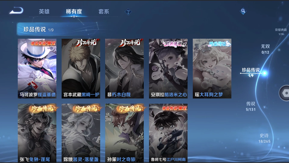 【王者荣耀】【lywz21116】珍品无双0 典藏1 无双0 珍品传说1 传说5 史诗18 英雄100 皮肤83 贵族0级 荣耀典藏:弑呛猎影__珍品传说:怪盗基德__传说皮肤:鸣野蒿|幻光神呛|愿照·九州拓|愿照·千秋盛|云诺千山__稀有限定:海滩派对|皇家上将|剑破天穹|金庭之子|天穹祈灯|缤纷独角兽|乘风破浪|鬼剑武藏|乐园奇幻夜|吕布-末日机甲|水果甜心|水晶猎龙者|赵云-未来纪元|鹰眼统帅|幽灵船长|逐浪之夏|噬灭天穹|敬我三分|天穹之誓|千年之狐|茶境仙|谧流熔炉|化蝶舞|访茗客|刘禅-鸭鸭历险记|沈梦溪-鸭鸭历险记|藏狐·褐绒|布丁狗之约|虚灵犬护__优质皮肤:创世神祝|埃及法老|孤猎|激情绿茵|启蛰|战争骑士|绝影神呛|赤焰之缨|占星师|魇语军师|加勒比小姐|破阵·退雄兵|暗都幽影|秘密基地|次元突破|野性能量|功夫老勺|幻想奇妙夜|死亡骑士|少女阿狸|天使之翼|玩偶对对碰|爱心护理|街头霸王|金色潮汐|零食大作战|白色死神|西施-雪境奇遇|爆裂喵拳|景韶洛都|浪漫序章|猪八戒-西部大镖客|雾都夜雨|逐霄战戟|铁骨偃魂|乱世虎臣|敏锐之力|龙舞盛年|万事如意|曜-归虚梦演|程咬金-群星魔术团|花好人间|熔金海岸|春野之旅|苍林狼骑|蔚蓝守将|玫蓝誓约__贵族等级:无贵族等级__王者段位:非凡王者练手小号 韩信典藏 马可珍品传说 云诺千山,愿照·千秋盛,愿照·九州拓等限定皮肤