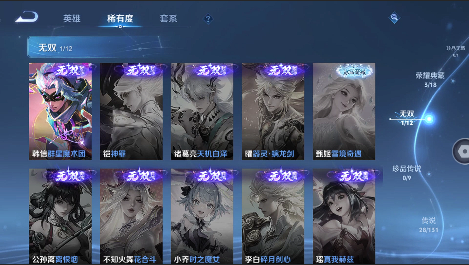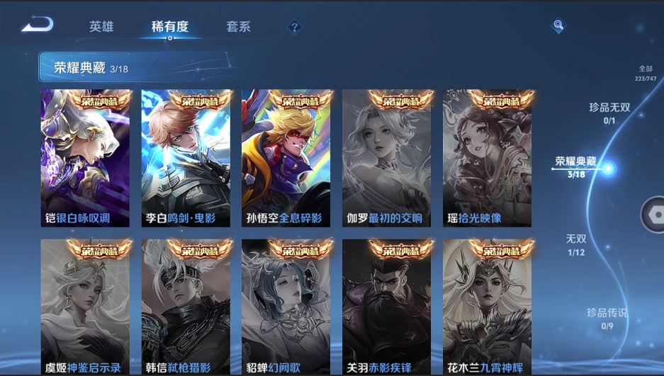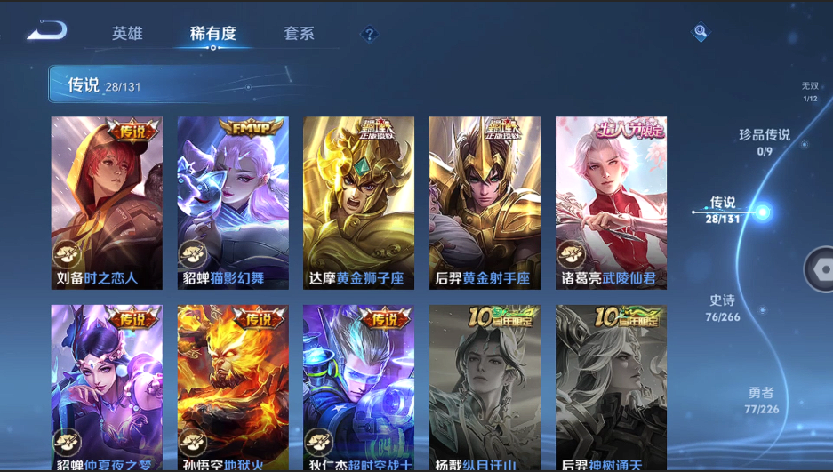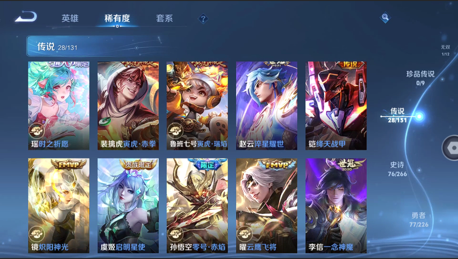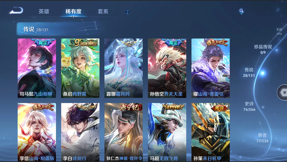 【王者荣耀】【lywz21094】珍品无双0 典藏3 无双1 珍品传说0 传说28 史诗75 英雄127 皮肤223 贵族9级 荣耀典藏:全息碎影|银白咏叹调|鸣剑·曳影__无双皮肤:群星魔术团__传说皮肤:鸣野蒿|无双飞将|绛天战甲|炽阳神光|启明星使|地狱火|孙策-末日机甲|仲夏夜之梦|黄金狮子座|狄仁杰-超时空战士|黄金射手座|猫影幻舞|刘备-时之恋人|一念神魔|云鹰飞将|淬星耀世|瑶-时之祈愿|齐天大圣|零号·赤焰|诗剑行|霜月吟|武陵仙君|寅虎·瑞焰|山海·苍雷引|山海·炽霜斩|神器·狴犴令|寅虎·赤拳|九山相柳__稀有限定:至尊宝|一生所爱|飞衡|蔷薇恋人|孙行者|傲雪梅呛|山海·玄木吟|神器·万象笔|百木心呛|大漠名商|古海寻踪|海滩派对|海盐诗旅|后羿-如梦令|幻夜卜梦|皇家上将|火炮绅士|剑破天穹|金庭之子|梦圆繁星|魔术师|匿光追影者|擒涛扼浪|青焰无极|燃音魔法|沙漠行僧|探海日志|天穹祈灯|妄想食味|无心|五谷丰年|星界游侠|夜都怪侠|阴阳师|吟游魔法|驭风魔法|原初追逐者|云间偶戏|暗夜贵公子|暗隐猎兽者|暗渊魔法|白龙吟|缤纷独角兽|冰冠公主|冰雪圆舞曲|德古拉伯爵|功夫厨神|鬼剑武藏|黄金分割率|箭羽风息|节奏热浪|金属风暴|乐园奇幻夜|吕布-末日机甲|魅力维加斯|梦奇-顽趣|女仆咖啡|赏金猎手|圣诞狂欢|圣诞恋歌|水果甜心|水晶猎龙者|孙策-猫狗日记|天才门将|赵云-未来纪元|星夜王子|鹰眼统帅|永昼|幽灵船长|月团寄思|云中君-时之祈愿|钟无艳-超时空战士|逐浪之夏|紫霞仙子|噬灭天穹|破空之剑|蔡文姬-夏日便利店|虞姬-夏日便利店|天穹之誓|修罗|曙光守护者|千年之狐|特工魅影|心灵骇客|茶境仙|谧流熔炉|云中旅人|孙悟空-神迹守卫|访茗客|暖冬·兔眠|灵卜魔法|落雪兰心|刘禅-鸭鸭历险记|沈梦溪-鸭鸭历险记|龙之律动|虚灵犬护|石田雨龙|逆浪荇歌|孙策-百相守梦|周瑜-百相守梦|黄忠-百相守梦|涂山容容|荣光之誓|鹤鸣心笺__优质皮肤:创世神祝|孤猎|熊喵少女|午夜歌剧院|激情绿茵|海之征途|天启骑士|秩序猎龙将|冰刃幻境|超能战警|绯红之刃|踏雪寻梅|启蛰|伊势巫女|画中游|第七人偶|潮流仙人|芝加哥教父|街头旋风|绝影神呛|地府判官|幸存者|赤焰之缨|福禄兄弟|精灵王|剑舞者|龙域领主|爱与和平|占星师|魇语军师|棒球奇才|灼热之刃|帝国元帅|神奇女侠|加勒比小姐|万圣前夜|潮玩探月行|野性能量|丁香结|守护之力|坚韧之力|功夫老勺|幻想奇妙夜|海滩丽影|兔女郎|死亡骑士|天使之翼|玩偶对对碰|宫本武藏-未来纪元|忍·炎影|街头霸王|教廷特使|时空谍影|西部游侠|牛运亨通|幻泉雾影|潮玩造梦师|危途狂花|铁甲之心|拳王|白色死神|白执事|星梦巡礼|掌控之力|铁骨偃魂|纽约教父|孙悟空-西部大镖客|牛魔-西部大镖客|龙舞盛年|汉昭烈帝|乓乓大师|万事如意|曜-归虚梦演|唤灵魔甲|程咬金-群星魔术团|化身博士|花好人间|熔金海岸|万象初新|苍林狼骑|蔚蓝守将|死霸装|踏浪烽翎|克喵|青衿临川|哪吒-罗小黑战记__贵族等级:贵族9级__王者段位:非凡王者打野皮肤号 3典藏 韩信无双 九山相柳,霜月吟,山海·苍雷引,山海·炽霜斩,淬星耀世,启明星使等限定皮肤