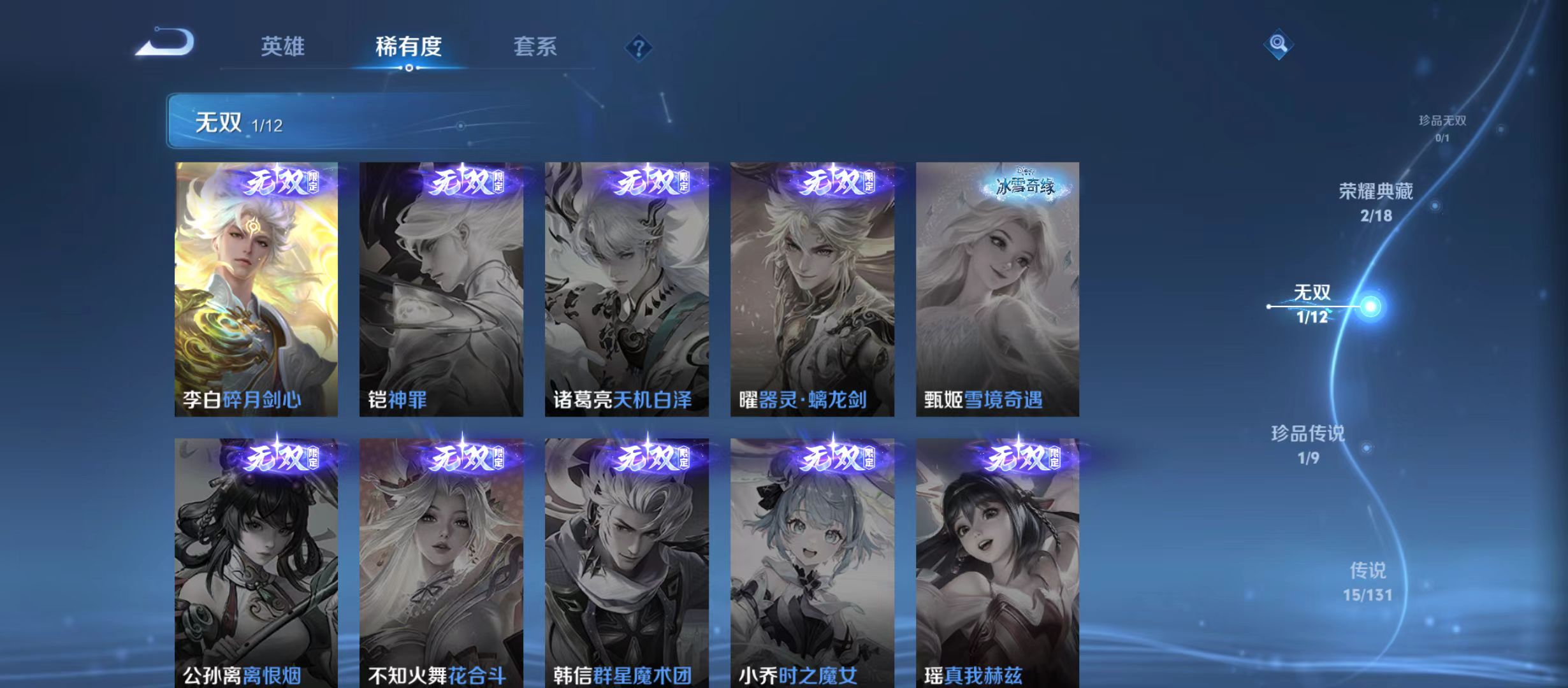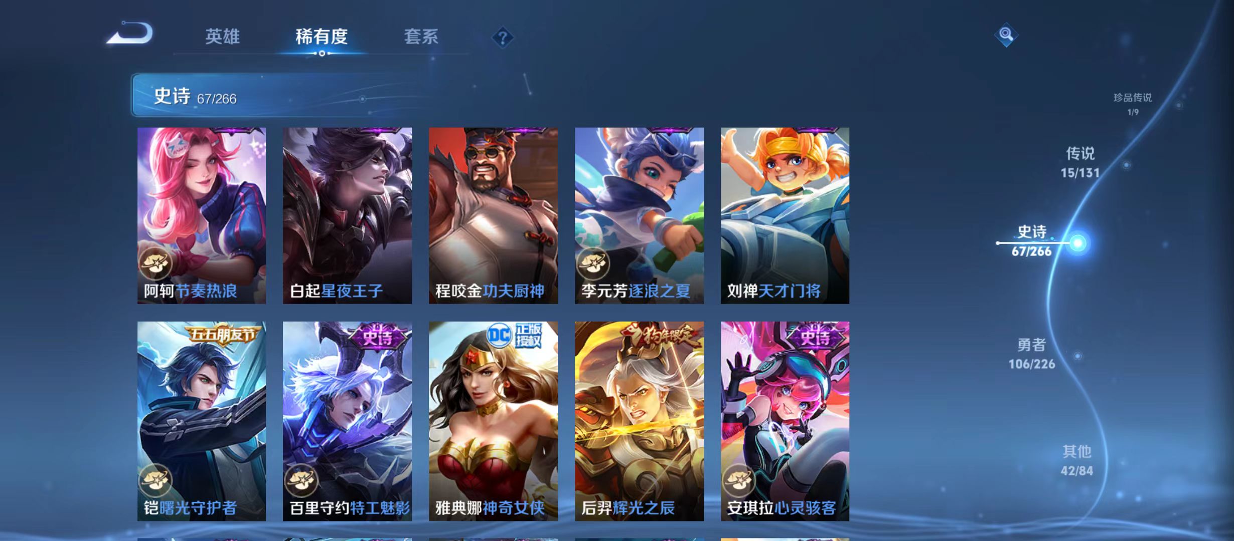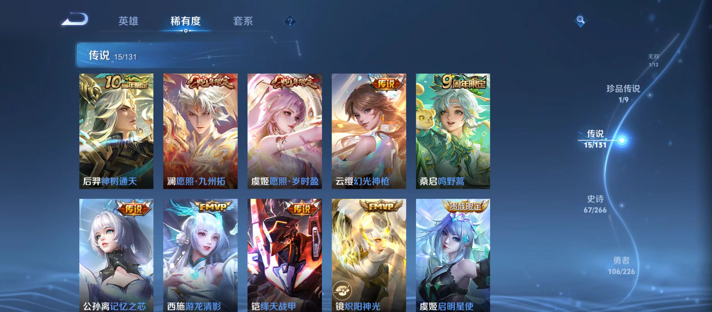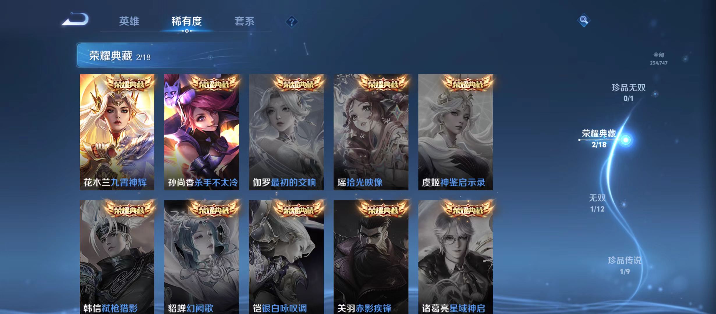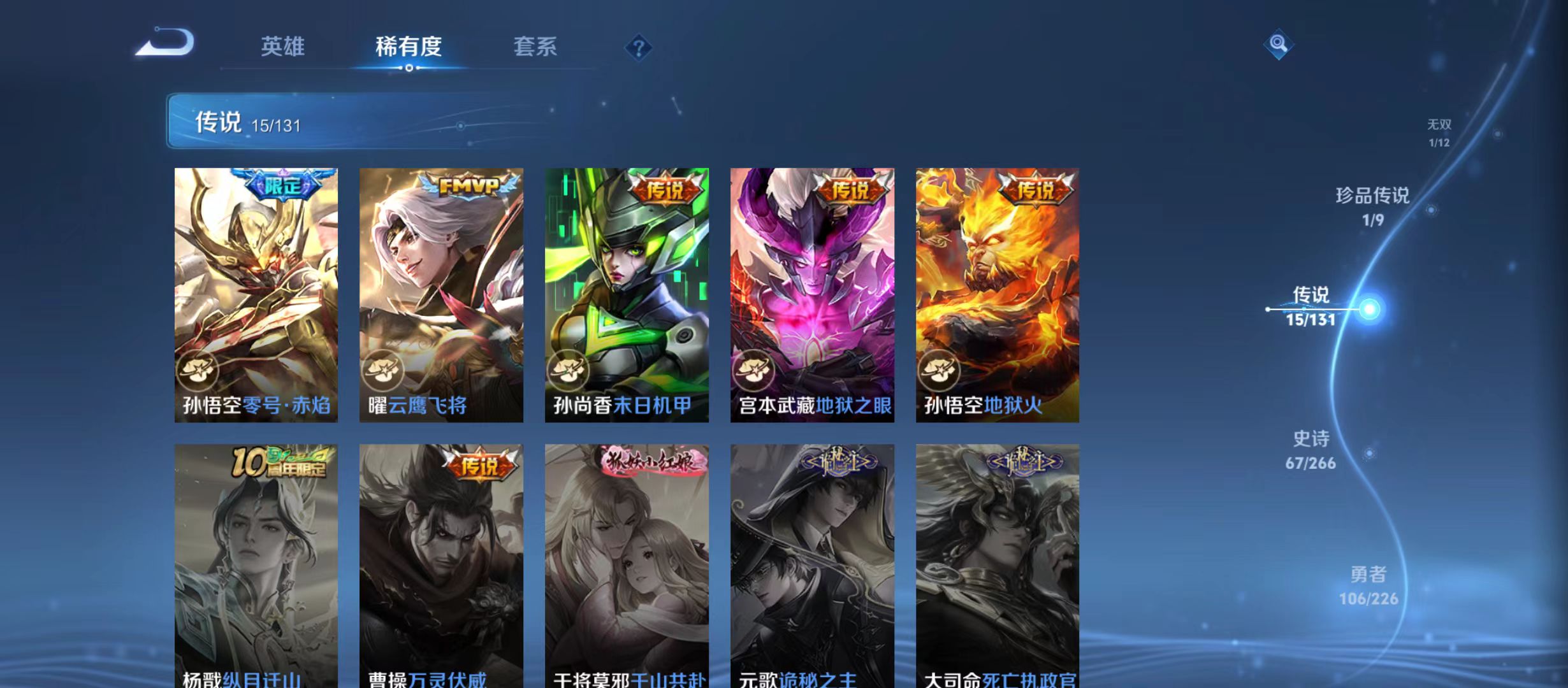 v8-234皮肤 2典藏杀手不太冷,九霄神辉 1无双碎月剑心 1珍品怪盗基德 15传说神树通天,地狱之眼,启明星使,愿照·九州拓,愿照·岁时盈,末日机甲,幻光神呛,鸣野蒿,记忆之芯,游龙清影,云鹰飞将,炽阳神光,绛天战甲,零号·赤焰,地狱火 66史诗