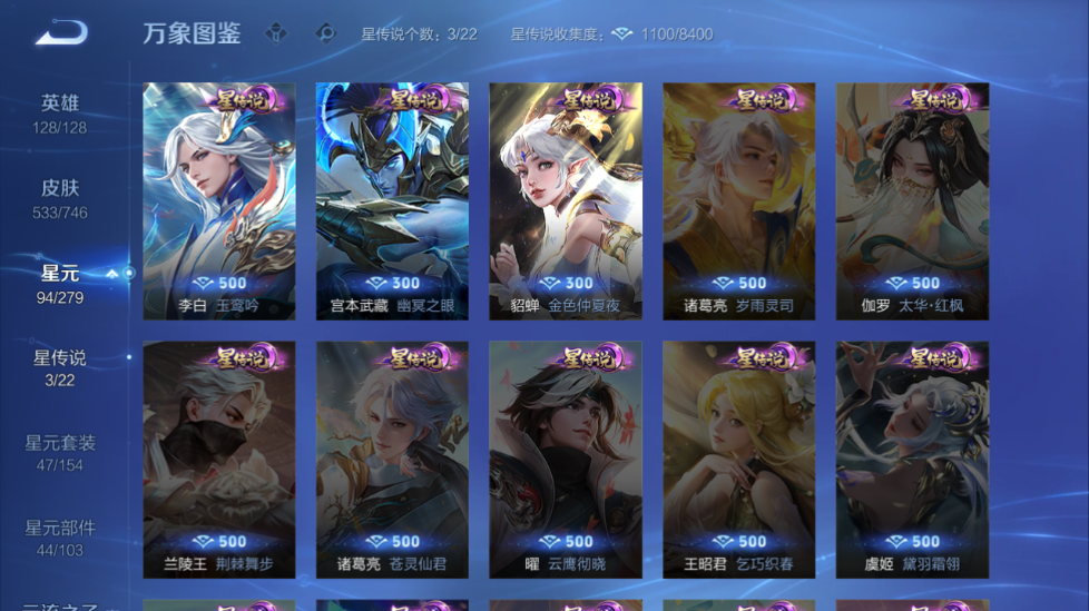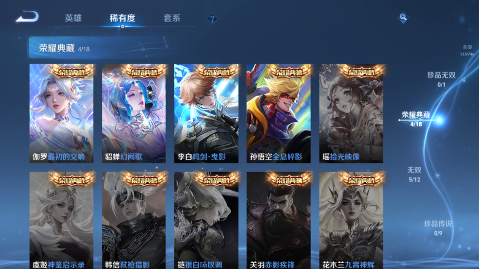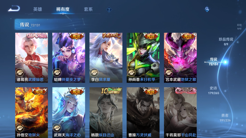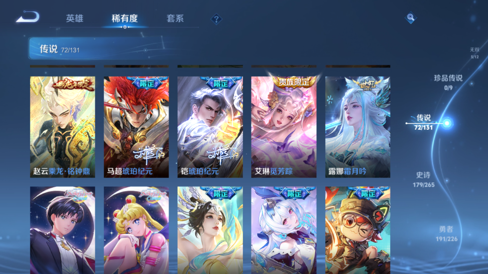 【王者荣耀】【lywz21079】珍品无双0 典藏4 无双5 珍品传说0 传说72 史诗179 英雄128 皮肤533 贵族10级 荣耀典藏:全息碎影|武则天|幻阙歌|鸣剑·曳影|最初的交响__无双皮肤:时之魔女|碎月剑心|真我赫兹|青丘·九尾|神罪__传说皮肤:鸣野蒿|深海之息|无尽星芒|无双飞将|启示之音|花朝如约|异界灵契|绛天战甲|炽阳神光|启明星使|胖达荣荣|地狱之眼|地狱火|海洋之心|仲夏夜之梦|云霓雀翎|久胜战神|黄金狮子座|黄金射手座|黄金白羊座|猫影幻舞|一念神魔|云鹰飞将|冠军飞将|李|游龙清影|乞巧织情|淬星耀世|鹤羽星尊|画中仙|记忆之芯|孙尚香-末日机甲|白虎志|大乔-时之奇旅|凤求凰|惊梅引|铠-琥珀纪元|兰陵王-默契交锋|鲁班七号-时之奇旅|马超-琥珀纪元|怒海麟威|祈雪灵祝|诗剑行|时雨天司|霜月吟|太华|妄想实况|武陵仙君|武圣|亚瑟-追逃游戏|夜礼服假面|寅虎·瑞焰|影龙天霄|永恒水手月亮|永曜之星|遇见神鼓|乘龙·淬吴钩|乘龙·铭钟鼎|乘龙·问璇玑|云缨-鹤归松栖|觅芳踪|寅虎·赤拳|至美·化雀舞|灼幽烈阳|张飞-百相守梦|幻光神呛|愿照·九州拓|愿照·众生和|愿照·福禄聚|愿照·千秋盛|云诺千山|神树通天__稀有限定:寅虎·御盾|寅虎·展翼|寅虎·心曲|至尊宝|梅西|青龙志|玄武志|朱雀志|虞姬-霸王别姬|大圣娶亲|一生所爱|引擎之心|飞衡|蔷薇恋人|蜜橘之夏|神威|青春决赛季|孙行者|猪悟能|女儿国国王|傲雪梅呛|李小龙|梁祝|时之彼端|狮舞东方|唐三藏|拒霜思|暗影游猎|白昼王子|百解令|百里守约-真我赫兹|百木心呛|冰锋战神|冰霜恋舞曲|嫦娥-如梦令|大漠名商|地狱燃心|电玩高手|繁星吟游|凤凰于飞|高山流水|古海寻踪|海滩派对|海盐诗旅|航海奇遇记|胡桃异想国|幻夜卜梦|皇家上将|辉光之辰|混沌棋|火炮绅士|剑破天穹|江河有灵|金庭之子|镜-真我赫兹|凯尔特女王|蓝屏警告|黎明之约|炼金王|美猴王|迷踪丽影|魔术师|花木兰-默契交锋|匿光破解者|匿光侦查者|女武神|奇幻香踪|千军破阵|擒涛扼浪|穷奇|驱傩正仪|燃音魔法|荣光圣徽|沙漠行僧|朔风刀|死亡摇滚|探海日志|饕餮|醍醐杖|天狼绘梦者|天狼溯光者|天狼运算者|天狼征服者|天穹祈灯|玩趣恶龙|阿古朵-顽趣|万华元夜|无心|五谷丰年|午后时光|纤云弄巧|项羽-霸王别姬|星界游侠|星空之诺|驯魔猎人|演武夺筹|妖精王|夜都怪侠|疑决卦|阴阳师|吟游魔法|银河之约|游园惊梦|驭风魔法|遇见飞天|御旌|御銮|御狮|原初追逐者|云端筑梦师|云间偶戏|真爱魔法|逐梦之光|逐梦之星|逐梦之影|暗夜贵公子|暗夜猫娘|暗隐猎兽者|暗渊魔法|白龙吟|白蛇|缤纷独角兽|冰冠公主|冰雪圆舞曲|苍穹之光|乘风破浪|乘龙·聚宝船|乘龙·忆丹青|大乔-猫狗日记|德古拉伯爵|地狱岩魂|电玩·爆裂旋风|电玩小子|浮梦罗烟|伽罗-琥珀纪元|功夫厨神|鬼剑武藏|黄金分割率|箭羽风息|节奏热浪|金属风暴|莱西奥-末日机甲|乐园奇幻夜|李元芳-蔬乡物语|龙鼓争鸣|龙骑士|吕布-末日机甲|玫瑰异探|魅力维加斯|魅语|梦奇-顽趣|女仆咖啡|偶像歌手|奇遇舞章|青蛇|热力回旋|赏金猎手|绅士熊喵|圣诞狂欢|圣诞恋歌|诗语江南|鲁班七号-蔬乡物语|水果甜心|水晶猎龙者|孙策-猫狗日记|滕王阁序|天才门将|天秀·幻梦|天秀·启明|天秀·音浪|完美假期|晚萤|赵云-未来纪元|闲日渔趣|星夜王子|雪上飞焰|雪夜绮愿|摇滚巨星|银翎春语|鹰眼统帅|永昼|幽灵船长|遇见神鹿|月团寄思|至美·乘鲤谣|周瑜-真爱至上|逐浪之夏|紫霞仙子|赵怀真-鹤归松栖|噬灭天穹|蔡文姬-夏日便利店|虞姬-夏日便利店|安琪拉-时之奇旅|修罗|曙光守护者|心灵战警|千年之狐|关羽-百相守梦|刘备-百相守梦|孙尚香-时之恋人|无限星赏官|舞动绿茵|特工魅影|心灵骇客|茶境仙|谧流熔炉|器灵·浮梦炉|狼魂孤将|化蝶舞|御霄|狰|烛龙|原初探秘者|重明|云中旅人|玲珑珍味|朔望之晖|钟馗-神迹守卫|流音漫舞|访茗客|暖冬·兔眠|灵卜魔法|夺宝奇兵|圣弓游侠|墨子-神迹守卫|死神来了|天堂福音|华尔街大亨|刘禅-鸭鸭历险记|沈梦溪-鸭鸭历险记|灵蛊蚀心|龙之律动|布丁狗之约|虚灵犬护|黄忠-百相守梦|涂山容容|光弋星穹|傩神司|往忆晖光|荣光之誓|巫礼祀神__优质皮肤:尼罗河女神|一千零一夜|创世神祝|年年有余|埃及法老|孤猎|木偶奇遇记|熊喵少女|午夜歌剧院|露花倒影|未来旅行|激情绿茵|海之征途|天启骑士|碧珀绯影|秩序猎龙将|锦衣卫|冰刃幻境|森|超能战警|英喵野望|维京掠夺者|海军大将|绯红之刃|踏雪寻梅|启蛰|战争骑士|伊势巫女|画中游|生化警戒|威尼斯狂欢|第七人偶|潮流仙人|芝加哥教父|街头旋风|绝影神呛|地府判官|荷鲁斯之眼|幸存者|赤焰之缨|福禄兄弟|隐刃|前尘|特种部队|三太子|精灵王|剑舞者|范海辛|星航指挥官|龙域领主|爱与和平|占星师|花间舞|魇语军师|极冰防御线|花见巫女|棒球奇才|东海龙王|蔷薇王座|灼热之刃|精准探案法|圣殿之光|帝国元帅|战争女神|霓裳曲|加勒比小姐|阿摩司公爵|异域舞娘|精灵公主|修竹墨客|万圣前夜|怪诞之夜|功夫炙烤|暖冬絮语|幻夜行动|聚星闪耀|潮玩探月行|虎啸剑宗|瓷语鉴心|秘密基地|次元突破|鲨炮海盗猫|野性能量|丁香结|奇妙博物学|虹云星官|科学大爆炸|守护之力|坚韧之力|幻乐之宴|功夫老勺|命运角斗场|幻想奇妙夜|海滩丽影|黑猫爱糖果|阿尔法小队|兔女郎|死亡骑士|黄金武士|少女阿狸|天使之翼|玩偶对对碰|宫本武藏-未来纪元|东方
