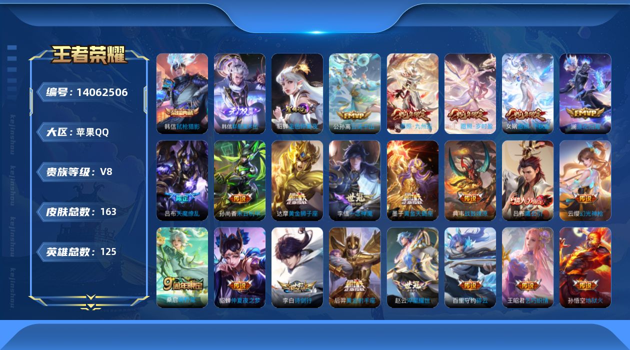 [14062506]【终身售后 找回包赔】苹果手q141区163皮1典藏24传说1无双 营地id1658759323包人脸v8无双王者 【无双皮肤】:群星魔术团【荣耀典藏】:弑呛猎影【星传说】:金色仲夏夜之梦,【优质限定皮肤】:天魔缭乱神威【传说皮肤】:黄金狮子座神树通天鸣野蒿淬星耀世仲夏夜之梦天魔缭乱末日机甲音你心动乞巧织情逐花归海诗剑行黄金天蝎座碎云曦玄引战鼓燎原地狱火一念神魔启明星使幻光神呛黄金射手座云诺千山愿照·千秋盛愿照·岁时盈愿照·九州拓【史诗皮肤】:舞动绿茵李小龙涂山容容心灵战警摇滚巨星月团寄思星夜王子百相守梦节奏热浪乘风破浪德古拉伯爵幽灵船长天才门将水果甜心夏日便利店女仆咖啡电玩小子鹰眼统帅浮光幕影功夫厨神鬼剑武藏水晶猎龙者怒海争锋天秀·幻梦孙行者决胜骁骑青焰无极心动手记特工魅影千年之狐神威群星魔术团未来纪元猫狗日记魔术师冰雪圆舞曲蔬乡物语修罗皇家上将百里守约真我赫兹航海奇遇记偶像歌手逐浪之夏魅力维加斯末日机甲化蝶舞绮世丹青山海·玄木吟器灵·浮梦炉紫霞仙子茶境仙原初追逐者 星元:9星传说:1按键:9签名:1贵族:8皮肤碎片:108荣耀积分:98英雄碎片:178星传说:貂蝉金色仲夏夜