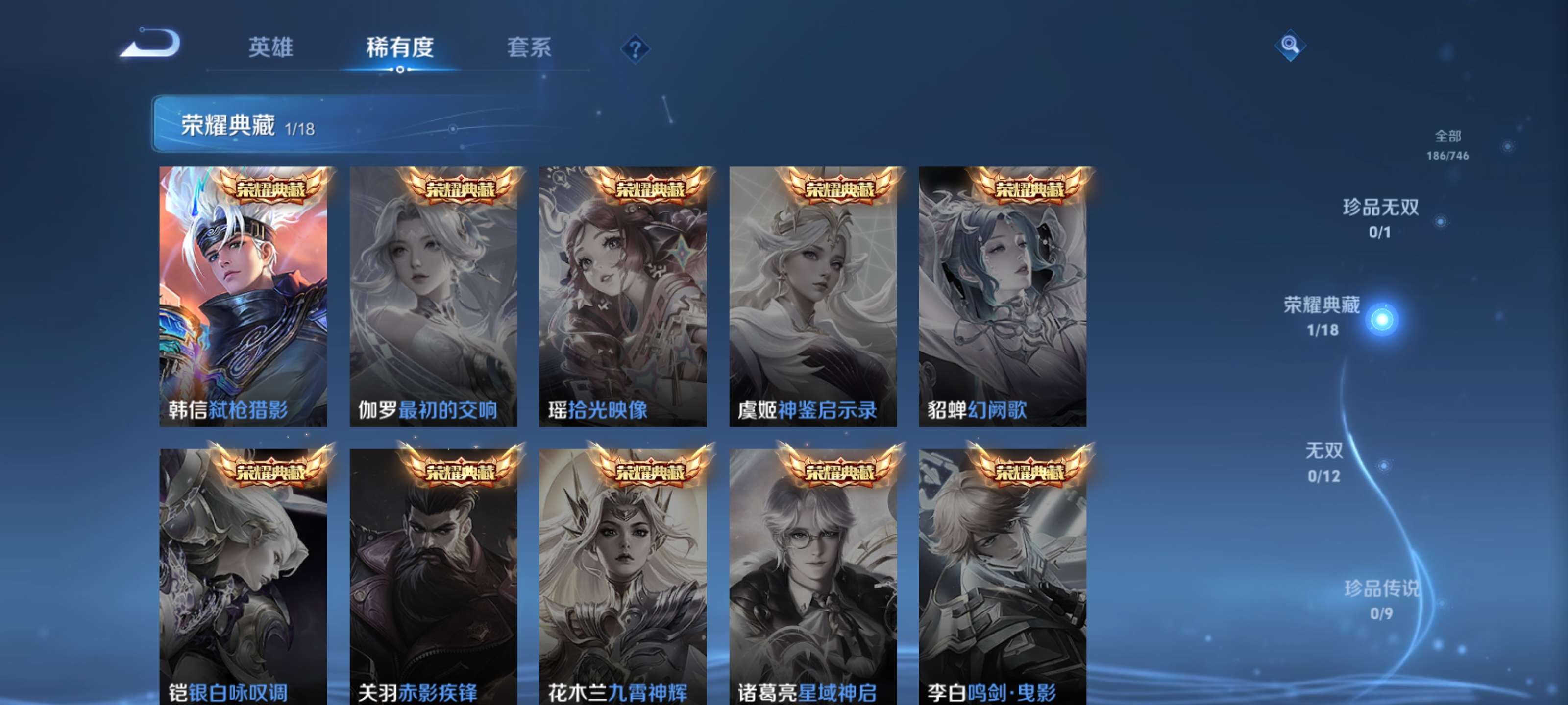 可二次【赠送和平3特效呛 弑呛猎影 8传说】安卓qq/绝世王者/186皮肤/127英雄/1典藏/8传说/42史诗【1 典藏皮肤】弑呛猎影 韩信【8 传说皮肤】逐花归海 澜无双飞将 马超云鹰飞将 曜地狱之眼 宫本武藏愿照·九州拓 澜幻光神呛 云缨祥瑞亨通 裴擒虎鸣野蒿 桑启【42 史诗皮肤】蔬乡物语 鲁班七号紫霞仙子 露娜山海·玄木吟 马可波罗五谷丰年 鬼谷子鬼剑武藏 宫本