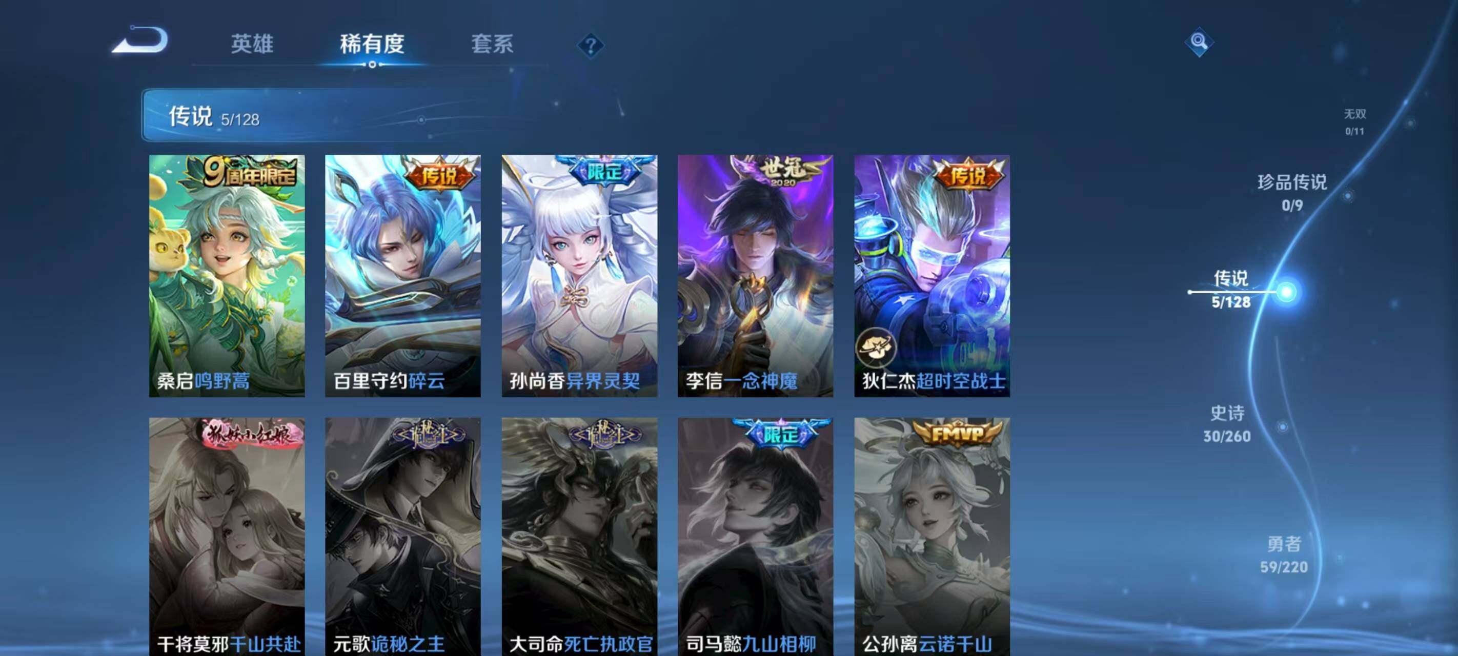 零零零1281611 【商品标题】:安卓q不可二次-v5-最强王者段位-116英雄-128皮肤-0典藏-0珍品无双-0无双-0珍品传说-5传说-30史诗 【传说皮肤】:桑启鸣野蒿,百里守约碎云,孙尚香异界灵契,李信一念神魔,狄仁杰超时空战士 【限定皮肤】:姜子牙天穹之誓,狄仁杰阴阳师,赵云皇家上将,孙尚香异界灵契,庄周高山流水,元歌无心,夏侯惇朔风刀,狄仁杰魔术师,狄仁杰万华元夜,达摩沙漠行僧