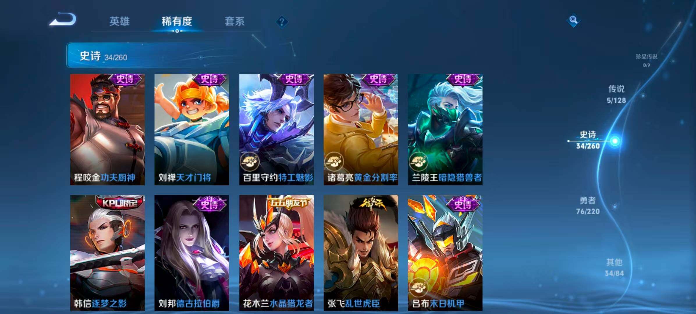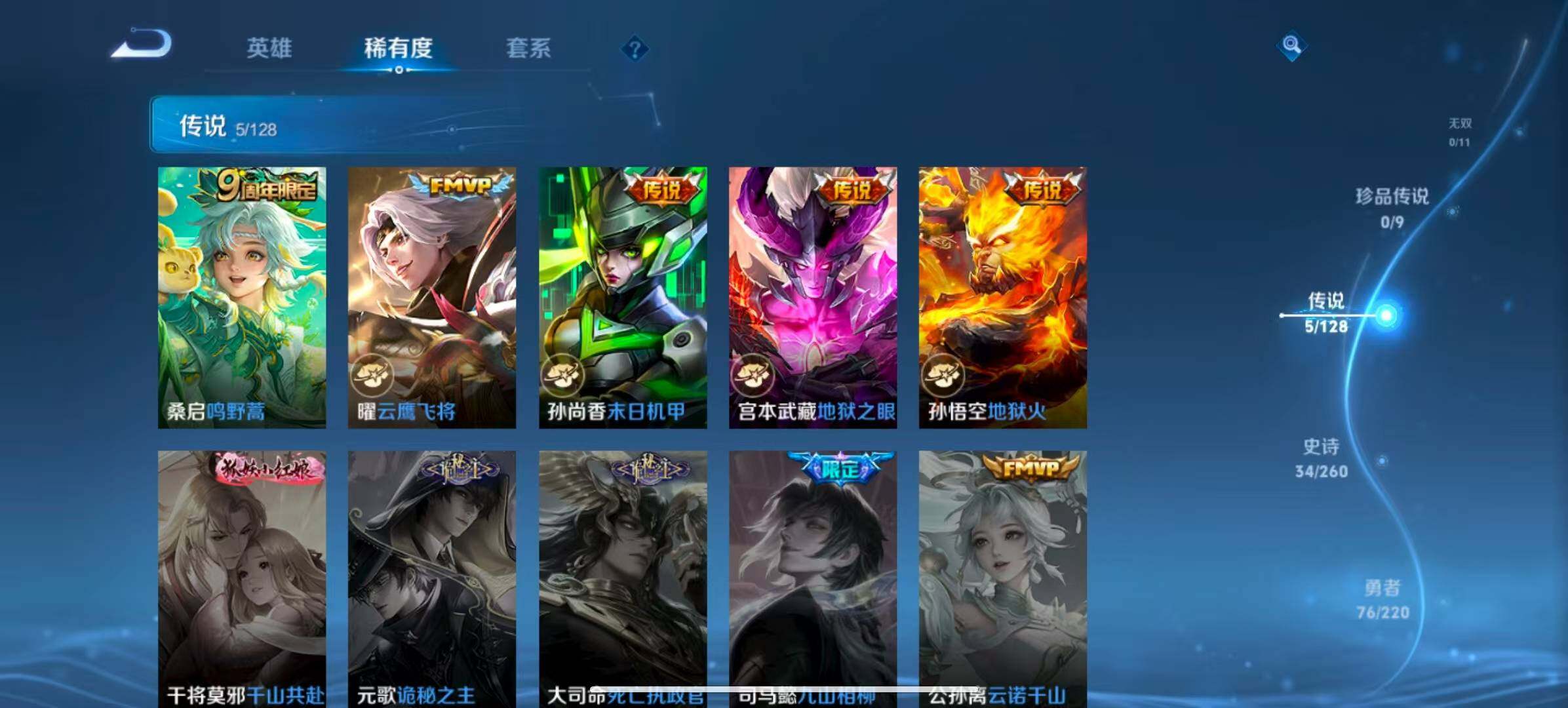 零零零1253994 【商品标题】:安卓q可二次-v2-尊贵铂金i段位-123英雄-149皮肤-0典藏-0珍品无双-0无双-0珍品传说-5传说-34史诗 【传说皮肤】:桑启鸣野蒿,曜云鹰飞将,孙尚香末日机甲,宫本武藏地狱之眼,孙悟空地狱火 【限定皮肤】:白起狰,姜子牙天穹之誓,狄仁杰阴阳师,赵云皇家上将,芈月重明,夏侯惇朔风刀,曹操烛龙,狄仁杰魔术师,狄仁杰万华元夜,项羽海滩派对,老夫子醍醐杖