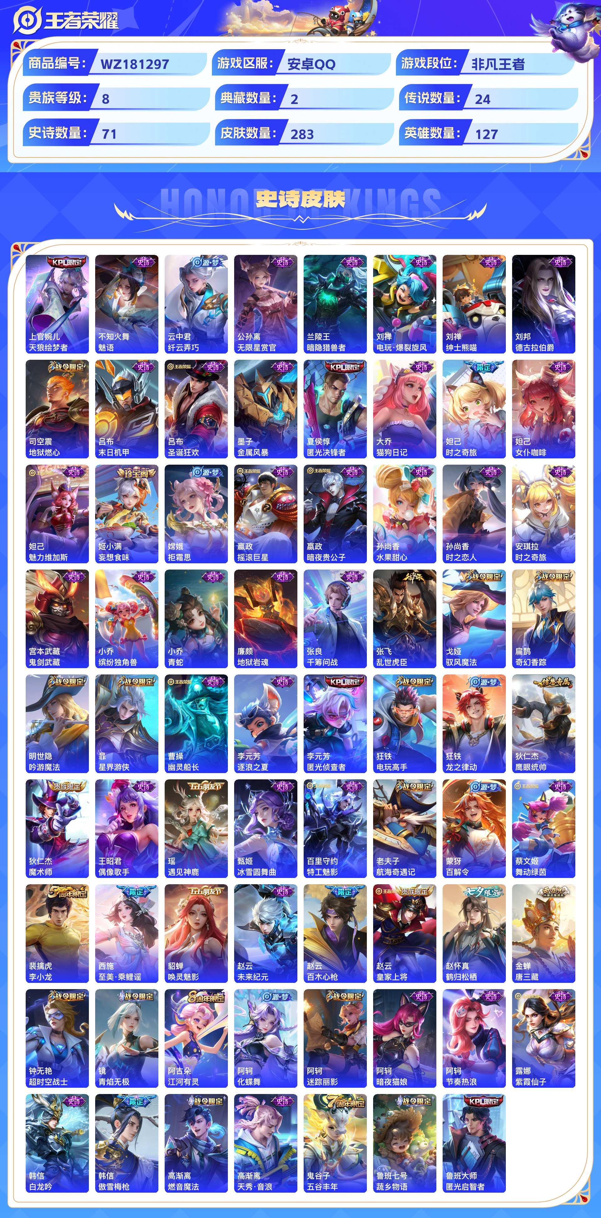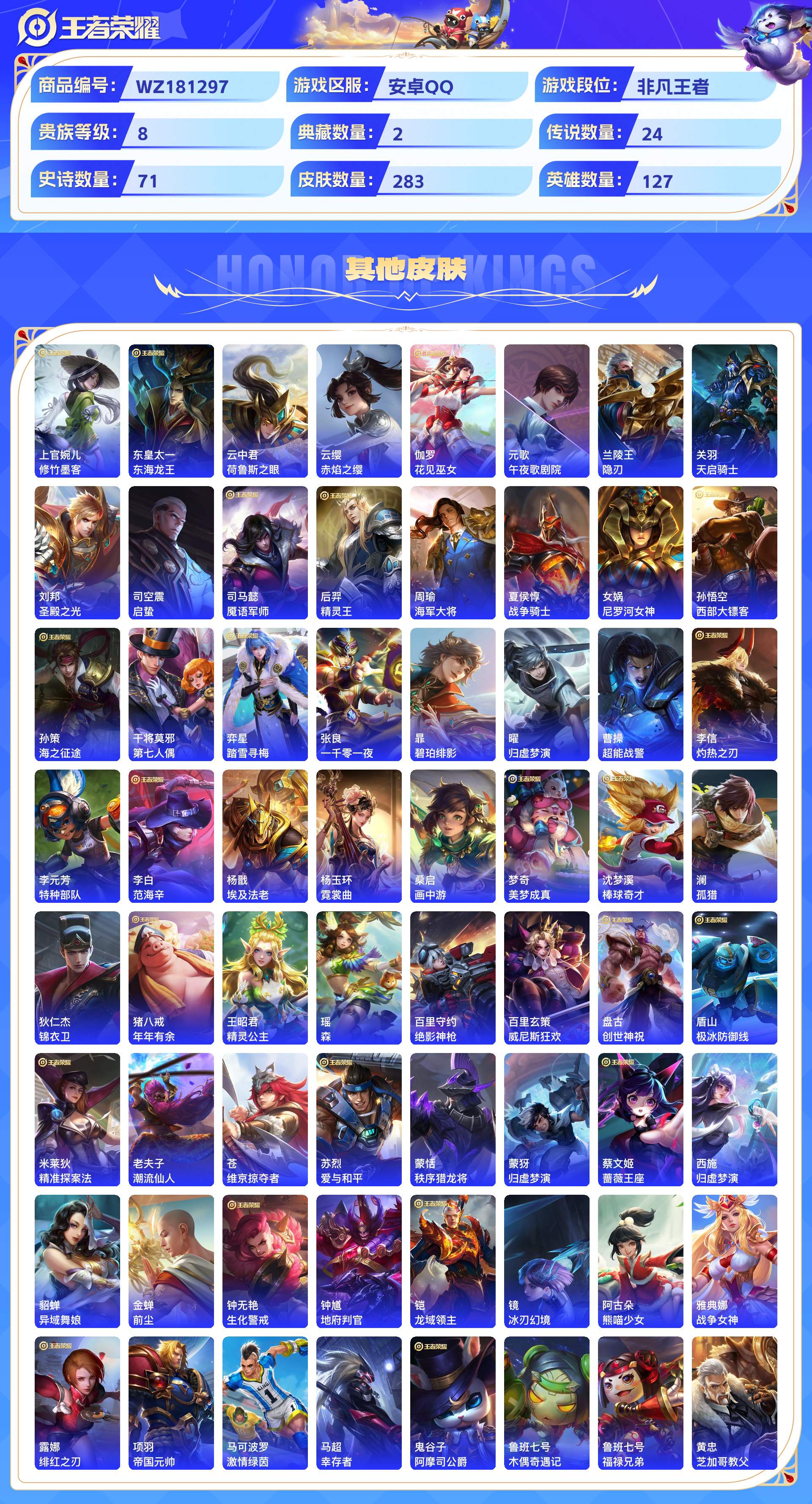 _2268599-安卓qq283皮贵族8级2典藏24传说71史诗【荣耀典藏】九霄神辉神鉴启示录【传说皮肤】鹤归松栖幻光神呛炽翼辉光时之恋人愿照·山河定无尽星芒挚爱花嫁前尘镜齐天大圣挚爱之约地狱之眼久胜战神山海·苍雷引李云鹰飞将鸣野蒿枫霜尽冠军飞将启明星使武陵仙君猫影幻舞仲夏夜之梦启示之音无双飞将【史诗皮肤】天狼绘梦者魅语纤云弄巧无限星赏官暗隐猎兽者电玩·爆裂旋风绅士熊喵德古拉伯爵地狱燃心末日机甲圣诞狂欢金属风暴匿光决锋者猫狗日记时之奇旅女仆咖啡魅力维加斯妄想食味拒霜思摇滚巨星暗夜贵公子水果甜心时之恋人时之奇旅鬼剑武藏缤纷独角兽青蛇地狱岩魂千筹问战乱世虎臣驭风魔法奇幻香踪吟游魔法星界游侠幽灵船长逐浪之夏匿光侦查者电玩高手龙之律动鹰眼统帅魔术师偶像歌手遇见神鹿冰雪圆舞曲特工魅影航海奇遇记百解令舞动绿茵李小龙至美·乘鲤谣唤灵魅影未来纪元百木心呛皇家上将鹤归松栖唐三藏超时空战士青焰无极江河有灵化蝶舞迷踪丽影暗夜猫娘节奏热浪紫霞仙子白龙吟傲雪梅呛燃音魔法天秀·音浪五谷丰年蔬乡物语匿光启智者【勇者皮肤】荣光之誓罗小黑战记噬灭天穹鸿运当头死亡骑士破局者金庭之子幻夜行动龙腾万里黄金武士铁骨偃魂汉昭烈帝浪漫序章纽约教父唤灵魔甲秘密基地剑破天穹阿尔法小队完美运算野性能量熔金海岸热血海滩次元突破进击墨子号神迹守卫守护之力暗都幽影劲辣红锅谧流熔炉朔望之晖少女阿狸灵卜魔法炽热元素使天穹之誓星梦巡礼时尚教父零食大作战暖冬·兔眠沉稳之力天使之翼归虚梦演未来纪元万象初新丁香结灵卦秘语功夫炙烤缤纷绘卷古海寻踪危途狂花玫蓝誓约化身博士救世之瞳景韶洛都决胜大满贯金色潮汐云中旅人妄想特派蔬乡物语敏锐之力潮玩骑兵海盐诗旅东方不败大漠名商鲨炮海盗猫龙舞盛年幻泉雾影王牌新星时空谍影特工战影命运角斗场阴阳师潮玩探月行幻想奇妙夜午后时光落雪兰心花好人间白色死神夜都怪侠乐园追猎者敬我三分群星魔术团暖冬絮语无双福将契约魔法功夫老勺女武神流音漫舞红桃皇后兔女郎苍林狼骑坚韧之力西部游侠蔚蓝守将胡桃狂想曲擒涛扼浪雪境奇遇玲珑珍味掌控之力忍·炎影太极少年大发明家拳王沙漠行僧春野之旅海滩丽影聚星闪耀致命风华爱心护理哥特玫瑰街头霸王教廷特使苍威无极海滩派对天穹祈灯幻乐之宴探海日志乓乓大师【其他皮肤】修竹墨客东海龙王荷鲁斯之眼赤焰之缨花见巫女午夜歌剧院隐刃天启骑士圣殿之光启蛰魇语军师精灵王海军大将战争骑士尼罗河女神西部大镖客海之征途第七人偶踏雪寻梅一千零一夜碧珀绯影归虚梦演超能战警灼热之刃特种部队范海辛埃及法老霓裳曲画中游美梦成真棒球奇才孤猎锦衣卫年年有余精灵公主森绝影神呛威尼斯狂欢创世神祝极冰防御线精准探案法潮流仙人维京掠夺者爱与和平秩序猎龙将归虚梦演蔷薇王座归虚梦演异域舞娘前尘生化警戒地府判官龙域领主冰刃幻境熊喵少女战争女神绯红之刃帝国元帅激情绿茵幸存者阿摩司公爵木偶奇遇记福禄兄弟芝加哥教父
