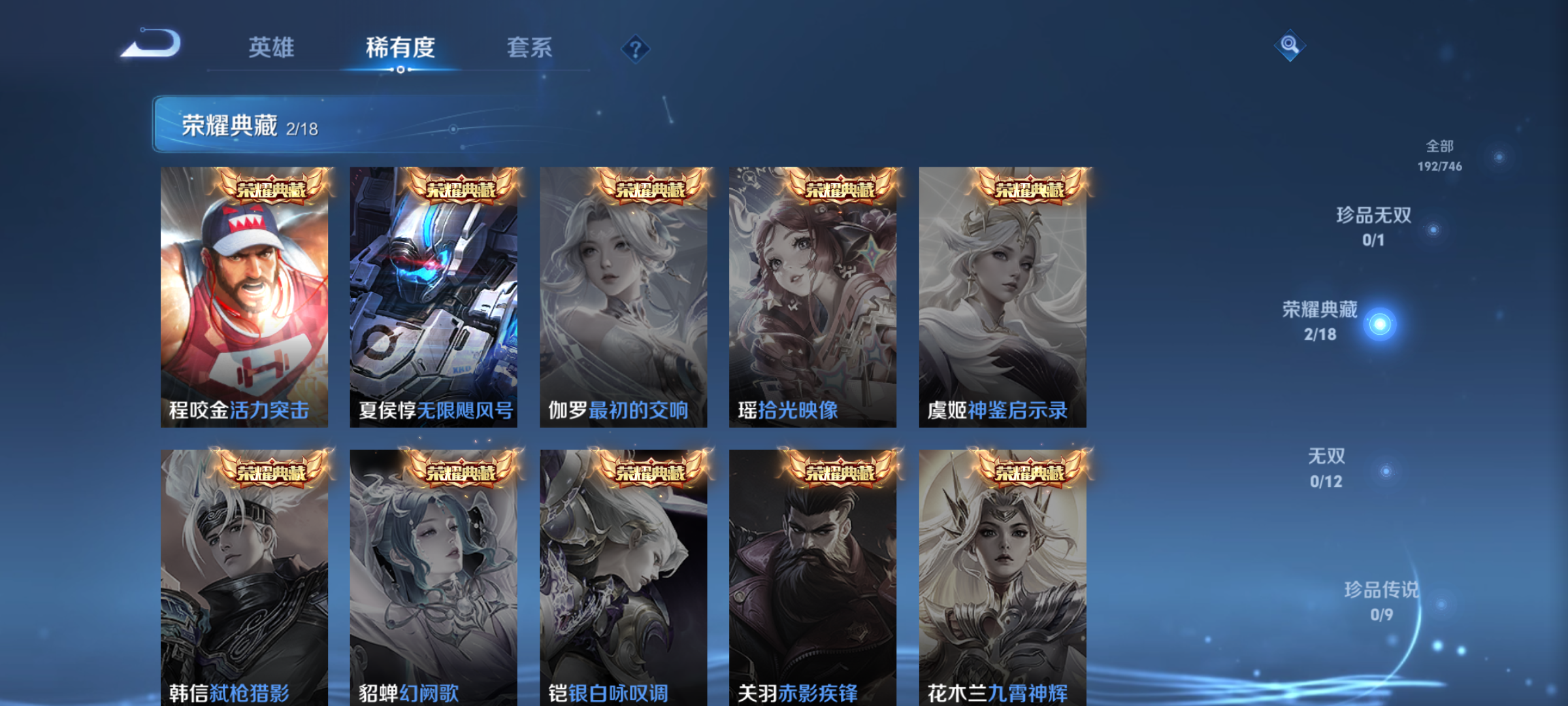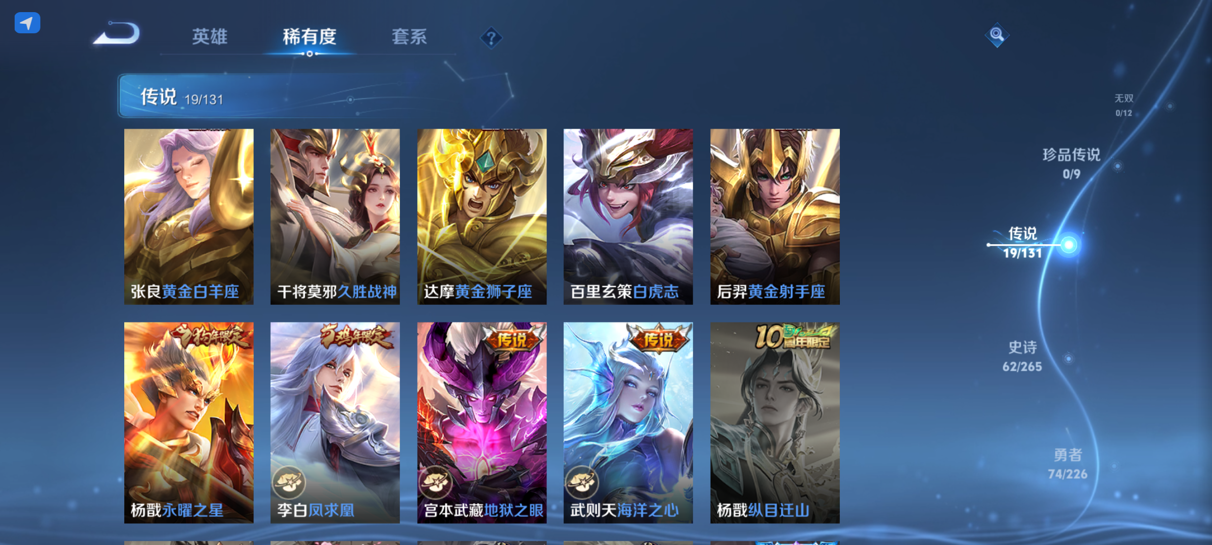 txwz22016-v8 192皮 2典藏 活力突击,无限飓风号 19传说 神树通天,幻光神呛,愿照·九州拓,启明星使,武圣,云鹰飞将,一念神魔,时之恋人,太华,猫影幻舞,黄金白羊座,久胜战神,黄金狮子座,白虎志,黄金射手座,永曜之星,地狱之眼,海洋之心,凤求凰 62史诗
