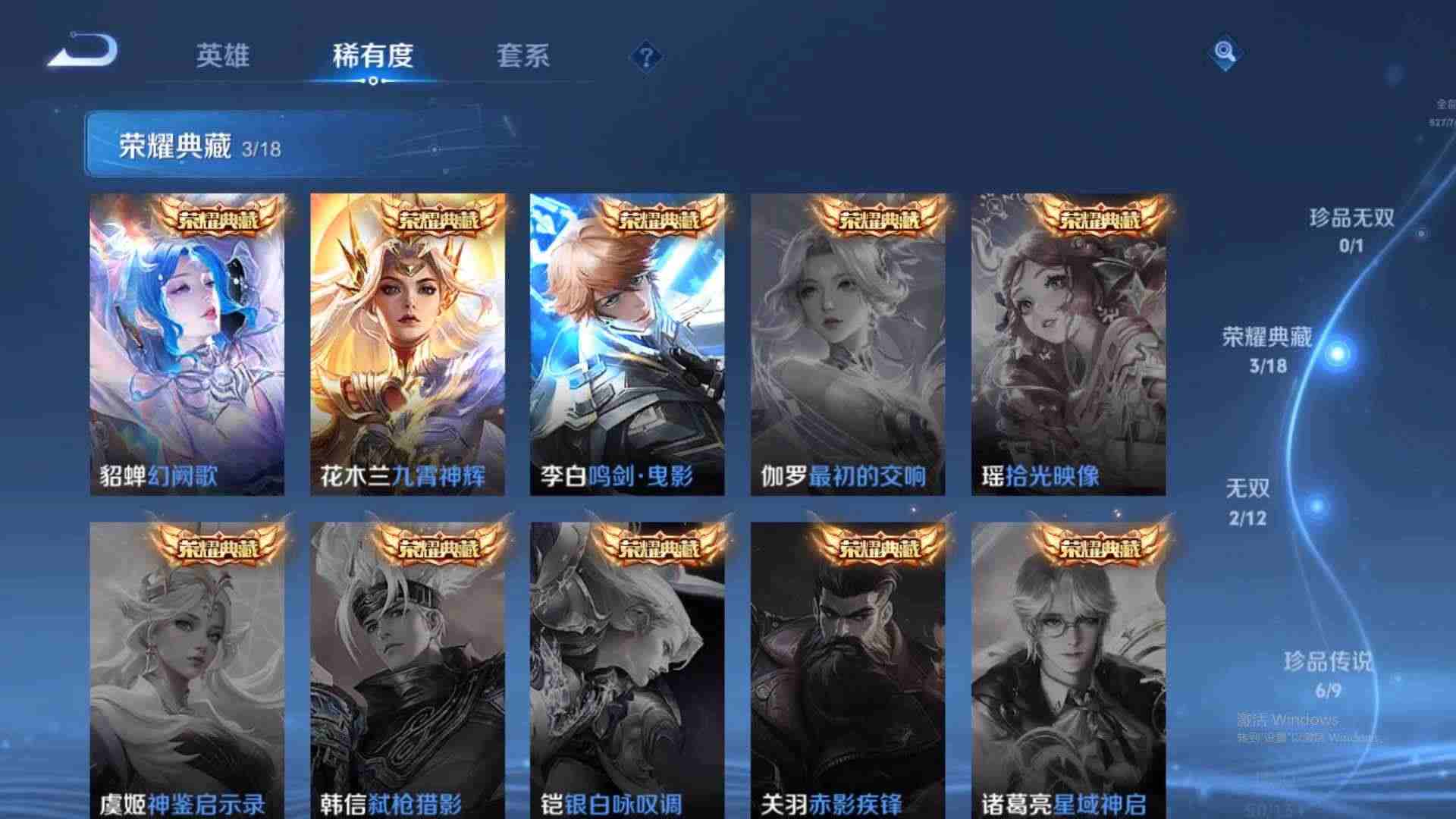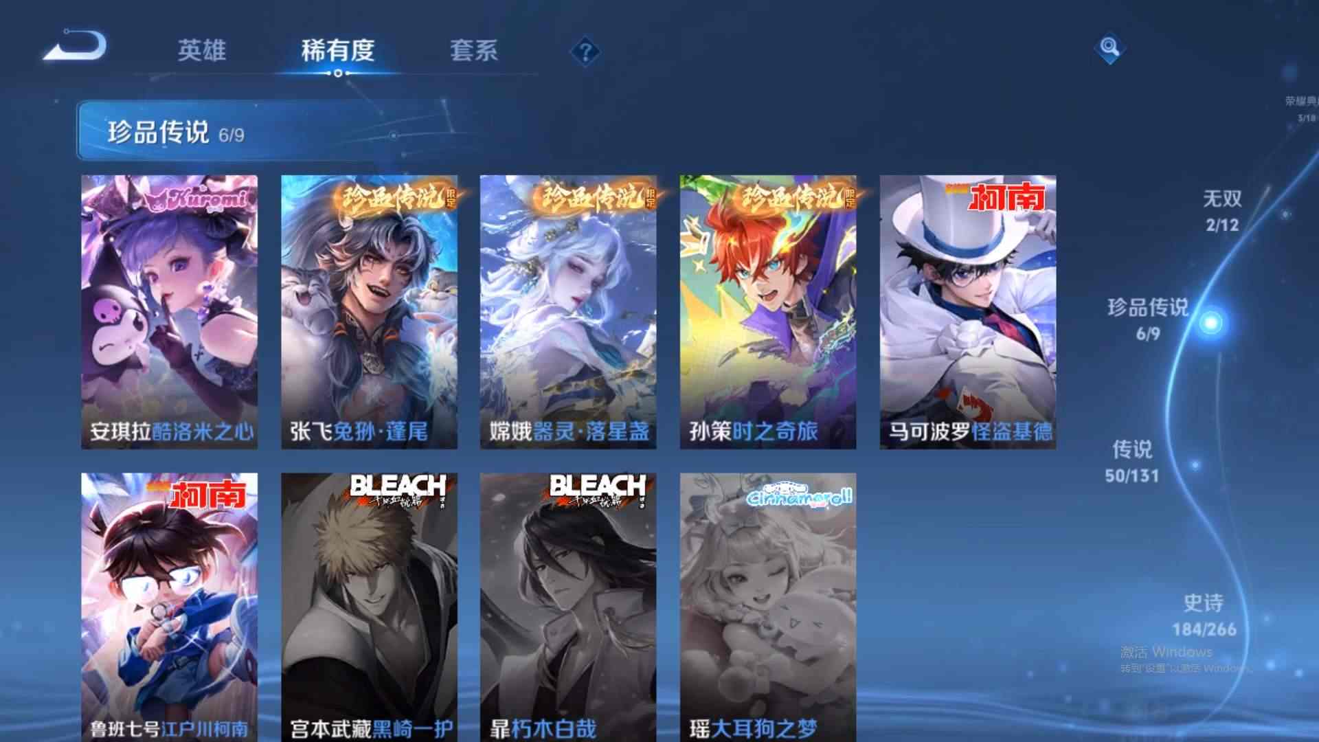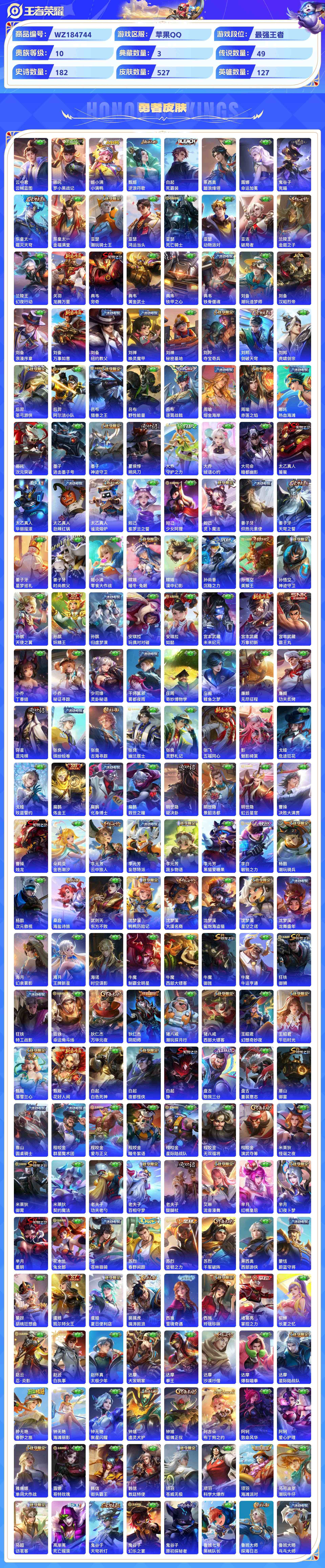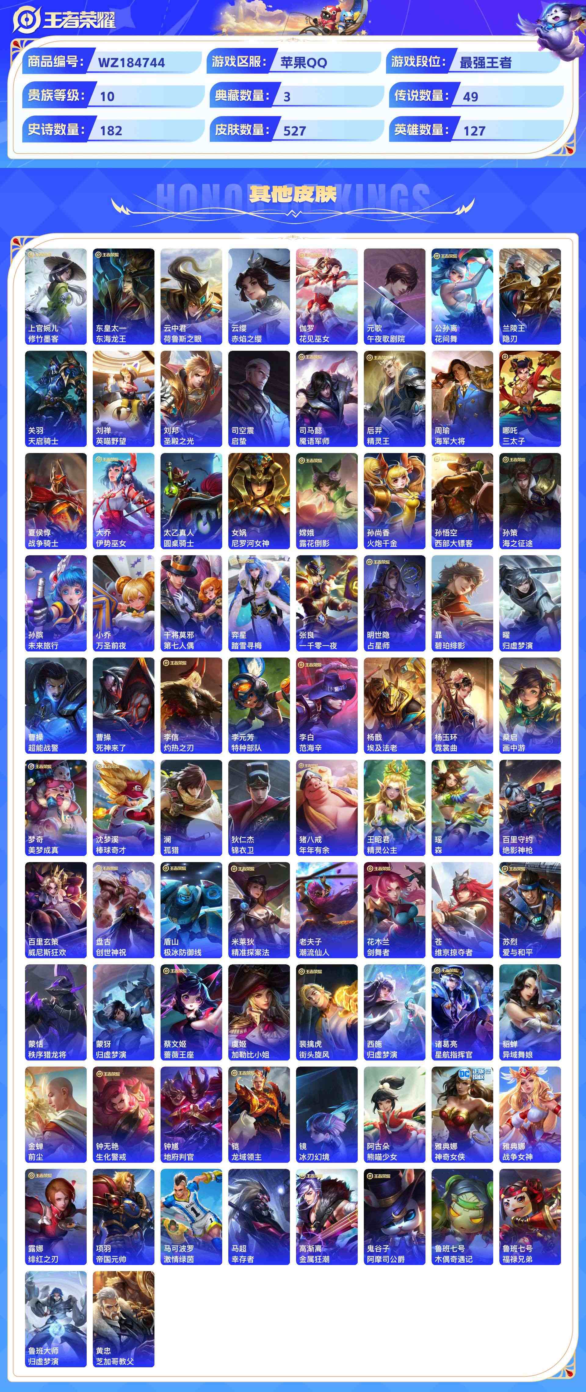 wz184744|极品金标号1金标(花木兰)【荣耀典藏】鸣剑·曳影九霄神辉幻阙歌【珍品传说】器灵·落星盏时之奇旅酷洛米之心兔狲·蓬尾怪盗基德江户川柯南【无双限定】器灵·螭龙剑雪境奇遇苹果qq 贵族10级 527皮 3典藏 6珍品传说 2无双 49传说 182史诗3星传说51个性按键4天幕