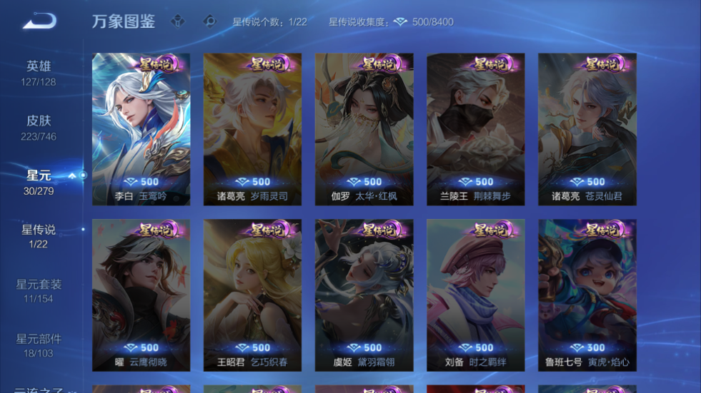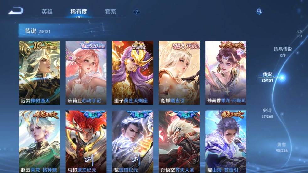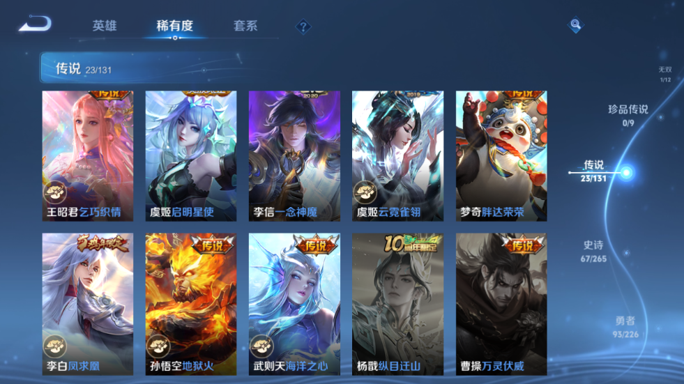 【王者荣耀】【lywz21207】珍品无双0 典藏1 无双1 珍品传说0 传说23 史诗67 英雄127 皮肤223 贵族8级 荣耀典藏:幻阙歌__无双皮肤:青丘·九尾__传说皮肤:前尘镜|启明星使|胖达荣荣|地狱火|海洋之心|孙策-末日机甲|云霓雀翎|一念神魔|乞巧织情|齐天大圣|凤求凰|黄金天蝎座|铠-琥珀纪元|马超-琥珀纪元|怒海麟威|貂蝉-曦玄引|乘龙·铭钟鼎|乘龙·问璇玑|山海·苍雷引|山海·炽霜斩|朵莉亚-心动手记|寅虎·赤拳|神树通天__稀有限定:白晶晶|至尊宝|大圣娶亲|蔷薇恋人|孙行者|傲雪梅呛|山海·玄木吟|狮舞东方|百解令|百里守约-真我赫兹|超元猎域|大漠名商|地狱燃心|古海寻踪|海滩派对|海盐诗旅|胡桃夹子|胡桃异想国|幻夜卜梦|皇家上将|火炮绅士|剑破天穹|江河有灵|金庭之子|魔术师|奇幻香踪|擒涛扼浪|青焰无极|燃音魔法|荣光圣徽|沙漠行僧|探海日志|天穹祈灯|无心|五谷丰年|纤云弄巧|星界游侠|夜都怪侠|疑决卦|阴阳师|吟游魔法|云间偶戏|暗隐猎兽者|缤纷独角兽|冰雪圆舞曲|乘风破浪|德古拉伯爵|电玩·爆裂旋风|电玩小子|伽罗-琥珀纪元|鬼剑武藏|黄金分割率|节奏热浪|金属风暴|李元芳-蔬乡物语|吕布-末日机甲|玫瑰异探|魅力维加斯|偶像歌手|赏金猎手|鲁班七号-蔬乡物语|水果甜心|水晶猎龙者|天才门将|晚萤|赵云-未来纪元|星夜王子|摇滚巨星|鹰眼统帅|幽灵船长|钟无艳-超时空战士|逐浪之夏|紫霞仙子|噬灭天穹|海诺-心动手记|修罗|心灵战警|千年之狐|孙尚香-时之恋人|舞动绿茵|化蝶舞|云中旅人|流音漫舞|暖冬·兔眠|灵卜魔法|苍威无极|落雪兰心|荣光之誓|万灵启世|巫礼祀神|鹤鸣心笺__优质皮肤:一千零一夜|创世神祝|年年有余|埃及法老|孤猎|午夜歌剧院|激情绿茵|海之征途|碧珀绯影|秩序猎龙将|锦衣卫|森|启蛰|伊势巫女|画中游|生化警戒|第七人偶|街头旋风|绝影神呛|幸存者|赤焰之缨|福禄兄弟|隐刃|特种部队|三太子|精灵王|龙域领主|占星师|花间舞|魇语军师|蔷薇王座|灼热之刃|圣殿之光|帝国元帅|阿摩司公爵|长夏之忆|异域游侠|暗都幽影|聚星闪耀|潮玩探月行|瓷语鉴心|秘密基地|次元突破|野性能量|虹云星官|守护之力|坚韧之力|幻乐之宴|功夫老勺|命运角斗场|幻想奇妙夜|海滩丽影|阿尔法小队|兔女郎|死亡骑士|黄金武士|少女阿狸|天使之翼|玩偶对对碰|爱心护理|街头霸王|教廷特使|鸿运当头|金色潮汐|漠中幻影|决胜大满贯|零食大作战|西部游侠|乐园追猎者|牛运亨通|幻泉雾影|潮玩造梦师|危途狂花|胡桃狂想曲|契约魔法|进击墨子号|拳王|时尚教父|白色死神|爱与正义|大发明家|西施-雪境奇遇|缤纷绘卷|掌控之力|纽约教父|龙腾万里|乱世虎臣|孙悟空-西部大镖客|鲁班大师-归虚梦演|龙舞盛年|汉昭烈帝|五福同心|万事如意|曜-归虚梦演|唤灵魔甲|沉稳之力|完美运算|花好人间|万象初新|潮玩骑兵|蔚蓝守将|劲辣红锅|特工战影|炽热元素使|妄想特派|玫蓝誓约__贵族等级:贵族8级__王者段位:非凡王者幻阙歌,青丘·九尾,凤求凰,寅虎·赤拳,琥珀纪元,怒海麟威,末日机甲,至尊宝等热门限定皮肤