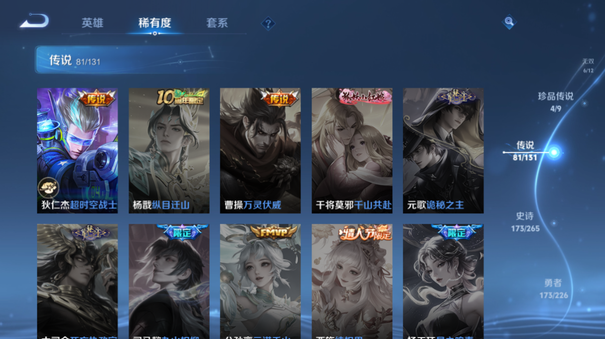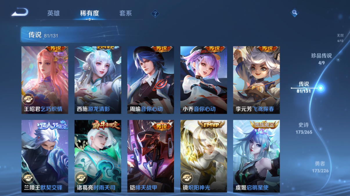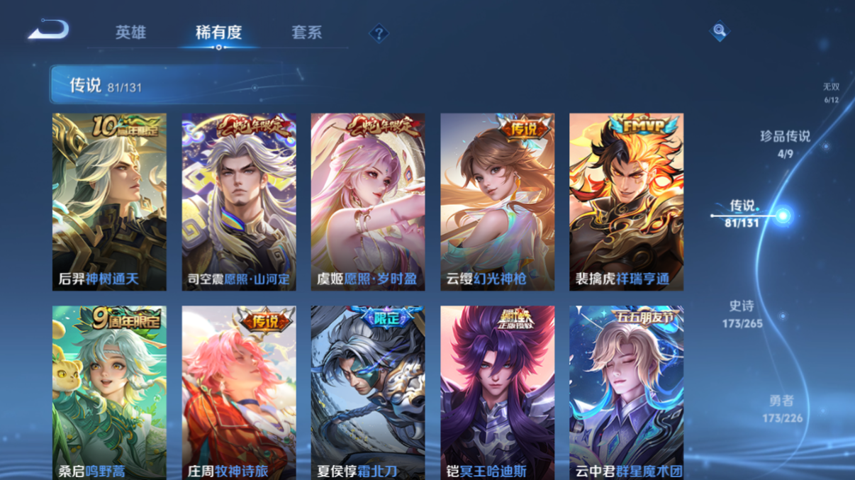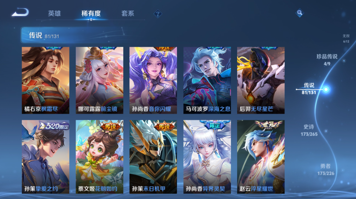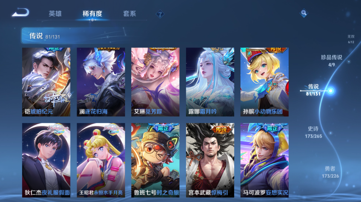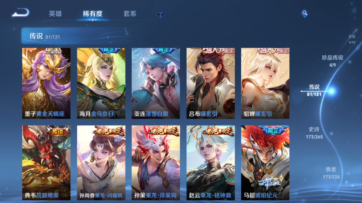 【王者荣耀】【lywz21258】珍品无双0 典藏9 无双6 珍品传说4 传说81 史诗173 英雄128 皮肤526 贵族10级 荣耀典藏:无限飓风号|全息碎影|天鹅之梦|大秦宣太后|杀手不太冷|武则天|九霄神辉|鸣剑·曳影|星空梦想|最初的交响__无双皮肤:群星魔术团|时之魔女|碎月剑心|离恨烟|花合斗|青丘·九尾__珍品传说:江户川柯南|怪盗基德|孙策-时之奇旅|器灵·落星盏__传说皮肤:鸣野蒿|枫霜尽|前尘镜|音你闪耀|深海之息|无尽星芒|挚爱之约|花朝如约|异界灵契|绛天战甲|炽阳神光|启明星使|胖达荣荣|地狱之眼|地狱火|海洋之心|孙策-末日机甲|仲夏夜之梦|云霓雀翎|久胜战神|黄金狮子座|狄仁杰-超时空战士|黄金射手座|黄金白羊座|猫影幻舞|刘备-时之恋人|一念神魔|云鹰飞将|冠军飞将|飞鸢探春|游龙清影|乞巧织情|淬星耀世|炽翼辉光|电玩·雷克斯|画中仙|记忆之芯|孙尚香-末日机甲|齐天大圣|黄金天蝎座|金乌负日|惊梅引|铠-琥珀纪元|兰陵王-默契交锋|零号·赤焰|鲁班七号-时之奇旅|落雪白狼|吕布-曦玄引|马超-琥珀纪元|怒海麟威|诗剑行|时雨天司|霜月吟|碎云|太华|天魔缭乱|妄想实况|武陵仙君|貂蝉-曦玄引|小动物乐团|小乔-音你心动|星穹之声|夜礼服假面|永恒水手月亮|战鼓燎原|周瑜-音你心动|逐花归海|乘龙·淬吴钩|乘龙·铭钟鼎|乘龙·问璇玑|觅芳踪|云中君-群星魔术团|灼幽烈阳|冥王哈迪斯|牧神诗旅|幻光神呛|祥瑞亨通|愿照·岁时盈|愿照·山河定|神树通天__稀有限定:至尊宝|青龙志|大圣娶亲|一生所爱|幽恒|蔷薇恋人|虎魄|神威|烈魂|龙胆|乒乒小将|孙行者|李小龙|狮舞东方|拒霜思|暗影游猎|百解令|百里守约-真我赫兹|百木心呛|冰霜恋舞曲|嫦娥-如梦令|超元猎域|大漠名商|地狱燃心|电玩高手|高山流水|古海寻踪|海滩派对|海盐诗旅|航海奇遇记|后羿-如梦令|胡桃夹子|胡桃异想国|幻夜卜梦|皇家上将|辉光之辰|火炮绅士|剑破天穹|金庭之子|镜-真我赫兹|决胜骁骑|狂想玩偶喵|美猴王|梦圆繁星|魔术师|奇幻香踪|千军破阵|擒涛扼浪|青焰无极|驱傩正仪|燃音魔法|荣光圣徽|沙漠行僧|探海日志|天狼溯光者|天穹祈灯|阿古朵-顽趣|万华元夜|妄想食味|五谷丰年|午后时光|纤云弄巧|项羽-霸王别姬|星界游侠|驯魔猎人|演武夺筹|夜都怪侠|夜都魔契|阴阳师|吟游魔法|银河之约|驭风魔法|原初追逐者|云间偶戏|真爱魔法|逐梦之光|暗夜贵公子|暗夜猫娘|暗隐猎兽者|暗渊魔法|白龙吟|白蛇|缤纷独角兽|冰冠公主|冰雪圆舞曲|苍穹之光|乘风破浪|乘龙·聚宝船|乘龙·忆丹青|大乔-猫狗日记|德古拉伯爵|地狱岩魂|电玩·爆裂旋风|电玩·兔顽号|电玩小子|浮梦罗烟|伽罗-琥珀纪元|功夫厨神|鬼剑武藏|唤灵魅影|黄金分割率|箭羽风息|节奏热浪|金属风暴|莱西奥-末日机甲|乐园奇幻夜|李元芳-蔬乡物语|龙鼓争鸣|龙骑士|吕布-末日机甲|玫瑰异探|魅力维加斯|魅语|梦奇-顽趣|女仆咖啡|偶像歌手|奇遇舞章|奇遇星旅|千筹问战|青蛇|热力回旋|赏金猎手|上官婉儿-群星魔术团|绅士熊喵|圣诞狂欢|圣诞恋歌|诗语江南|鲁班七号-蔬乡物语|水果甜心|水晶猎龙者|孙策-猫狗日记|滕王阁序|天才门将|天秀·幻梦|天秀·启明|天秀·音浪|完美假期|晚萤|赵云-未来纪元|闲日渔趣|星夜王子|雪上飞焰|雪夜绮愿|摇滚巨星|夜落电台|银翎春语|鹰眼统帅|永昼|幽灵船长|遇见神鹿|月团寄思|职棒王牌|逐浪之夏|紫霞仙子|百里守约-百相守梦|老夫子-百相守梦|陌上桑|谪仙醉月|星界特工|噬灭天穹|敬我三分|炽弈燎原|撼地雄心|破空之剑|战舞者|东方月初|涂山红红|霜北刀|埋骨钱|顽岩魄|蔡文姬-夏日便利店|虞姬-夏日便利店|天穹之誓|怒海争锋|海诺-心动手记|安琪拉-时之奇旅|修罗|曙光守护者|心灵战警|千年之狐|孙尚香-时之恋人|无限星赏官|舞动绿茵|特工魅影|心灵骇客|茶境仙|星界战将|谧流熔炉|苍鳞隐世|器灵·浮梦炉|化蝶舞|云中旅人|玲珑珍味|朔望之晖|孙悟空-神迹守卫|达摩-星际陆战队|访茗客|暖冬·兔眠|灵卜魔法|夺宝奇兵|苍威无极|圣弓游侠|墨子-神迹守卫|死神来了|灵蛊蚀心|龙之律动|布丁狗之约|虚灵犬护|小牛鸭|石田雨龙|逆浪荇歌|黄忠-百相守梦|涂山容容|百里玄策-罗小黑战记|荣光之誓|万灵启世|巫礼祀神|鹤鸣心笺__优质皮肤:尼罗河女神|一千零一夜|创世神祝|年年有余|埃及法老|孤猎|木偶奇遇记|熊喵少女|午夜歌剧院|露花倒影|未来旅行|激情绿茵|海之征途|天启骑士|碧珀绯影|秩序猎龙将|锦衣卫|冰刃幻境|森|超能战警|英喵野望|维京掠夺者|海军大将|绯红之刃|踏雪寻梅|启蛰|战争骑士|伊势巫女|画中游|生化警戒|威尼斯狂欢|第七人偶|潮流仙人|芝加哥教父|街头旋风|绝影神呛|地府判官|荷鲁斯之眼|幸存者|赤焰之缨|福禄兄弟|隐刃|前尘|特种部队|三太子|精灵王|剑舞者|范海辛|星航指挥官|龙域领主|爱与和平|占星师|花间舞|魇语军师|极冰防御线|花见巫女|棒球奇才|东海龙王|蔷薇王座|灼热之刃|精准探案法|圣殿之光|帝国元帅|战争女神|霓裳曲|加勒比小姐|阿摩司公爵|异域舞娘|精灵公主|修竹墨客|万圣前夜|怪诞之夜|动物派对|绒语心约|异域游侠|暗都幽影|功夫炙烤|暖冬絮语|潮玩探月行|虎啸剑宗|瓷语鉴心|秘密基地|次元突破|鲨炮海盗猫|野性能量|丁香结|奇妙博物学|虹云星官|守护之力|坚韧之力|幻乐之宴|功夫老勺|命运角斗场|幻想奇妙夜|海滩丽影|阿尔法小队|兔女郎|死亡骑士|黄金武士|少女阿狸|