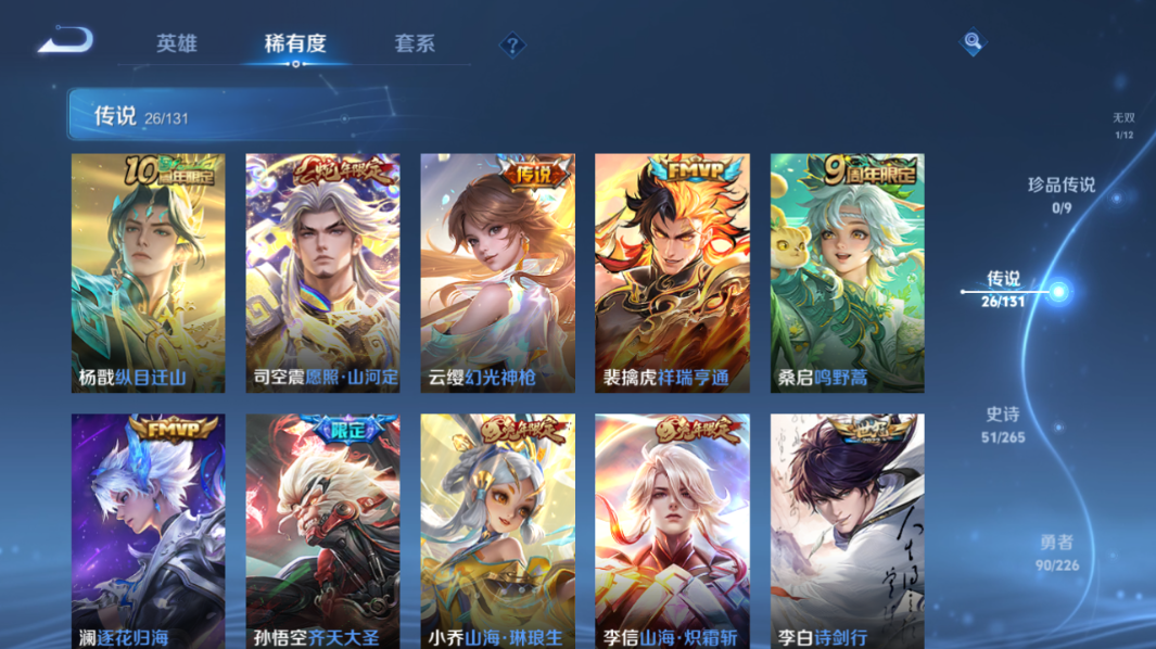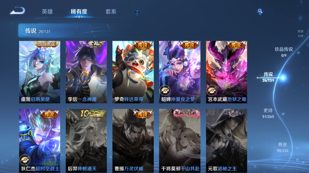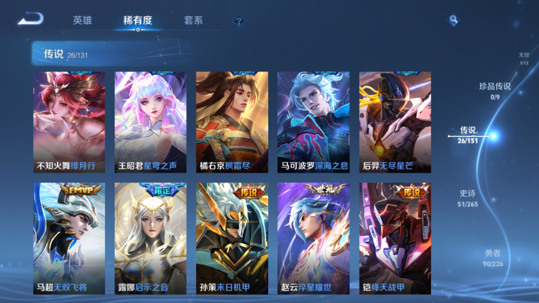【王者荣耀】【lywz21251】珍品无双0 典藏3 无双1 珍品传说0 传说26 史诗51 英雄126 皮肤205 贵族8级 荣耀典藏:全息碎影|拾光映像|最初的交响__无双皮肤:器灵·螭龙剑__传说皮肤:鸣野蒿|枫霜尽|深海之息|无尽星芒|无双飞将|启示之音|绛天战甲|启明星使|胖达荣荣|地狱之眼|孙策-末日机甲|仲夏夜之梦|狄仁杰-超时空战士|一念神魔|淬星耀世|绯月行|齐天大圣|诗剑行|星穹之声|逐花归海|山海·炽霜斩|山海·琳琅生|幻光神呛|祥瑞亨通|愿照·山河定|纵目迁山__稀有限定:瑞麟志|玄武志|朱雀志|李小龙|神器·万象笔|大漠名商|电玩高手|古海寻踪|海滩派对|海盐诗旅|皇家上将|剑破天穹|狂想玩偶喵|魔术师|擒涛扼浪|探海日志|醍醐杖|天穹祈灯|玩趣恶龙|无心|午后时光|纤云弄巧|疑决卦|阴阳师|暗隐猎兽者|白龙吟|冰雪圆舞曲|苍穹之光|乘风破浪|德古拉伯爵|鬼剑武藏|唤灵魅影|黄金分割率|箭羽风息|金属风暴|乐园奇幻夜|吕布-末日机甲|魅力维加斯|魅语|女仆咖啡|赏金猎手|圣诞狂欢|水果甜心|水晶猎龙者|孙策-猫狗日记|天秀·启明|天秀·音浪|星夜王子|鹰眼统帅|月团寄思|至美·乘鲤谣|逐浪之夏|紫霞仙子|百里守约-百相守梦|老夫子-百相守梦|噬灭天穹|天穹之誓|舞动绿茵|特工魅影|心灵骇客|茶境仙|万物之道|器灵·浮梦炉|化蝶舞|原初探秘者|云中旅人|单词大作战|访茗客|死神来了|龙之律动|布丁狗之约|虚灵犬护|逆浪荇歌|光弋星穹|往忆晖光|荣光之誓__优质皮肤:埃及法老|孤猎|午夜歌剧院|未来旅行|激情绿茵|锦衣卫|森|超能战警|维京掠夺者|海军大将|绯红之刃|踏雪寻梅|生化警戒|第七人偶|潮流仙人|芝加哥教父|绝影神呛|地府判官|荷鲁斯之眼|赤焰之缨|隐刃|特种部队|精灵王|魇语军师|极冰防御线|蔷薇王座|灼热之刃|帝国元帅|加勒比小姐|阿摩司公爵|修竹墨客|异域游侠|暗都幽影|潮玩探月行|秘密基地|次元突破|鲨炮海盗猫|虹云星官|守护之力|幻乐之宴|功夫老勺|命运角斗场|幻想奇妙夜|海滩丽影|阿尔法小队|死亡骑士|少女阿狸|天使之翼|玩偶对对碰|宫本武藏-未来纪元|爱心护理|街头霸王|教廷特使|破局者|乐园追猎者|牛运亨通|幻泉雾影|潮玩造梦师|无尽征程|白执事|哥特玫瑰|西施-雪境奇遇|星梦巡礼|景韶洛都|掌控之力|雾都夜雨|逐霄战戟|铁骨偃魂|纽约教父|龙腾万里|霸王丸|乱世虎臣|西施-归虚梦演|龙舞盛年|乓乓大师|五福同心|万事如意|曜-归虚梦演|唤灵魔甲|完美运算|化身博士|花好人间|熔金海岸|春野之旅|万象初新|苍林狼骑|蔚蓝守将|劲辣红锅|特工战影|妄想特派|灵野札记|玫蓝誓约|命运加冕|小满鸭|死霸装|锦麟游梦|踏浪烽翎|克喵|逐霄之志__贵族等级:贵族8级__王者段位:至圣王者