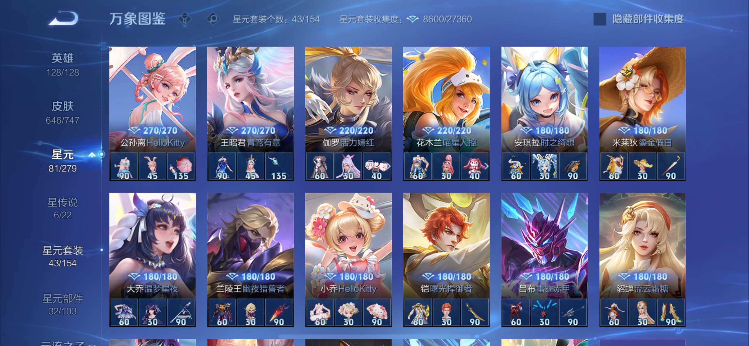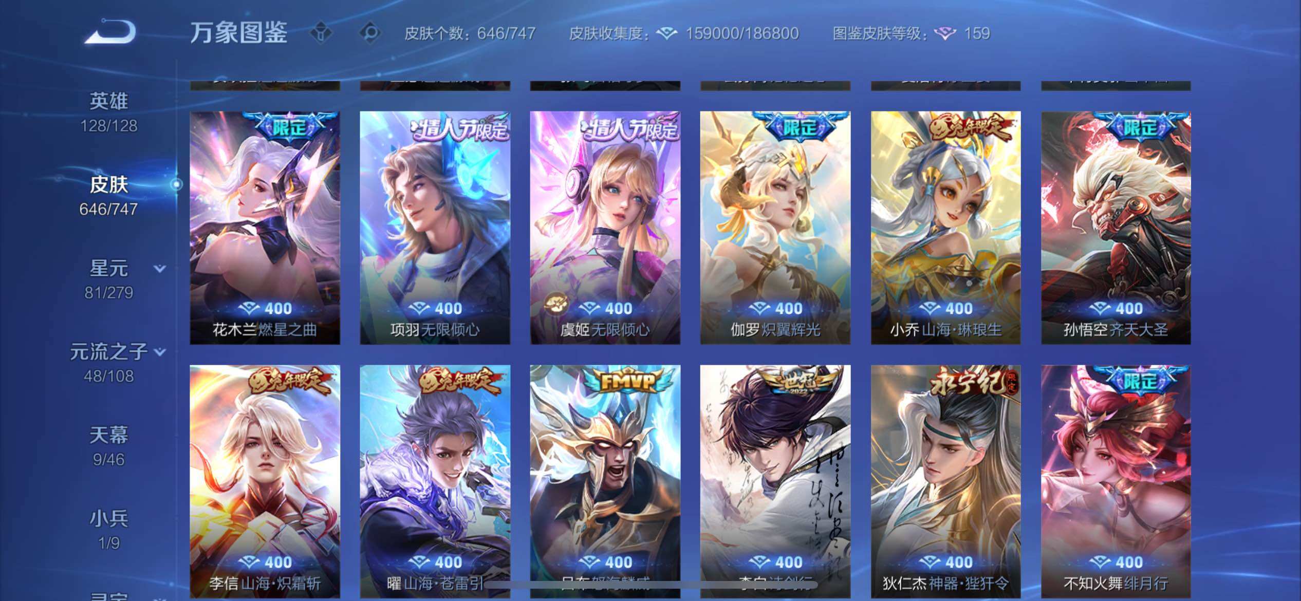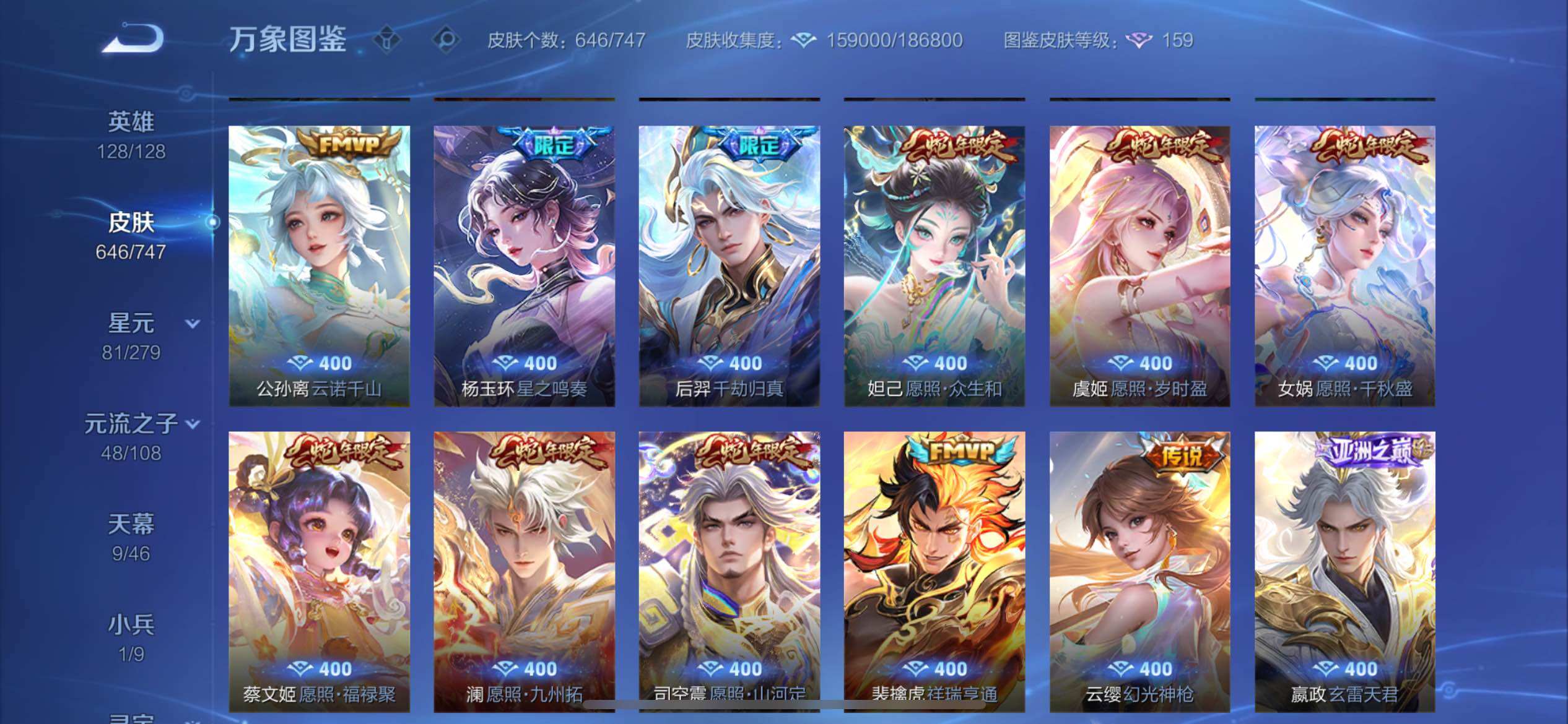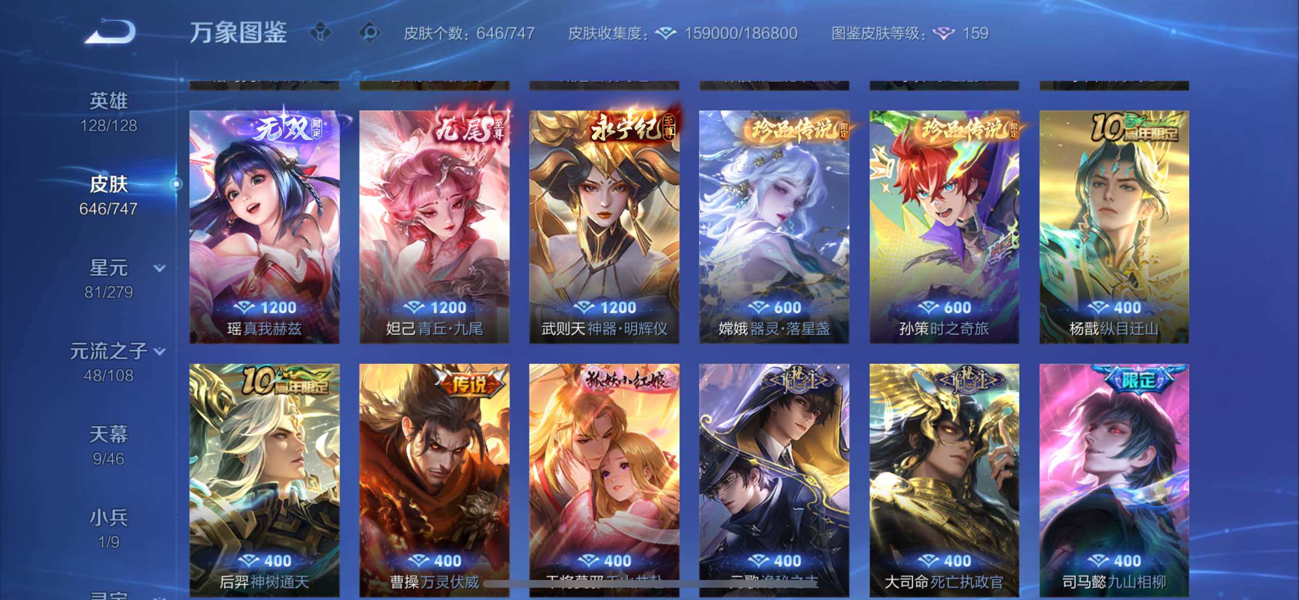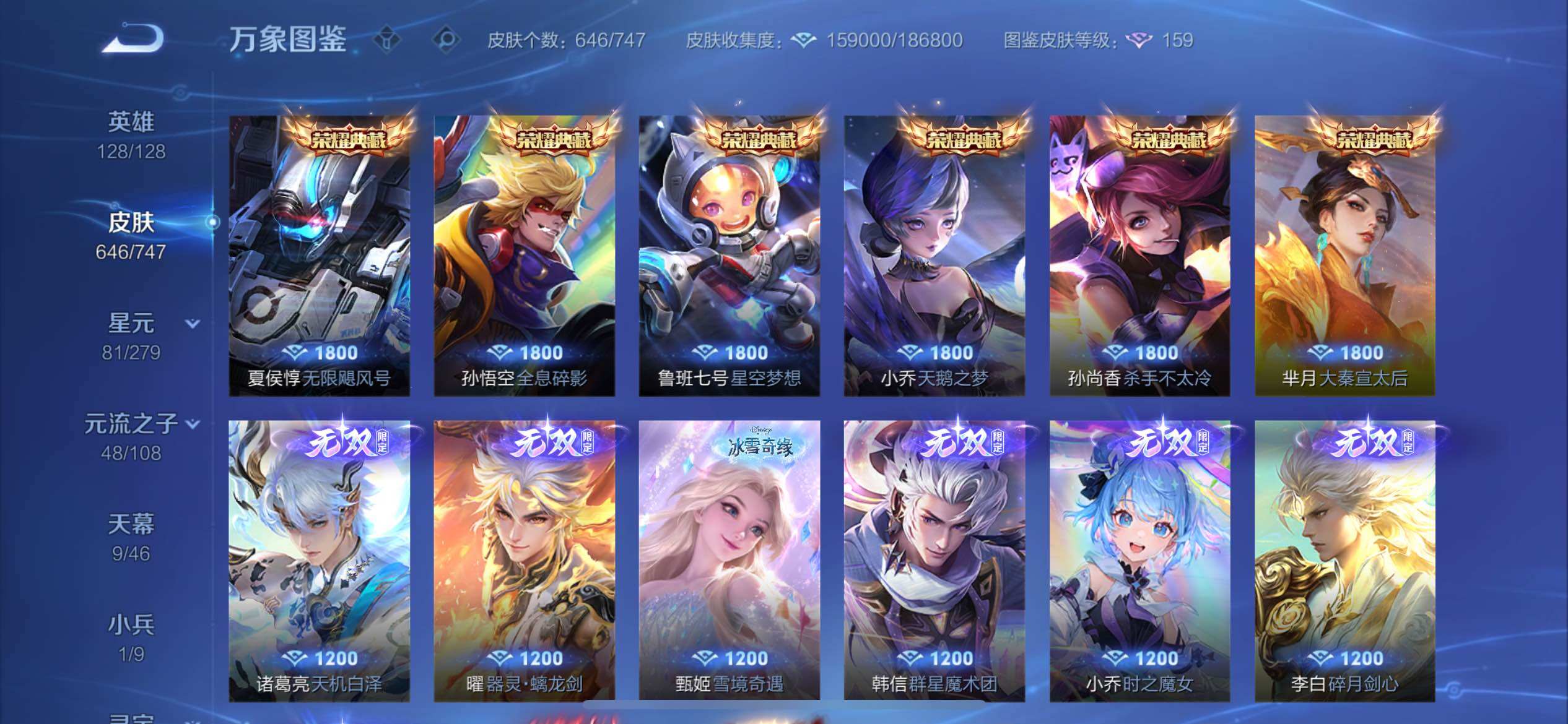 【店铺主推·无双v10·11w流光积分有传承位·满典藏 背包1水晶·9无双·2珍品·89个性戳戳·小兵雪境奇遇·8个天幕·紫瑶·全皮蔡文姬·全皮小乔·全皮杨玉环·全皮露娜·全皮嫦娥·全皮木兰·带妹专属·可二次】w6566-苹果q-128英雄-646皮肤-16王者印记-300铭文-贵族积分60w【无双贵族10】【19典藏·9无双·2珍品·6星传说·111传说·1小兵·9天幕·2签名·37按键