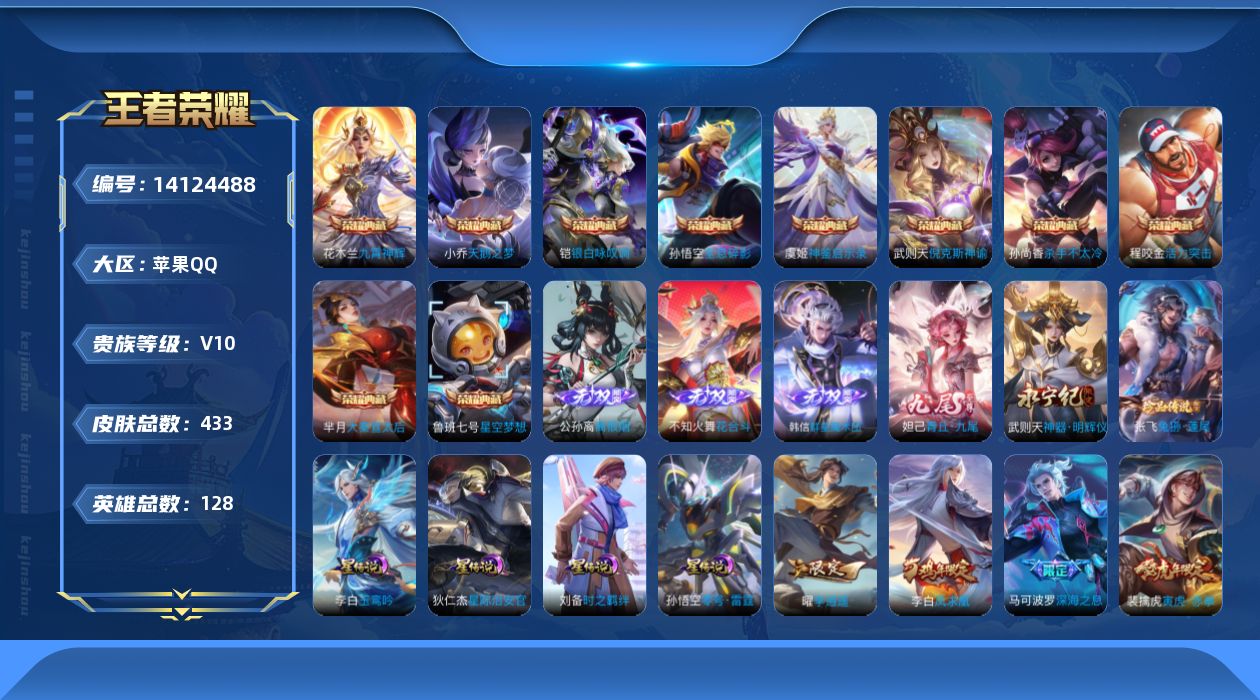 [14124488]【终身售后 找回包赔】苹果手q125区433皮1珍品传说11典藏72传说5无双 营地id1831160164包人脸v10非凡王者 星元皮肤:鲁班七号-萌喵对账王昭君-青鸾有意孙尚香-时之羁绊[虎年全套兔年全套女号]【珍品传说皮肤】:兔狲·蓬尾【无双皮肤】:离恨烟花合斗群星魔术团青丘·九尾神器·明辉仪【荣耀典藏】:星空梦想九霄神辉全息碎影大秦宣太后天鹅之梦杀手不太冷倪克斯神谕活力突击神鉴启示录银白咏叹调武则天【星传说】:时之羁绊星际治安官玉鸾吟零号·雷霆,【优质限定皮肤】:至尊宝山海·苍雷引山海·琳琅生山海·炽霜斩天魔缭乱瑶时之祈愿云中君时之祈愿武圣凤求凰无双飞将【传说皮肤】:鸣野蒿霜北刀冥王哈迪斯游龙清影心动手记群星魔术团黄金天蝎座地狱之眼百相守梦炽阳神光胖达荣荣记忆之芯浮生妄画中仙燃星之曲无限倾心无限倾心炽翼辉光齐天大圣山海·苍雷引山海·琳琅生山海·炽霜斩猫影幻舞黄金射手座怒海麟威诗剑行神器·狴犴令超时空战士绯月行星穹之声音你心动碎云枫霜尽天魔缭乱前尘镜音你闪耀深海之息挚爱花嫁挚爱之约武陵仙君启示之音零号·赤焰补天淬星耀世末日机甲瑶时之祈愿寅虎·赤拳寅虎·瑞焰启明星使武圣音你心动乞巧织情海洋之心绛天战甲异界灵契李 无尽星芒时之奇旅时之奇旅遇见神鼓太华时雨天司影龙天霄凤求凰星元:30星传说:4天幕:1按键:43签名:1贵族:10点卷:9皮肤碎片:24荣耀积分:15英雄碎片:954星传说:李白·玉鸾吟刘备·时之羁绊狄仁杰·星际治安官孙悟空·零号·雷霆