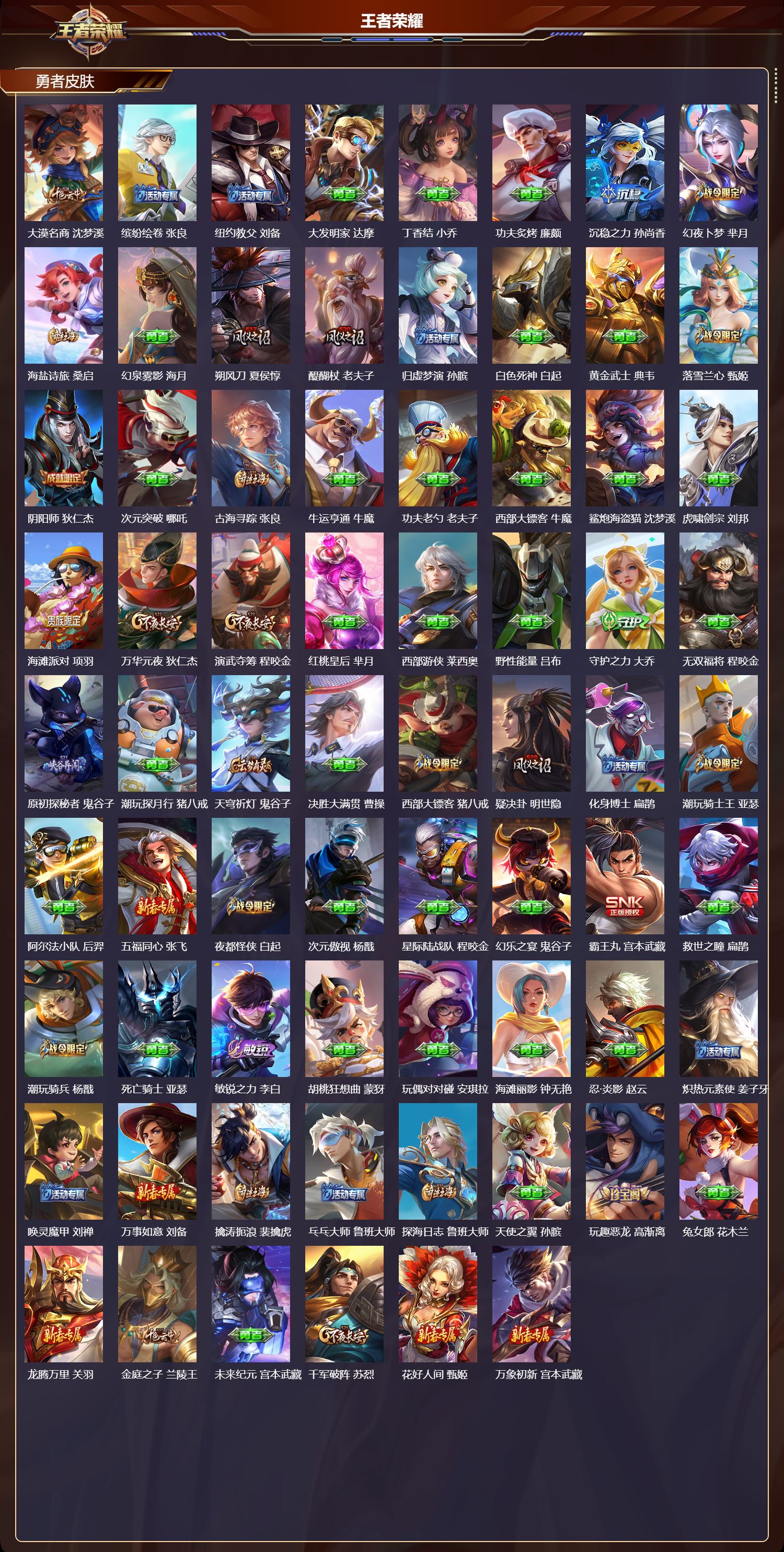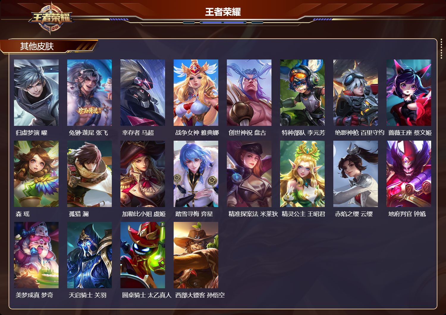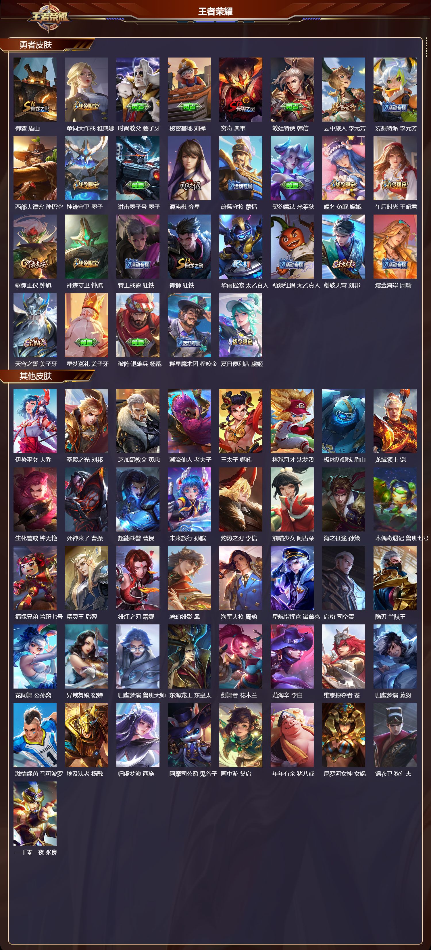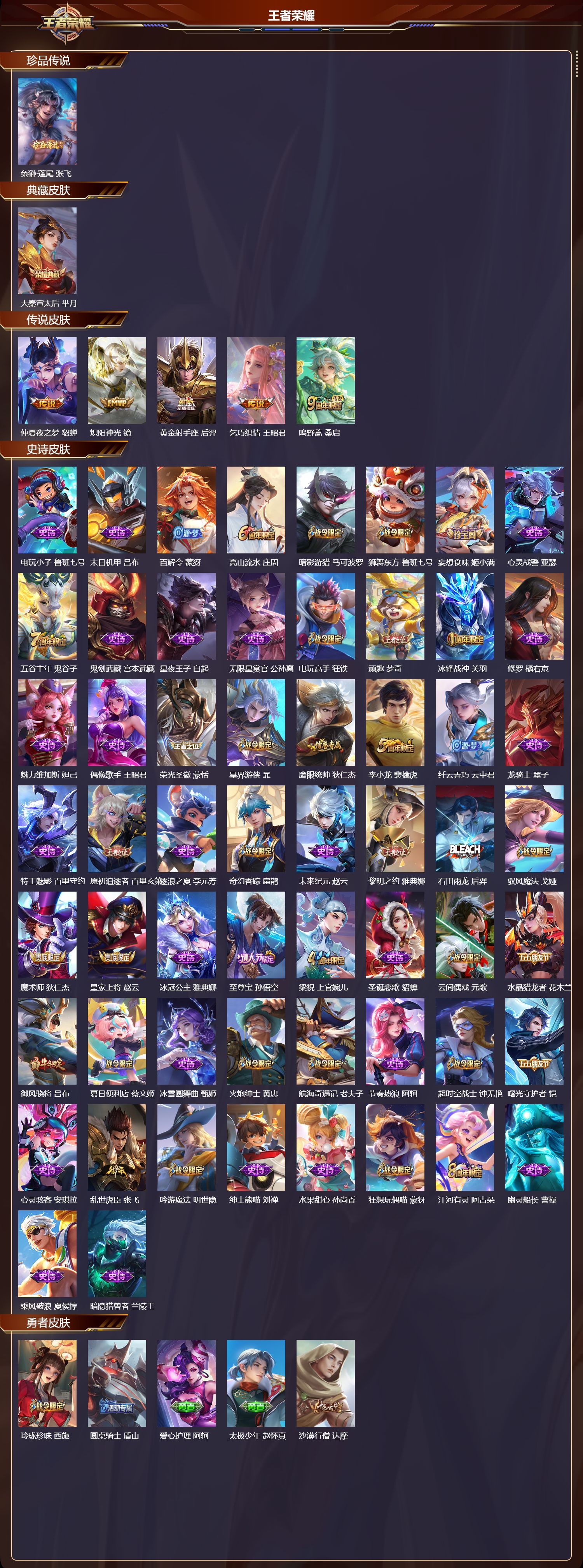 安卓qq/尊贵铂金/229皮肤/125英雄/1典藏/0珍品无双/0无双/1珍品传说/5传说/58史诗/7稀有英雄【1 珍品传说】兔狲·蓬尾 张飞【1 典藏皮肤】大秦宣太后 芈月【5 传说皮肤】仲夏夜之梦 貂蝉炽阳神光 镜黄金射手座 后羿乞巧织情 王昭君鸣野蒿 桑启【58 史诗皮肤】电玩小子 鲁班七号末日机甲 吕布百解令 蒙犽高山流水 庄周暗影游猎 马可波罗狮舞东方 鲁班七号