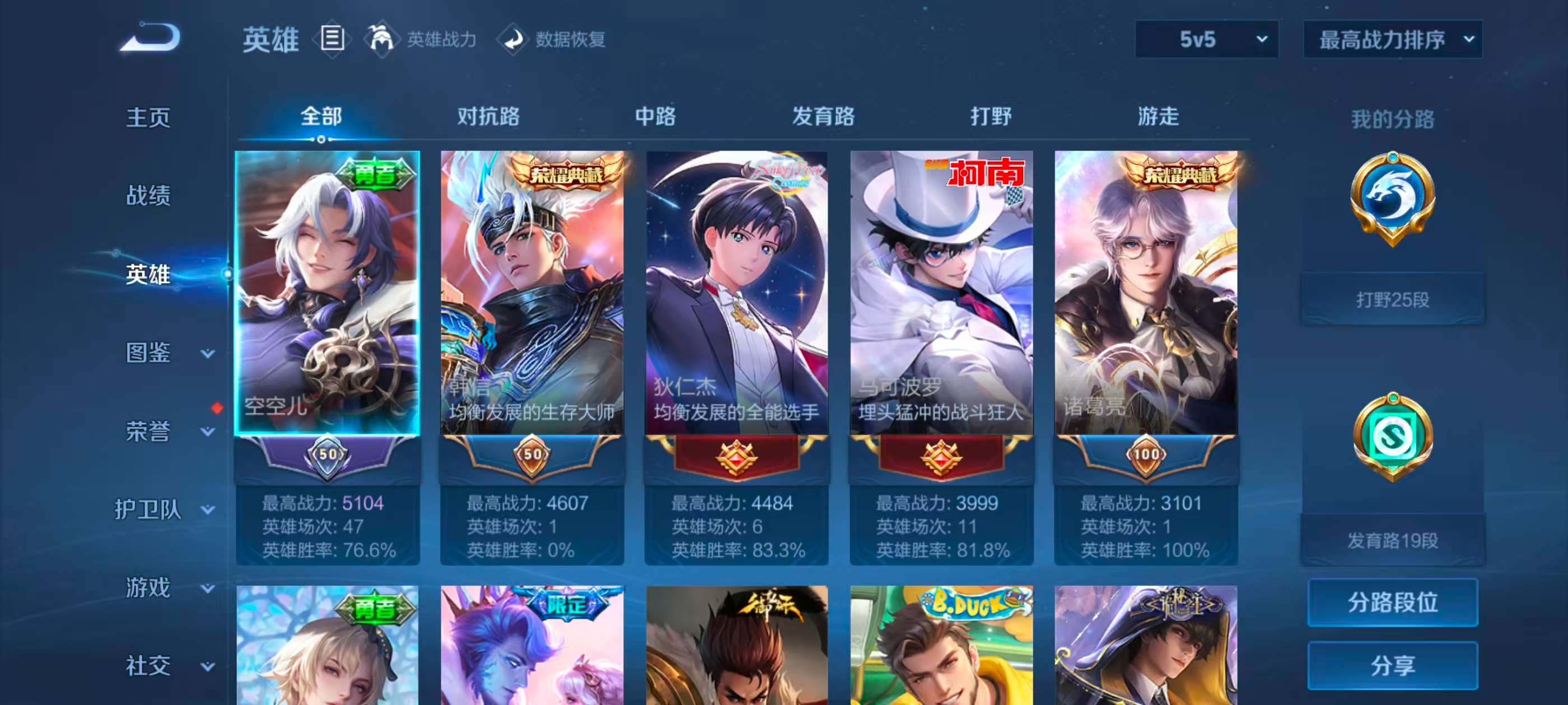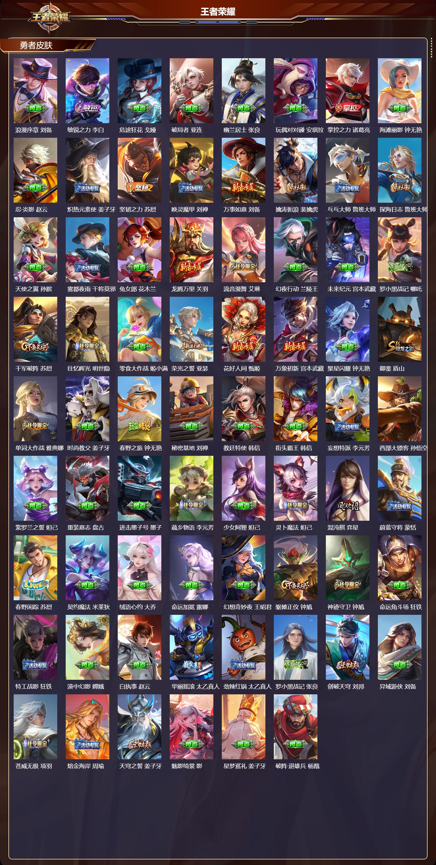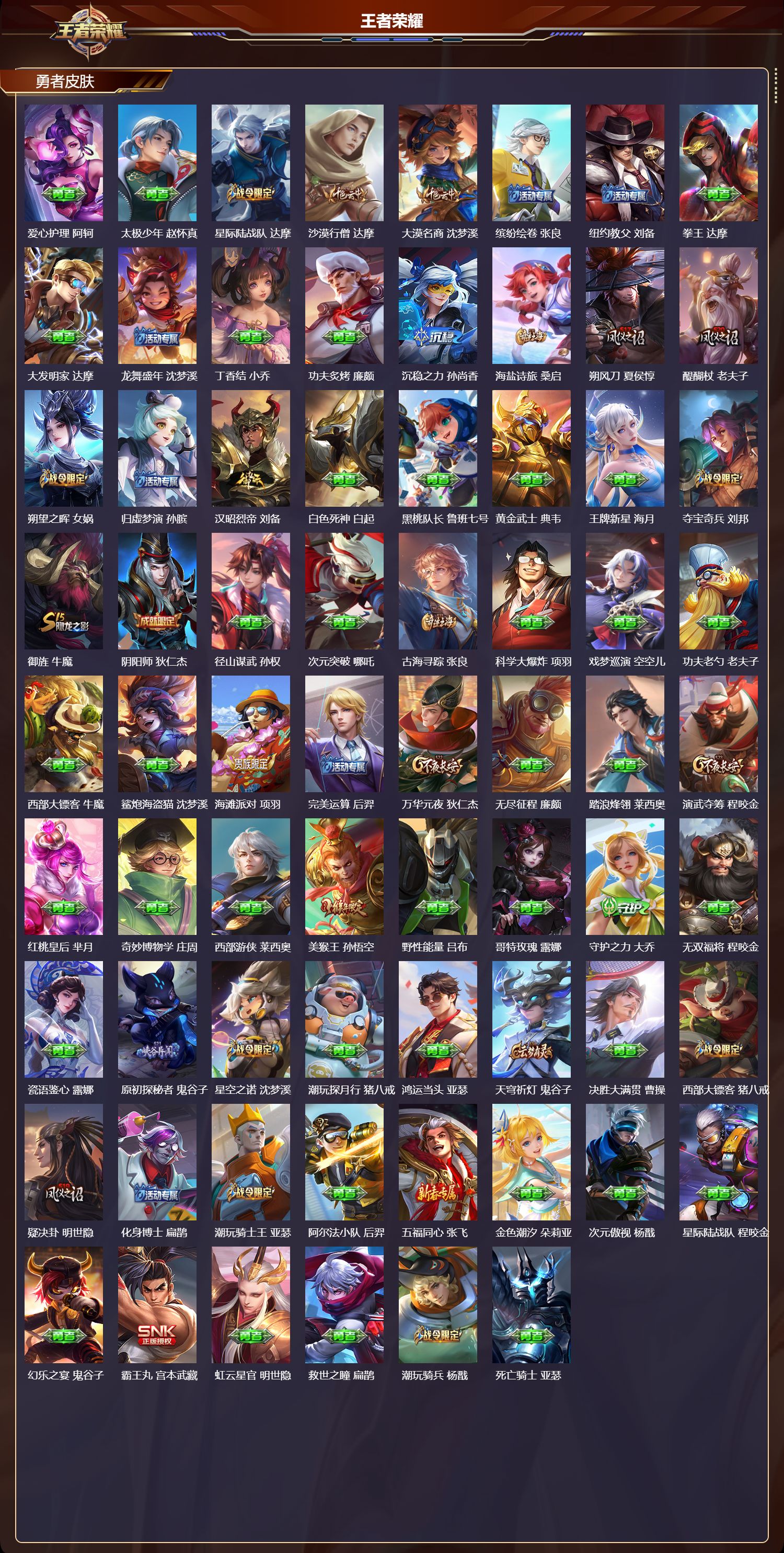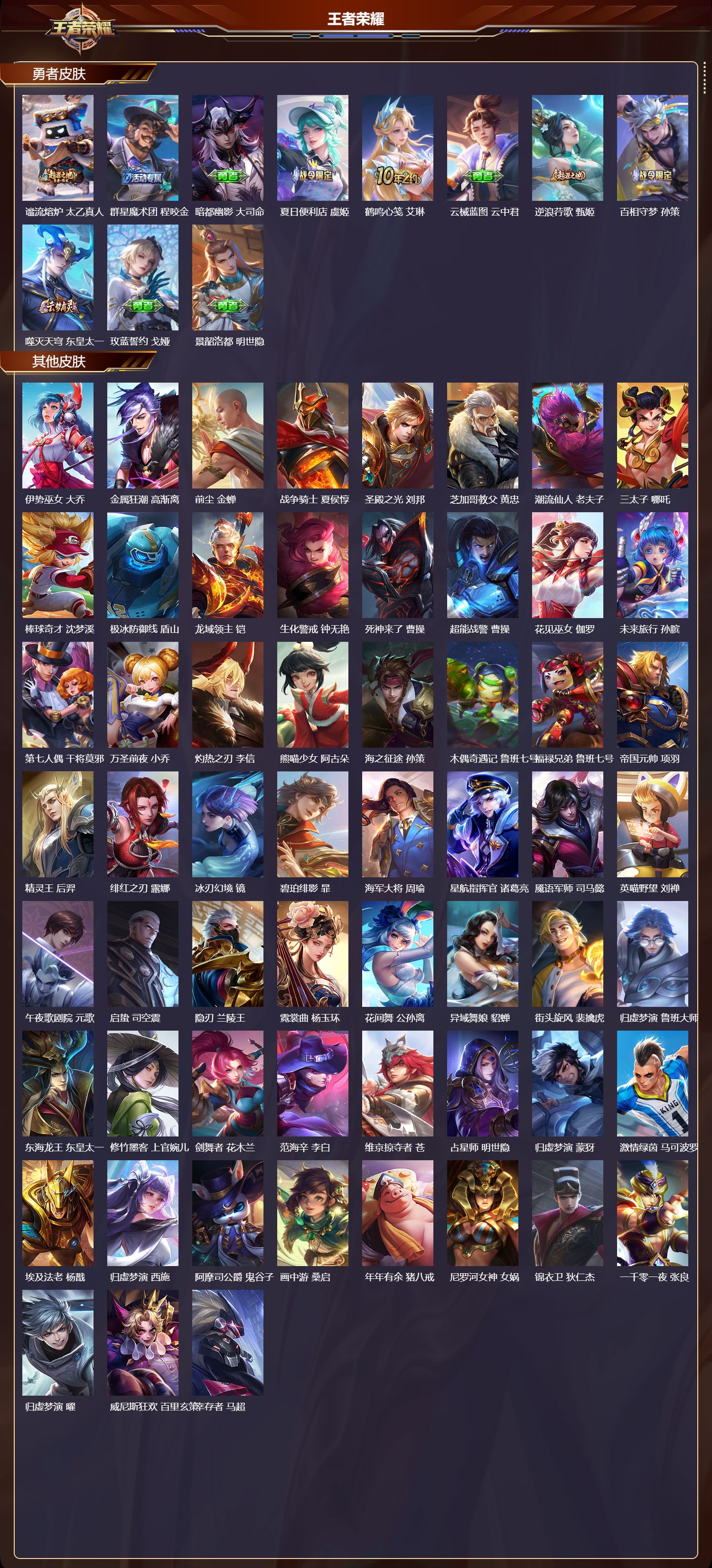 安卓qq/无双王者/372皮肤/127英雄/2典藏/0珍品无双/1无双/2珍品传说/20传说/112史诗/9稀有英雄【2 珍品传说】怪盗基德 马可波罗江户川柯南 鲁班七号【2 典藏皮肤】弑呛猎影 韩信星域神启 诸葛亮【1 无双皮肤】碎月剑心 李白【20 传说皮肤】鹤归松栖 云缨永恒水手月亮 王昭君启明星使 虞姬逐花归海 澜云鹰飞将 曜夜礼服假面 狄仁杰游龙清影 西施影龙天霄
