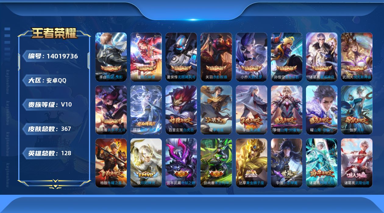 [14019736]安卓手q40区367皮9典藏40传说0无双1珍品传说v10 营地id347154762无双王者【珍品传说皮肤】:器灵·落星盏【荣耀典藏】:拾光映像杀手不太冷天鹅之梦赤影疾锋倪克斯神谕星域神启鸣剑·曳影全息碎影无限飓风号【优质限定皮肤】:山海·琳琅生山海·炽霜斩山海·苍雷引武圣白虎志至尊宝凤求凰梅西【传说皮肤】:神树通天胖达荣荣觅芳踪齐天大圣
