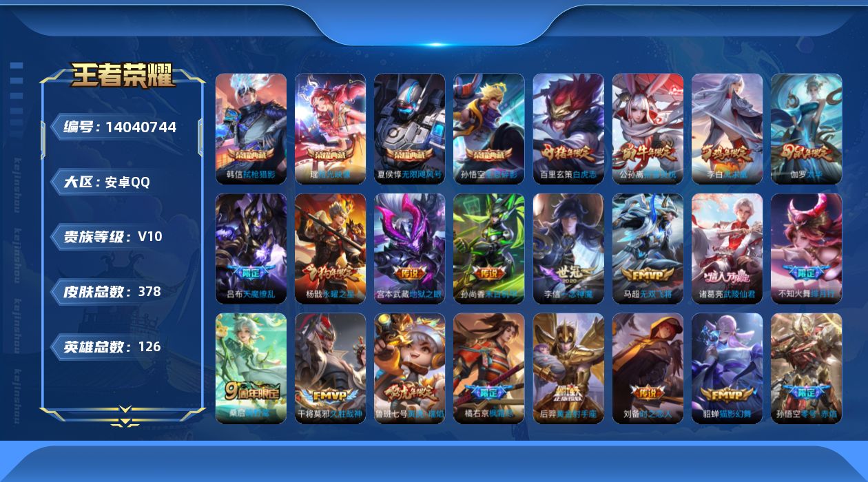 [14040744]贵族10 王者38 贵族积分190861 安卓手q227区378皮4典藏29传说0无双v10 营地id348759664绝世王者【荣耀典藏】:拾光映像弑呛猎影全息碎影无限飓风号【优质限定皮肤】:无双飞将祈雪灵祝至尊宝凤求凰白虎志梅西天魔缭乱【传说皮肤】:飞鸢探春神树通天鸣野蒿觅芳踪绯月行胖达荣荣碎云枫霜尽时之恋人无双飞将一念神魔