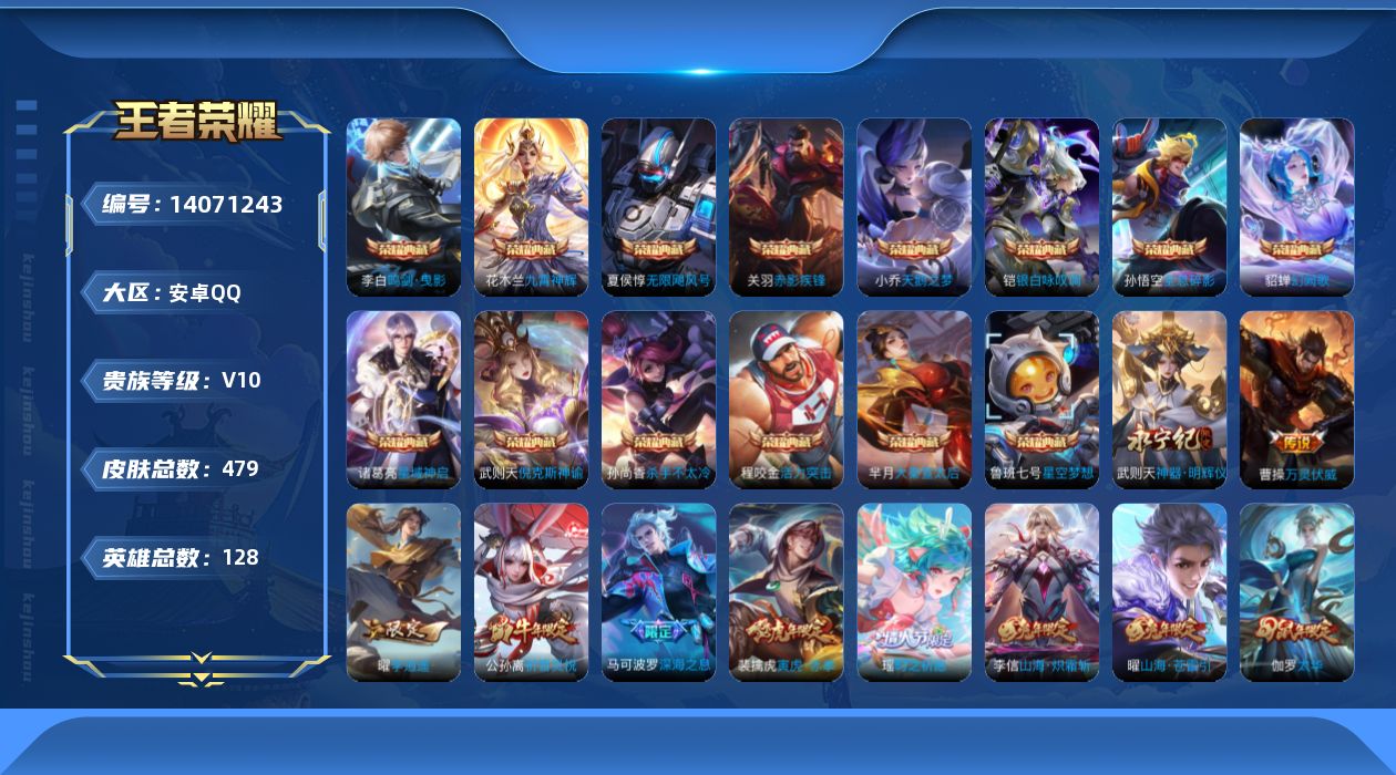 [14071243]皇冠号 号上有水晶 贵族10 王者11 安卓手q209区479皮14典藏60传说1无双v10 营地id529599651非凡王者【无双皮肤】:神器·明辉仪【荣耀典藏】:幻阙歌银白咏叹调赤影疾锋九霄神辉星域神启大秦宣太后鸣剑·曳影杀手不太冷倪克斯神谕星空梦想活力突击无限飓风号天鹅之梦全息碎影【优质限定皮肤】:山海·苍雷引山海·琳琅