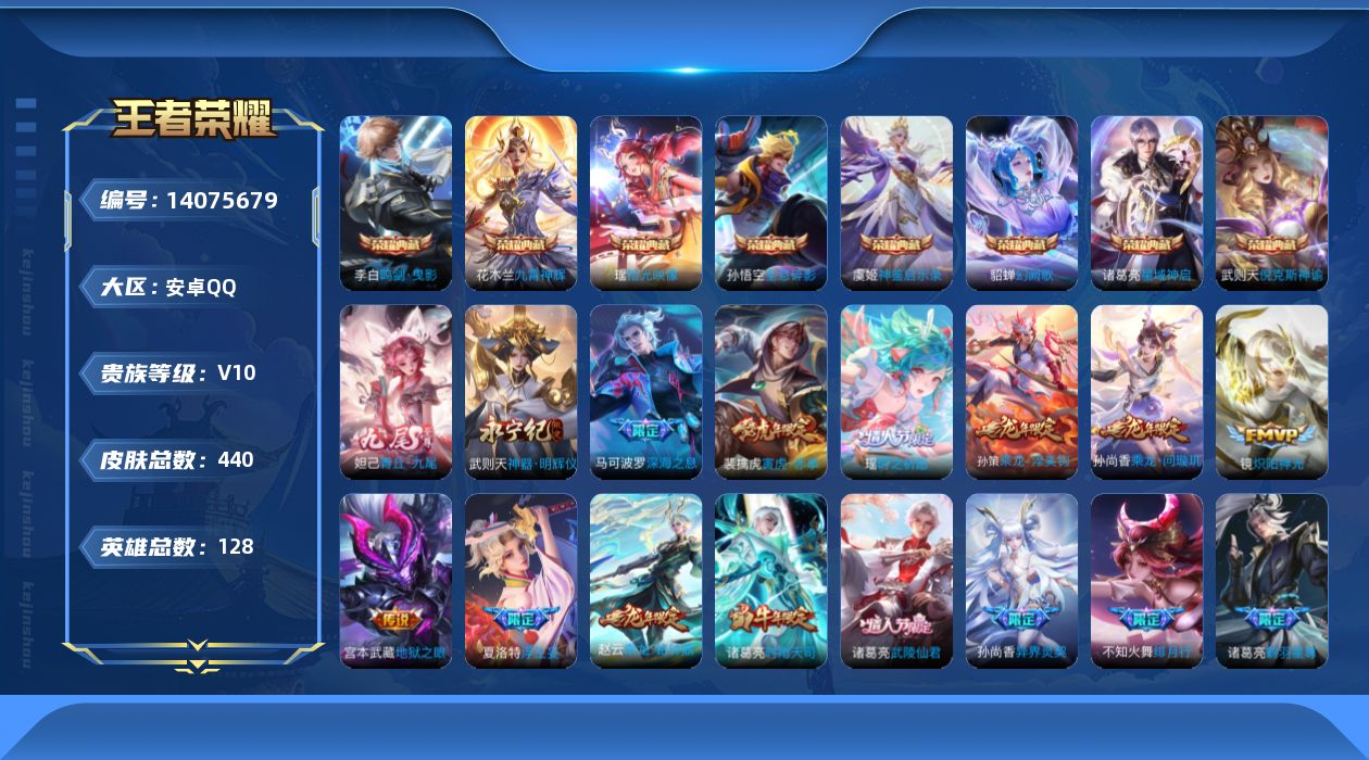 [14075679]皇冠号 小女号 九个天幕 贵族10-贵族积分233584-440皮8典藏36传说2无双-12个英雄全皮 安卓手q148区440皮8典藏36传说2无双v10 营地id360352913传奇王者【无双皮肤】:青丘·九尾神器·明辉仪【荣耀典藏】:拾光映像神鉴启示录幻阙歌九霄神辉星域神启全息碎影倪克斯神谕鸣剑·曳影【优质限定皮肤】:瑶时之祈愿云中君