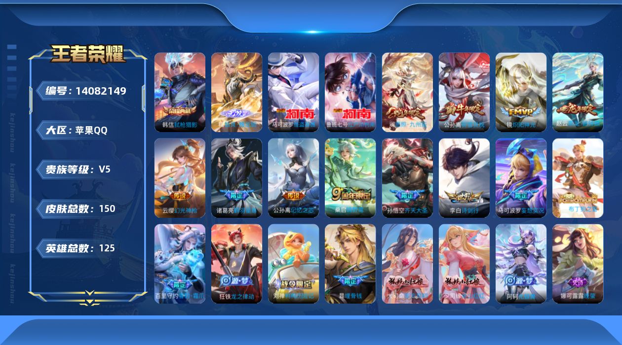 [14082149]贵族7 150皮1典藏11传说1无双2珍品传说 可二次 苹果手q128区150皮1典藏11传说1无双2珍品传说v5 营地id1807992860至尊星耀ii【珍品传说皮肤】:江户川柯南怪盗基德【无双皮肤】:器灵·螭龙剑【荣耀典藏】:弑呛猎影【优质限定皮肤】:祈雪灵祝【传说皮肤】:鹤羽星尊祈雪灵祝幻光神呛愿照·九州拓记忆之芯齐天大圣鸣野蒿妄想实况诗剑行炽阳神