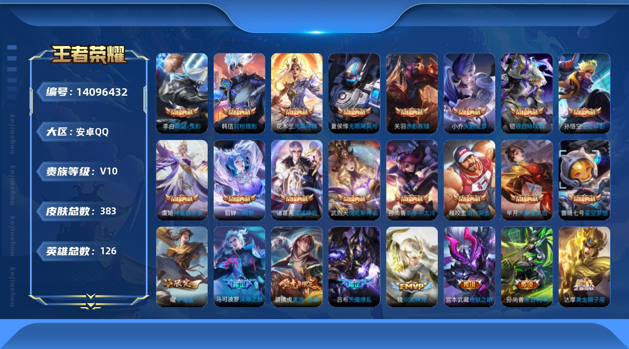 [14096432]安卓手q61区383皮16典藏41传说0无双 营地id368395662v10非凡王者【荣耀典藏】:神鉴启示录弑呛猎影幻阙歌银白咏叹调赤影疾锋九霄神辉杀手不太冷全息碎影活力突击大秦宣太后天鹅之梦星空梦想倪克斯神谕无限飓风号星域神启鸣剑·曳影【优质限定皮肤】:天魔缭乱无双飞将【传说皮肤】:幻光神呛鸣野蒿觅芳踪绛天战甲游龙清影超时空战士