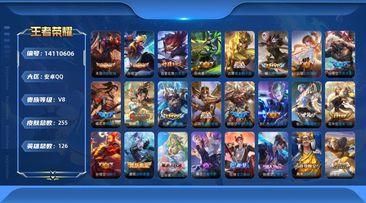 [14110606]可二次 安卓手q220区255皮2典藏16传说0无双v8 营地id416005100荣耀王者【荣耀典藏】:赤影疾锋全息碎影【优质限定皮肤】:白虎志至尊宝【传说皮肤】:黄金狮子座冠军飞将遇见胡旋云鹰飞将启明星使超时空战士白虎志末日机甲地狱火淬星耀世枫霜尽怒海麟威幻光神呛黄金射手座齐天大圣零号·赤焰【史诗皮肤】:李小龙龙之律动涂山容容