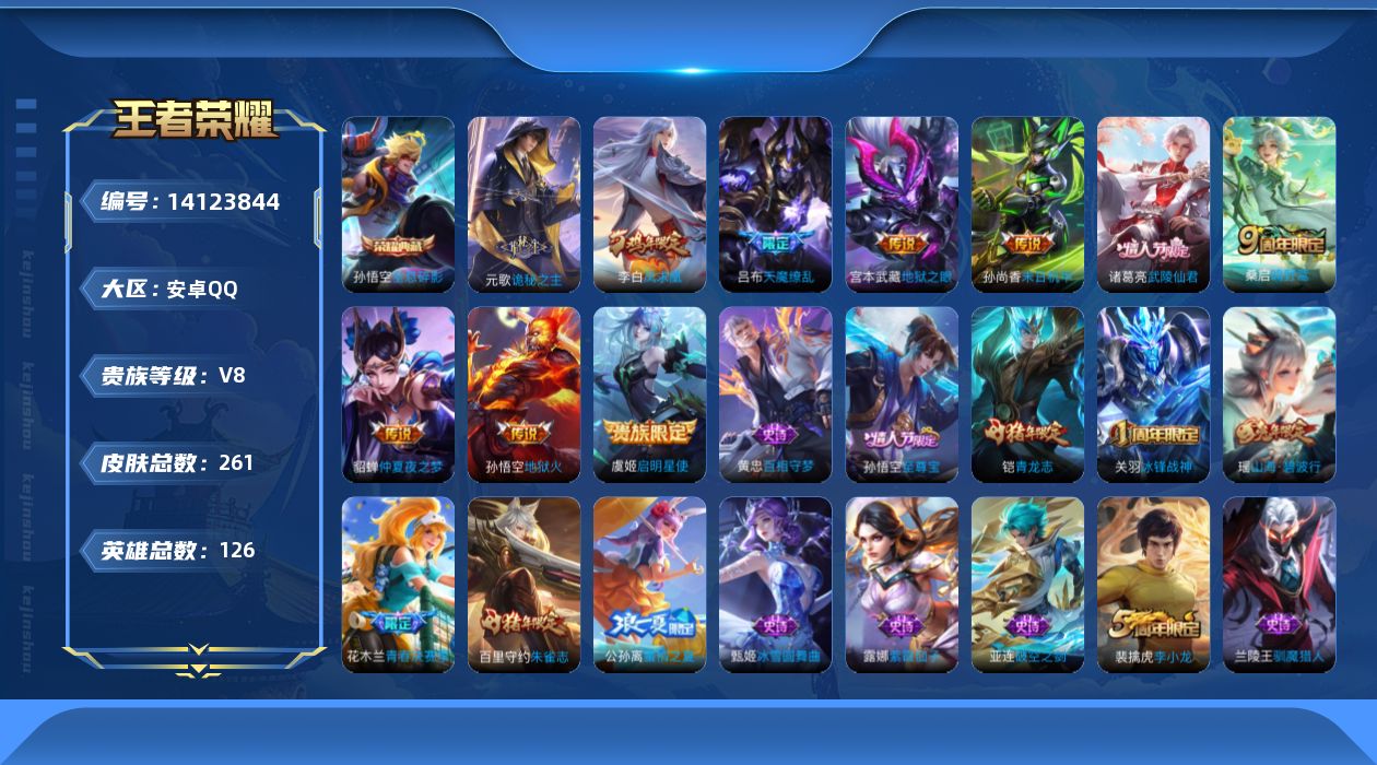 [14123844]贵族8 钻石3 贵族积分59353 安卓手q528区261皮1典藏10传说0无双v8 营地id74594610永恒钻石iii【荣耀典藏】:全息碎影【优质限定皮肤】:天魔缭乱凤求凰至尊宝【传说皮肤】:鸣野蒿启明星使地狱之眼天魔缭乱武陵仙君地狱火末日机甲凤求凰仲夏夜之梦诡秘之主【史诗皮肤】:山海·碧波行游园惊梦特工魅影陌上桑破空之剑紫霞仙子蔬乡物