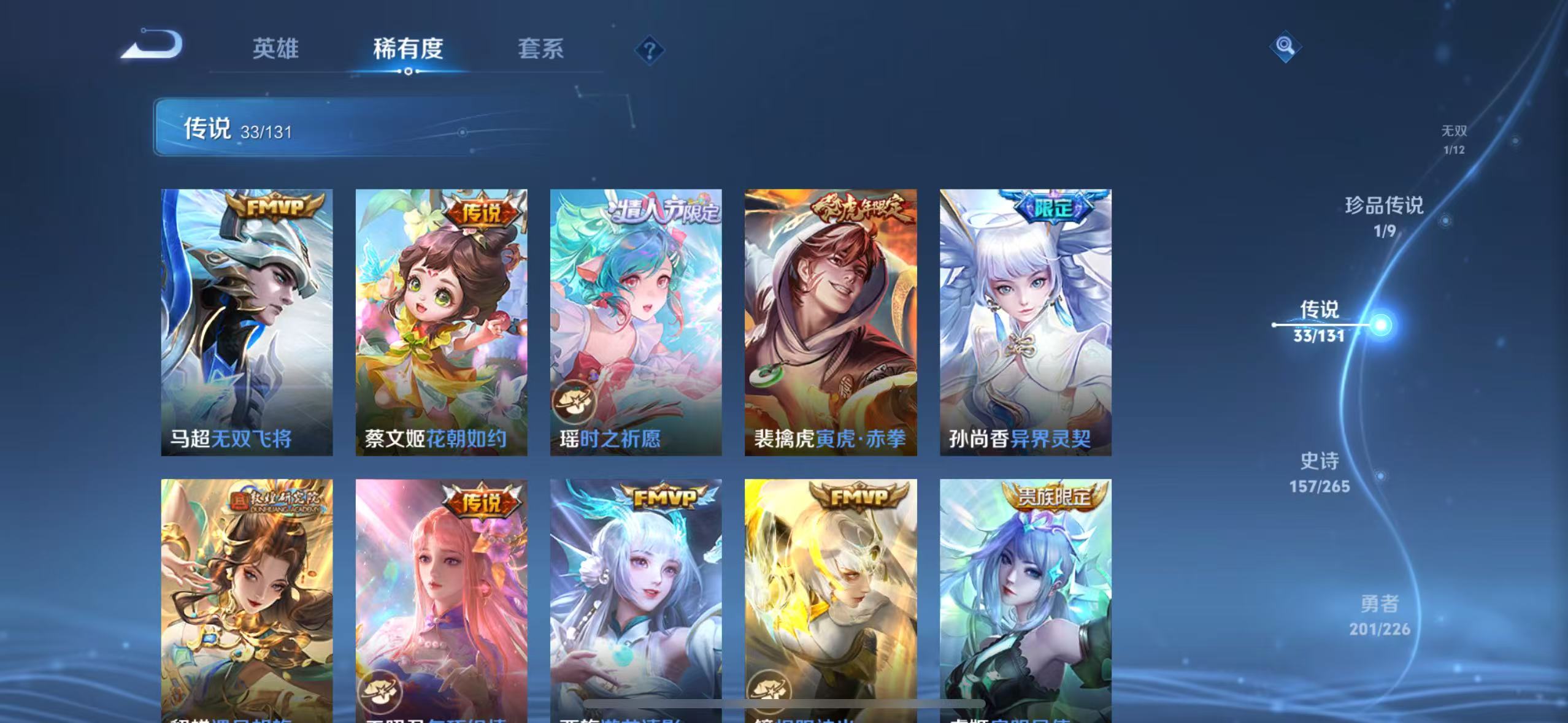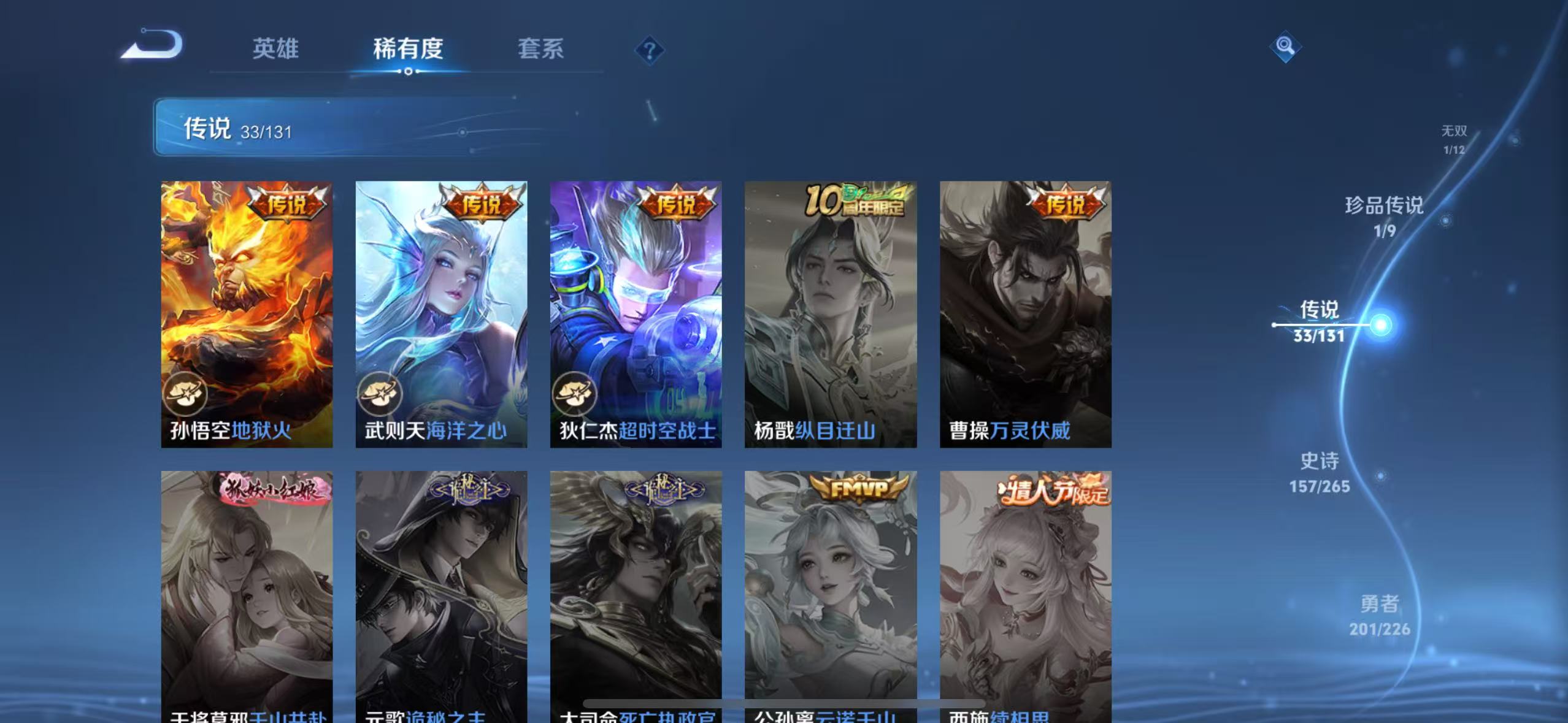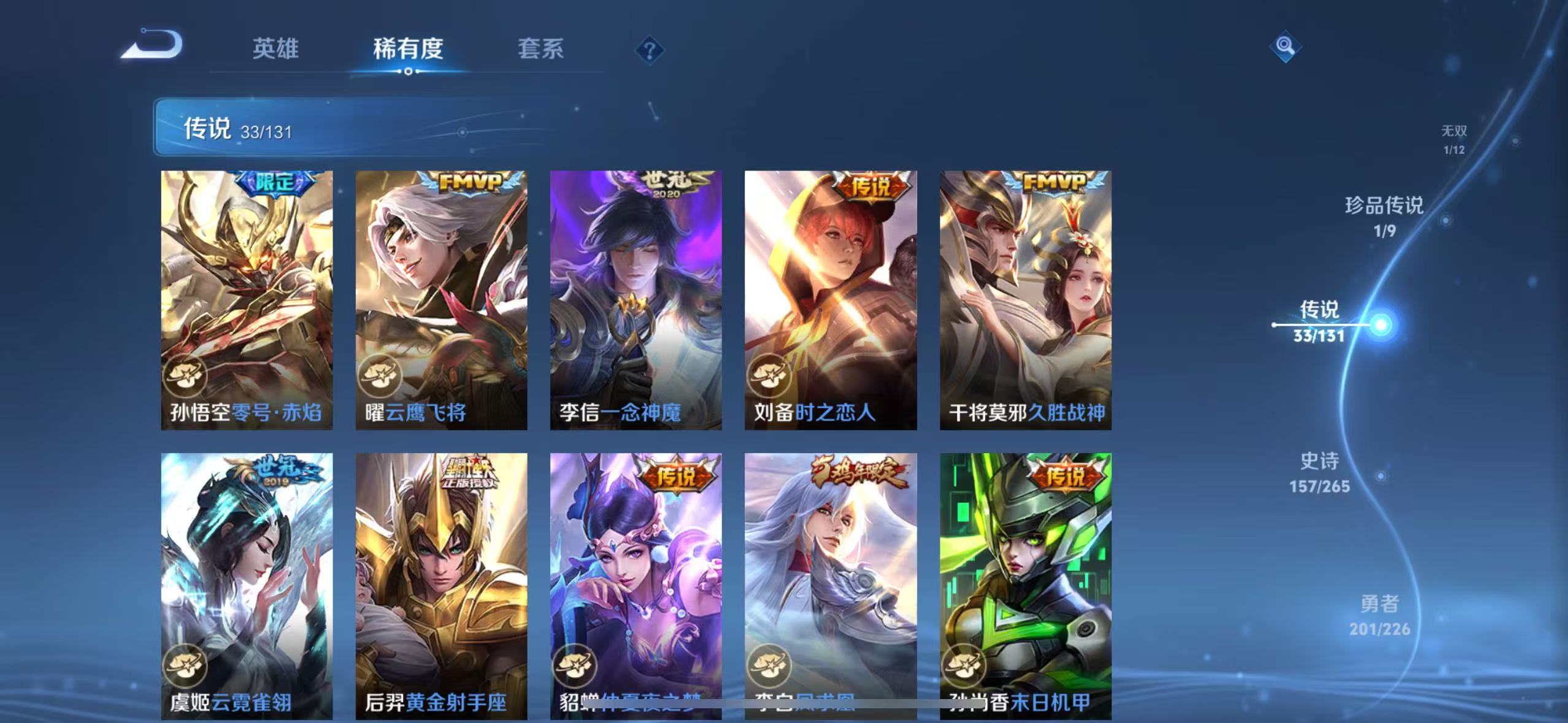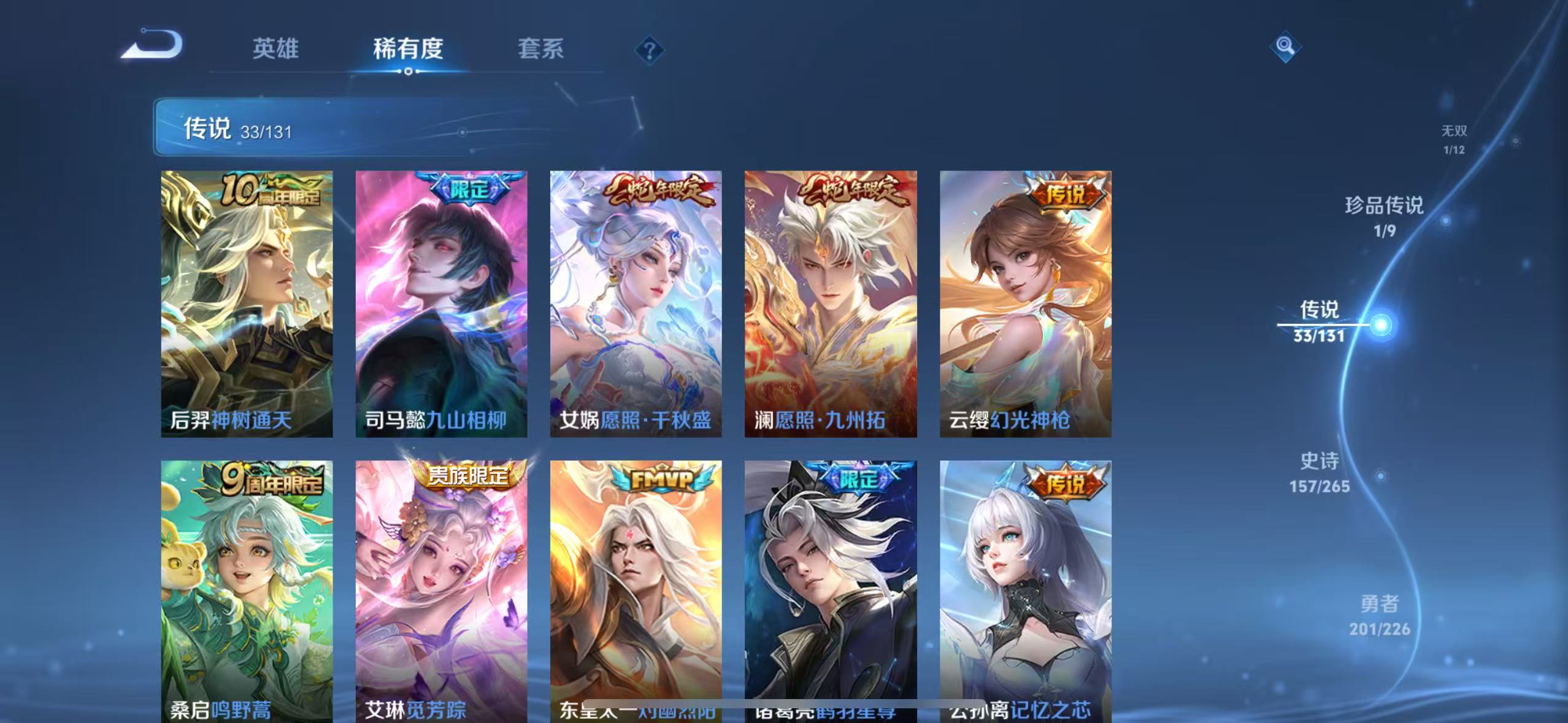 v10-479皮肤 5典藏最初的交响,弑呛猎影,鸣剑·曳影,杀手不太冷,天鹅之梦 1无双神罪 1珍品 黑崎一护 33传说神树通天,九山相柳,寅虎·赤拳,花朝如约,乞巧织情,觅芳踪,愿照·九州拓,愿照·千秋盛,幻光神呛,鸣野蒿,游龙清影,灼幽烈阳,记忆之芯,无双飞将,超时空战士,鹤羽星尊,黄金射手座,地狱火,一念神魔,遇见胡旋,时之祈愿,异界灵契,云鹰飞将,零号·赤焰,炽阳神光,启明星使,时之恋人,凤求凰,久胜战神,云霓雀翎,海洋之心,仲夏夜之梦,末日机甲 157史诗