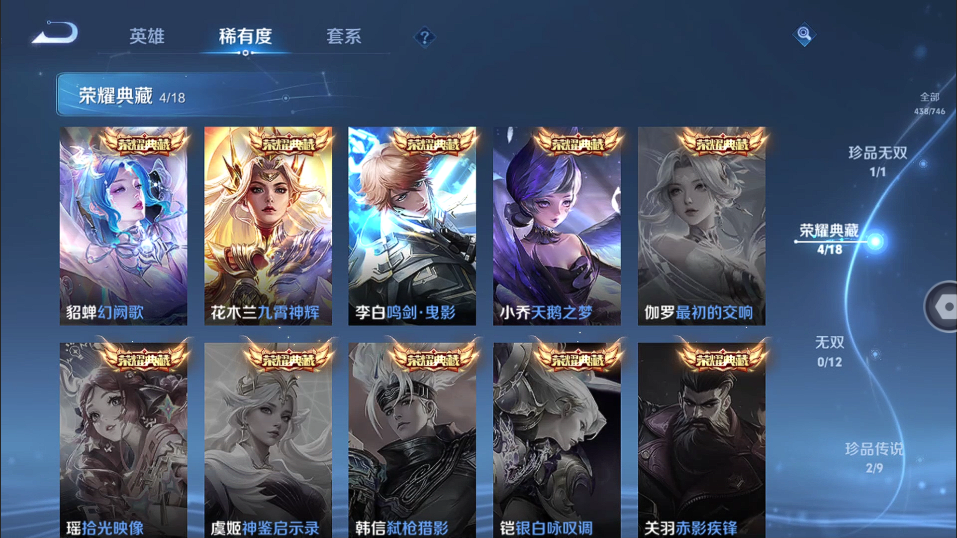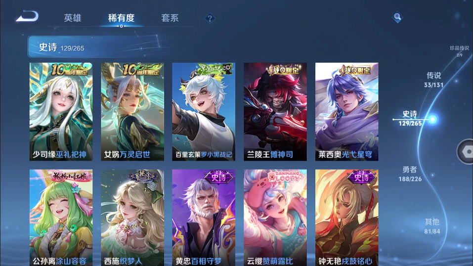 【王者荣耀】【lywz21492】珍品无双1 典藏4 无双0 珍品传说2 传说33 史诗129 英雄127 皮肤438 贵族9级 珍品无双:馥梦繁花__荣耀典藏:天鹅之梦|幻阙歌|九霄神辉|鸣剑·曳影__珍品传说:大耳狗之梦|酷洛米之心__传说皮肤:鸣野蒿|挚爱花嫁|启示之音|补天|炽阳神光|启明星使|地狱之眼|孙策-末日机甲|黄金狮子座|黄金射手座|一念神魔|李|乞巧织情|炽翼辉光|绯月行|孙尚香-末日机甲|铠-琥珀纪元|马超-琥珀纪元|怒海麟威|乘龙·淬吴钩|乘龙·铭钟鼎|乘龙·问璇玑|山海·炽霜斩|幻光神呛|愿照·九州拓|愿照·众生和|星之鸣奏|云诺千山|九山相柳|千山共赴|万灵伏威|神树通天|纵目迁山__稀有限定:寅虎·御盾|寅虎·心曲|瑞麟志|岱宗|傲雪梅呛|梁祝|山海·玄木吟|拒霜思|暗影游猎|百解令|嫦娥-如梦令|大漠名商|地狱燃心|电玩高手|高山流水|古海寻踪|海滩派对|海盐诗旅|航海奇遇记|后羿-如梦令|华丽摇滚|幻夜卜梦|皇家上将|火炮绅士|剑破天穹|江河有灵|金庭之子|狂想玩偶喵|黎明之约|魔术师|匿光破解者|匿光追影者|女武神|奇幻香踪|千军破阵|擒涛扼浪|青焰无极|驱傩正仪|燃音魔法|荣光圣徽|沙漠行僧|死亡摇滚|探海日志|天穹祈灯|玩趣恶龙|万华元夜|妄想食味|无心|五谷丰年|午后时光|纤云弄巧|星界游侠|演武夺筹|阴阳师|驭风魔法|遇见飞天|原初追逐者|云间偶戏|真爱魔法|逐梦之翼|逐梦之音|暗夜贵公子|暗隐猎兽者|暗渊魔法|缤纷独角兽|冰冠公主|冰雪圆舞曲|乘风破浪|乘龙·聚宝船|乘龙·忆丹青|大乔-猫狗日记|德古拉伯爵|地狱岩魂|电玩·爆裂旋风|电玩小子|浮梦罗烟|伽罗-琥珀纪元|功夫厨神|鬼剑武藏|唤灵魅影|黄金分割率|节奏热浪|金属风暴|莱西奥-末日机甲|李元芳-蔬乡物语|龙骑士|吕布-末日机甲|魅力维加斯|魅语|梦奇-顽趣|女仆咖啡|偶像歌手|青蛇|上官婉儿-群星魔术团|绅士熊喵|圣诞狂欢|圣诞恋歌|鲁班七号-蔬乡物语|水果甜心|水晶猎龙者|孙策-猫狗日记|滕王阁序|天才门将|天秀·启明|晚萤|赵云-未来纪元|星夜王子|摇滚巨星|银翎春语|鹰眼统帅|永昼|幽灵船长|遇见神鹿|月团寄思|钟无艳-超时空战士|逐浪之夏|紫霞仙子|百里守约-百相守梦|老夫子-百相守梦|噬灭天穹|敬我三分|破空之剑|蔡文姬-夏日便利店|虞姬-夏日便利店|天穹之誓|浮光幕影|怒海争锋|安琪拉-时之奇旅|修罗|曙光守护者|心灵战警|千年之狐|无限星赏官|舞动绿茵|特工魅影|心灵骇客|茶境仙|星界战将|谧流熔炉|器灵·浮梦炉|化蝶舞|原初探秘者|云中旅人|玲珑珍味|单词大作战|朔望之晖|孙悟空-神迹守卫|达摩-星际陆战队|流音漫舞|访茗客|暖冬·兔眠|灵卜魔法|夺宝奇兵|苍威无极|圣弓游侠|墨子-神迹守卫|落雪兰心|华尔街大亨|刘禅-鸭鸭历险记|沈梦溪-鸭鸭历险记|灵蛊蚀心|龙之律动|布丁狗之约|虚灵犬护|石田雨龙|逆浪荇歌|孙策-百相守梦|周瑜-百相守梦|戍鼓铭心|赞萌露比|黄忠-百相守梦|织梦人|涂山容容|光弋星穹|傩神司|往忆晖光|百里玄策-罗小黑战记|荣光之誓|万灵启世|巫礼祀神|鹤鸣心笺__优质皮肤:尼罗河女神|一千零一夜|创世神祝|年年有余|埃及法老|孤猎|木偶奇遇记|熊喵少女|午夜歌剧院|火炮千金|露花倒影|未来旅行|激情绿茵|海之征途|天启骑士|碧珀绯影|秩序猎龙将|锦衣卫|冰刃幻境|森|超能战警|英喵野望|维京掠夺者|海军大将|绯红之刃|踏雪寻梅|启蛰|战争骑士|伊势巫女|画中游|生化警戒|威尼斯狂欢|第七人偶|潮流仙人|芝加哥教父|街头旋风|绝影神呛|地府判官|荷鲁斯之眼|幸存者|赤焰之缨|福禄兄弟|隐刃|前尘|特种部队|三太子|精灵王|剑舞者|范海辛|星航指挥官|龙域领主|爱与和平|占星师|花间舞|魇语军师|极冰防御线|花见巫女|棒球奇才|东海龙王|蔷薇王座|灼热之刃|精准探案法|圣殿之光|帝国元帅|战争女神|霓裳曲|加勒比小姐|阿摩司公爵|异域舞娘|精灵公主|修竹墨客|万圣前夜|怪诞之夜|动物派对|绒语心约|长夏之忆|破阵·退雄兵|异域游侠|暗都幽影|功夫炙烤|暖冬絮语|幻夜行动|聚星闪耀|潮玩探月行|虎啸剑宗|瓷语鉴心|秘密基地|次元突破|鲨炮海盗猫|野性能量|丁香结|虹云星官|守护之力|坚韧之力|幻乐之宴|功夫老勺|命运角斗场|幻想奇妙夜|海滩丽影|阿尔法小队|兔女郎|死亡骑士|黄金武士|少女阿狸|天使之翼|玩偶对对碰|宫本武藏-未来纪元|红桃皇后|忍·炎影|爱心护理|街头霸王|教廷特使|金色潮汐|漠中幻影|时空谍影|决胜大满贯|破局者|王牌新星|零食大作战|西部游侠|太极少年|牛运亨通|幻泉雾影|危途狂花|胡桃狂想曲|契约魔法|潮玩牛仔|紫罗兰之誓|铁甲之心|重装意志|次元傲视|无尽征程|黑桃队长|幽兰居士|制霸全明星|拳王|时尚教父|鲤鱼之梦|救世之瞳|白色死神|程咬金-星际陆战队|白执事|大发明家|致命风华|哥特玫瑰|魅影绮裳|西施-雪境奇遇|金福满堂|星梦巡礼|灵卦秘语|爆裂喵拳|景韶洛都|浪漫序章|缤纷绘卷|掌控之力|雾都夜雨|逐霄战戟|铁骨偃魂|纽约教父|龙腾万里|乱世虎臣|经纬探寻者|敏锐之力|西施-归虚梦演|孙悟空-西部大镖客|牛魔-西部大镖客|鲁班大师-归虚梦演|热血海滩|龙舞盛年|汉昭烈帝|乓乓大师|五福同心|盾山-圆桌骑士|蒙犽-归虚梦演|万事如意|曜-归虚梦演|唤灵魔甲|太乙真人-圆桌骑士|沉稳之力|程咬金-群星魔术团|完美运算|化身博士|花好人间|熔金海岸|春野之旅|潮玩骑士王|万象初新|潮玩骑兵|苍林狼骑|蔚蓝守将|劲辣红锅|特