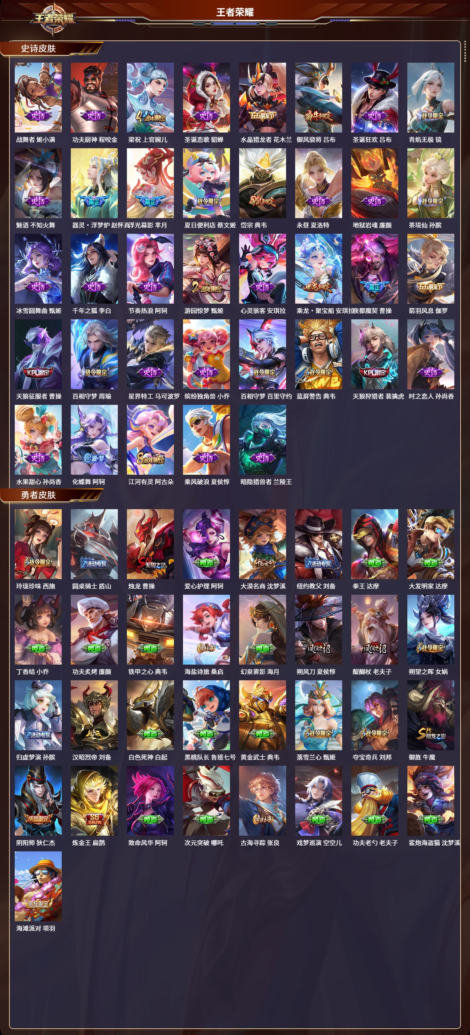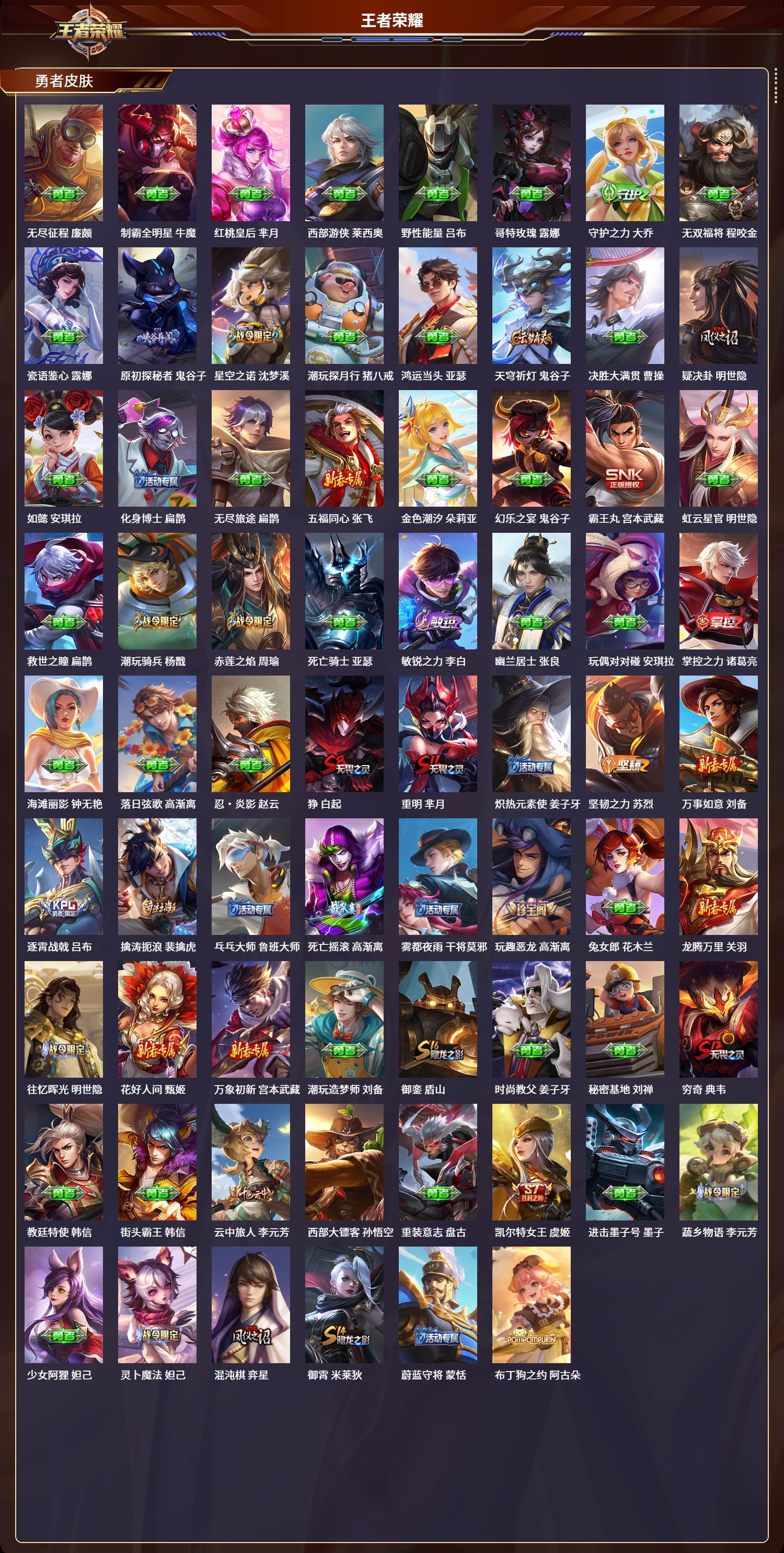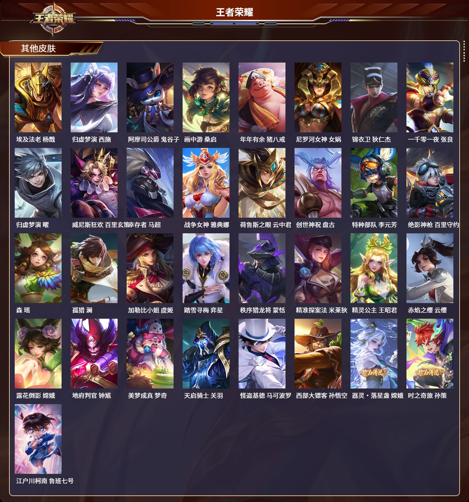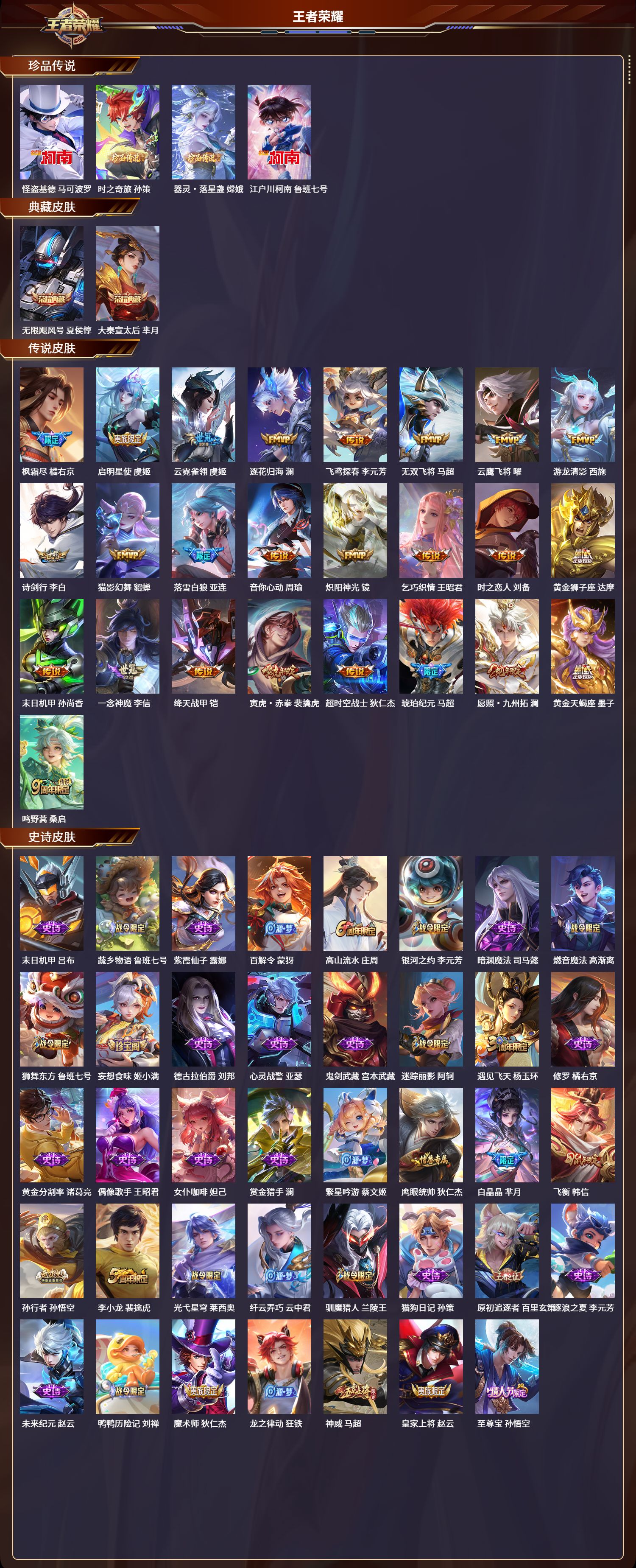 安卓qq/尊贵铂金/309皮肤/127英雄/2典藏/0珍品无双/0无双/4珍品传说/25传说/76史诗/9稀有英雄【4 珍品传说】怪盗基德 马可波罗时之奇旅 孙策器灵·落星盏 嫦娥江户川柯南 鲁班七号【2 典藏皮肤】无限飓风号 夏侯惇大秦宣太后 芈月【25 传说皮肤】枫霜尽 橘右京启明星使 虞姬云霓雀翎 虞姬逐花归海 澜飞鸢探春 李元芳无双飞将 马超云鹰
