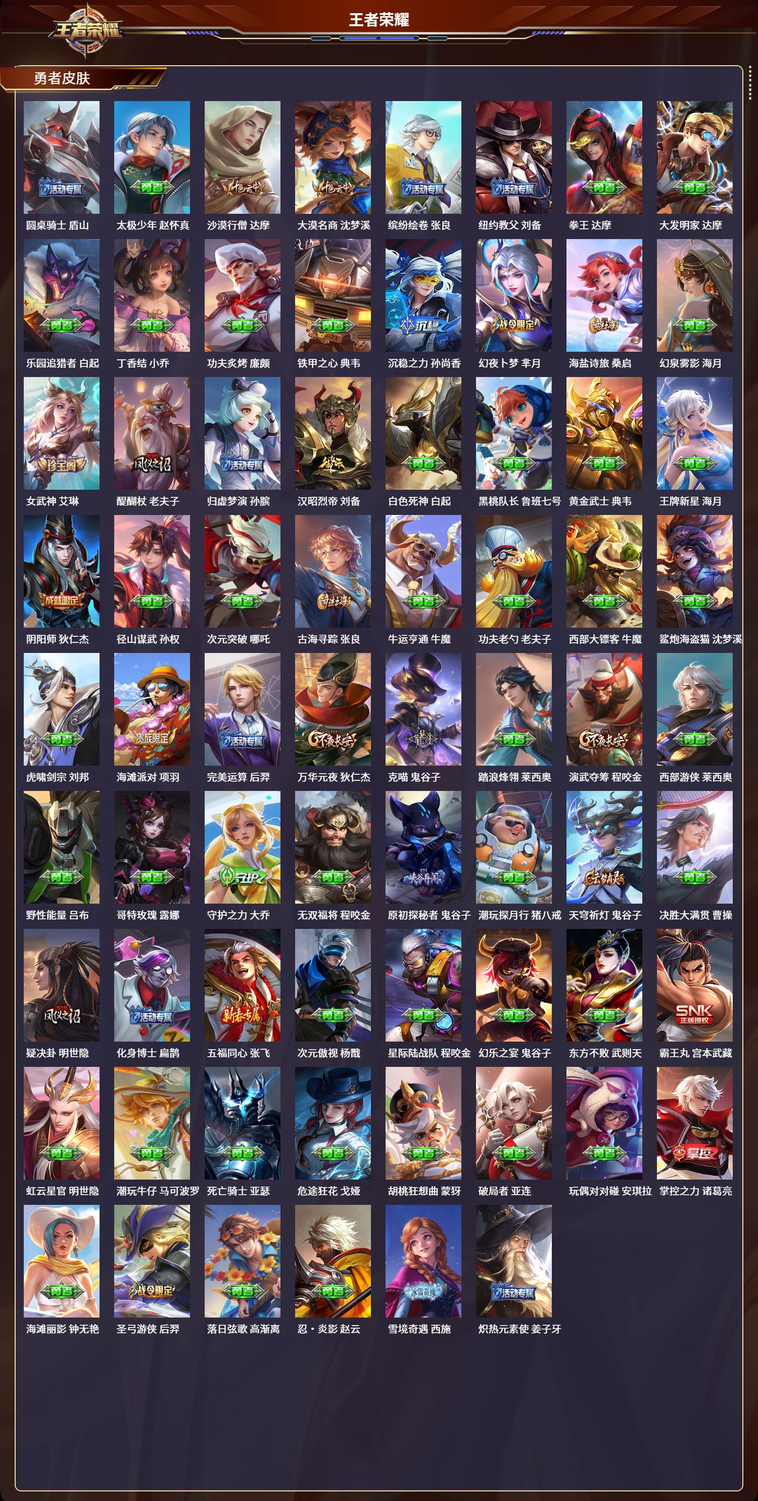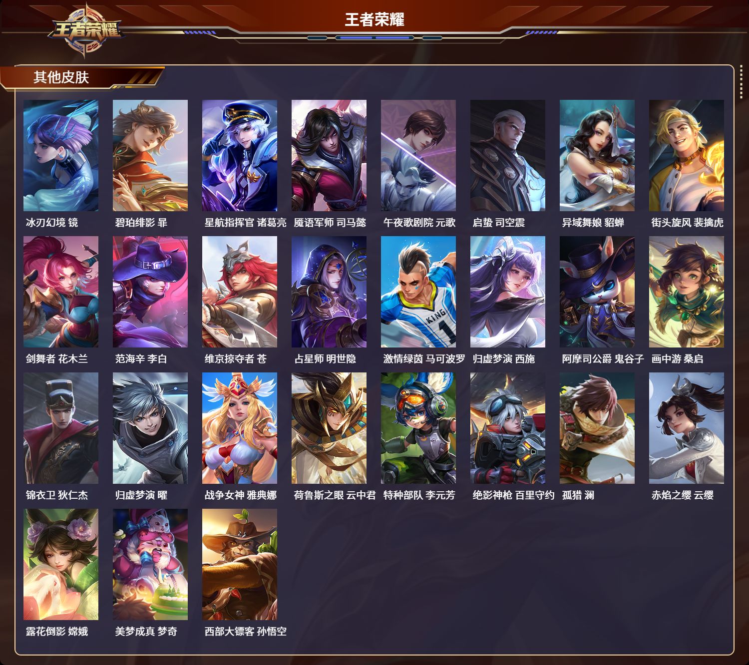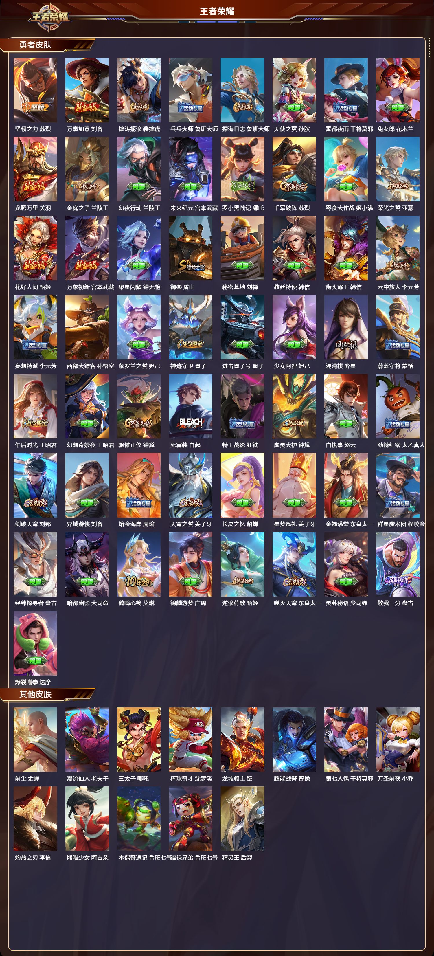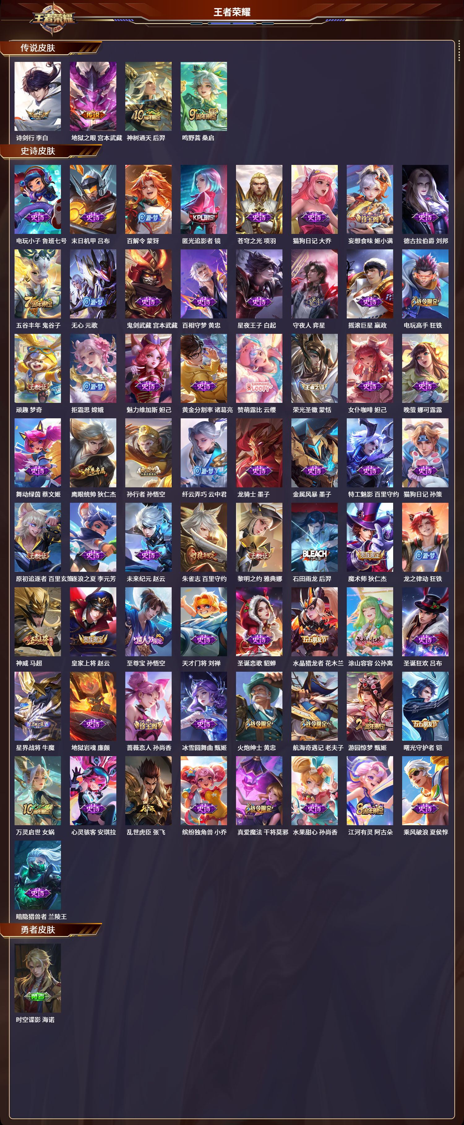 安卓qq/至尊星耀/236皮肤/127英雄/0典藏/0珍品无双/0无双/0珍品传说/4传说/65史诗/9稀有英雄【4 传说皮肤】诗剑行 李白地狱之眼 宫本武藏神树通天 后羿鸣野蒿 桑启【65 史诗皮肤】电玩小子 鲁班七号末日机甲 吕布百解令 蒙犽匿光追影者 镜苍穹之光 项羽猫狗日记 大乔妄想食味 姬小满德古拉伯爵 刘邦五谷丰年 鬼谷子无心 元歌鬼剑武
