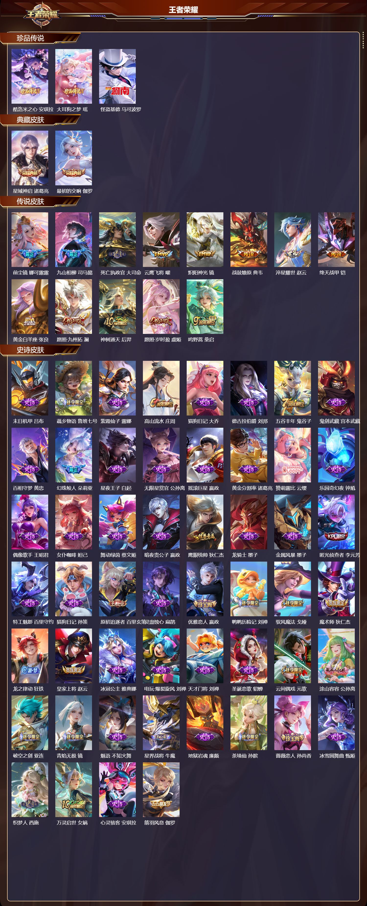 安卓qq/最强王者/223皮肤/127英雄/2典藏/0珍品无双/0无双/3珍品传说/13传说/62史诗/0稀有英雄【3 珍品传说】酷洛米之心 安琪拉大耳狗之梦 瑶怪盗基德 马可波罗【2 典藏皮肤】星域神启 诸葛亮最初的交响 伽罗【13 传说皮肤】前尘镜 娜可露露九山相柳 司马懿死亡执政官 大司命云鹰飞将 曜炽阳神光 镜战鼓燎原 典韦淬星耀世 赵云绛天战甲