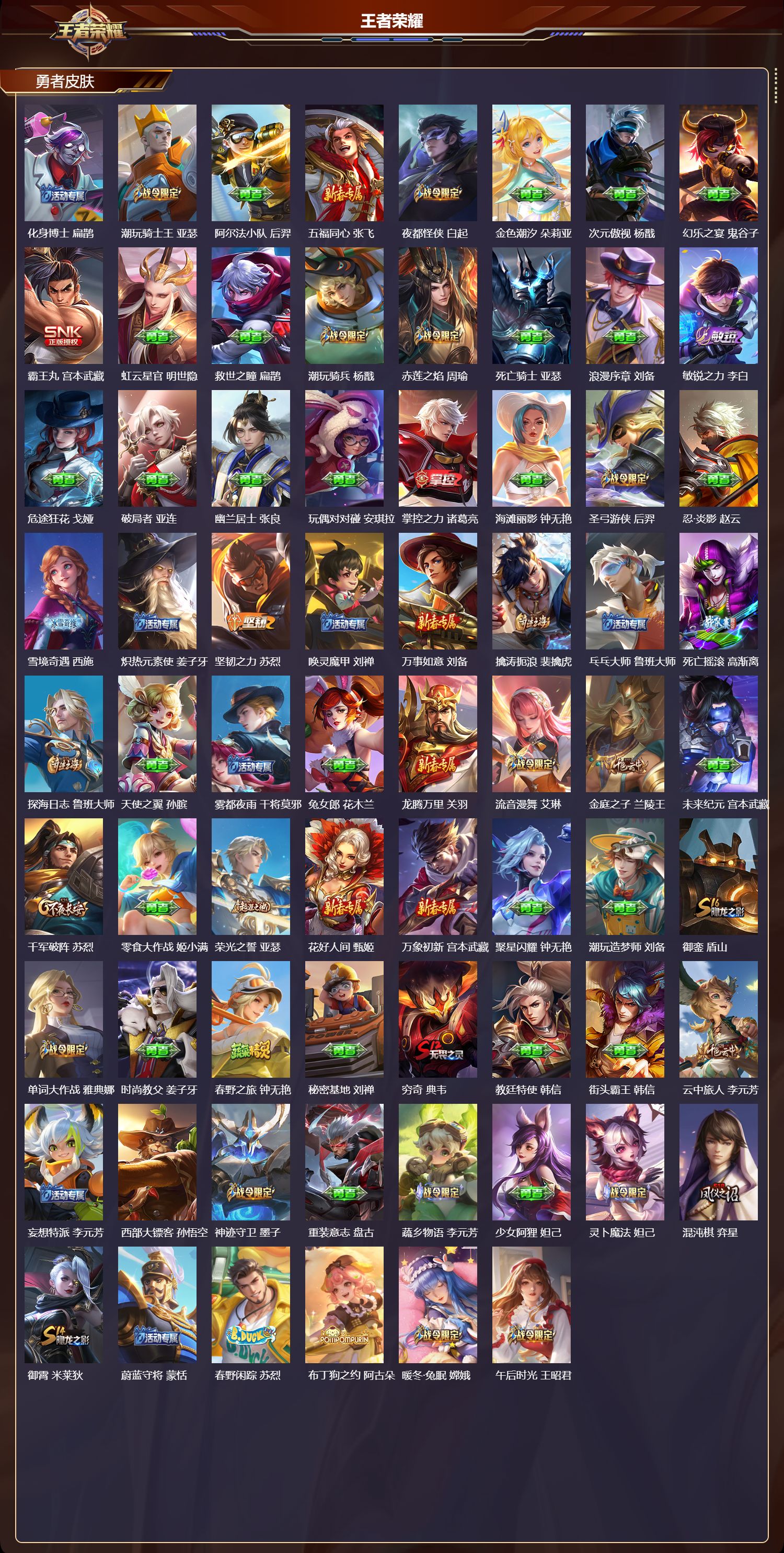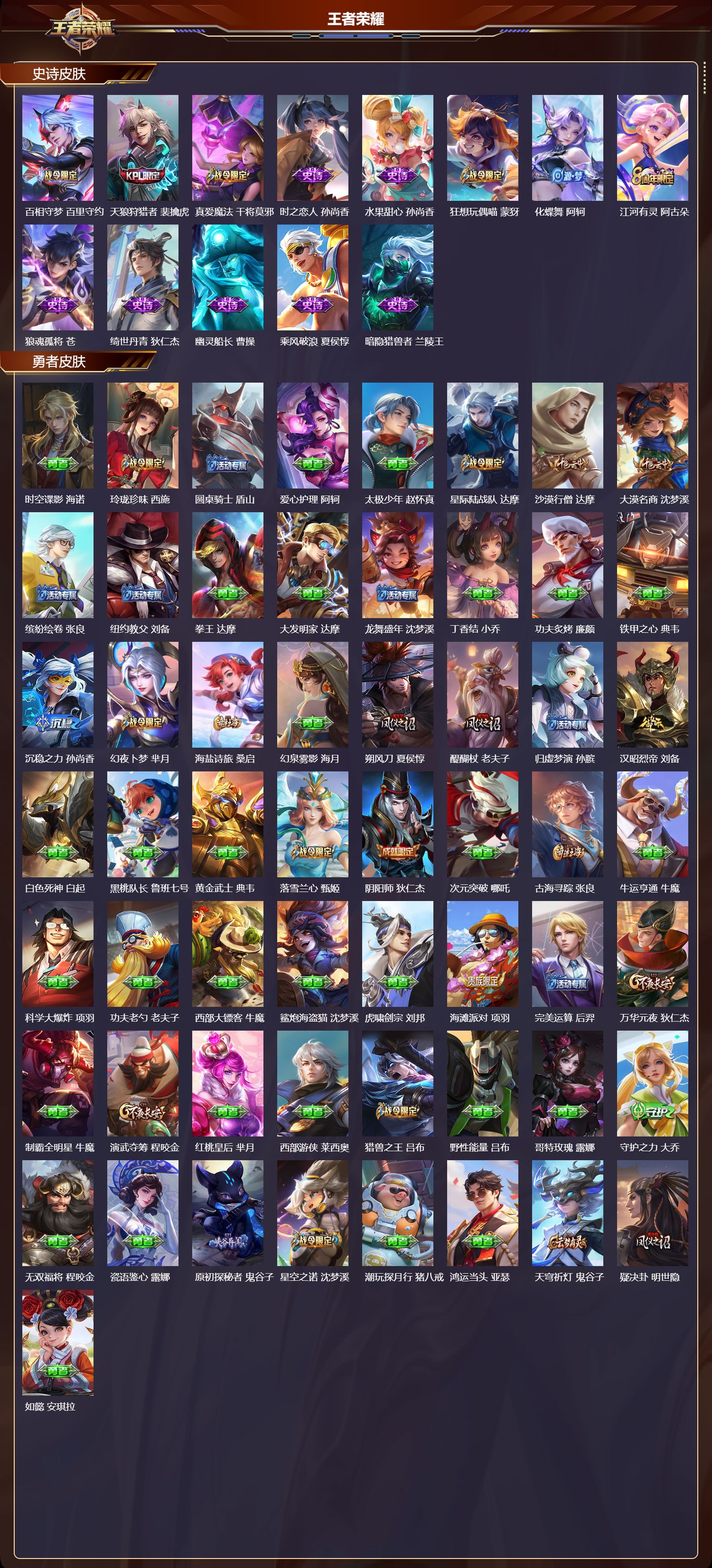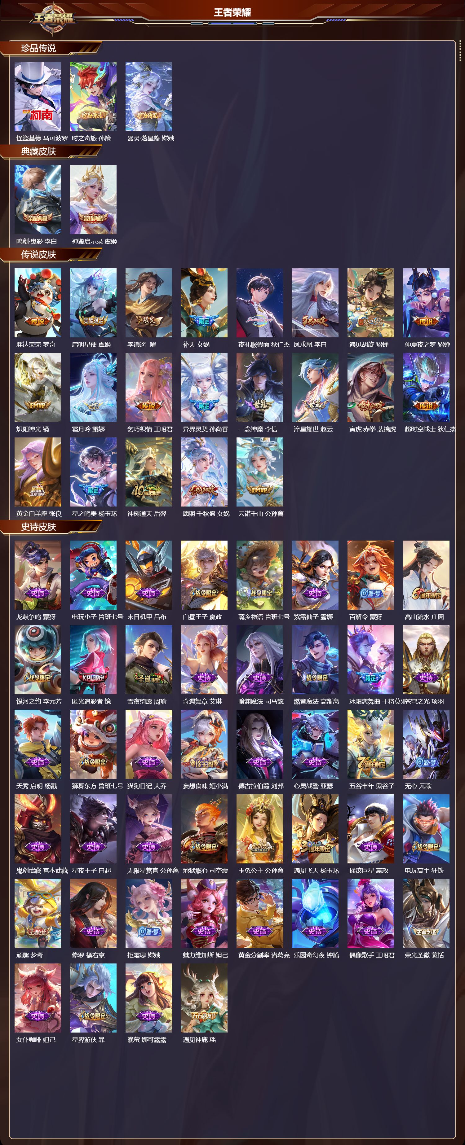 安卓qq/至尊星耀/371皮肤/127英雄/2典藏/0珍品无双/0无双/3珍品传说/21传说/127史诗/9稀有英雄【3 珍品传说】怪盗基德 马可波罗时之奇旅 孙策器灵·落星盏 嫦娥【2 典藏皮肤】鸣剑·曳影 李白神鉴启示录 虞姬【21 传说皮肤】胖达荣荣 梦奇启明星使 虞姬李 曜补天 女娲夜礼服假面 狄仁杰凤求凰 李白遇见胡旋 貂蝉仲夏夜之梦 貂