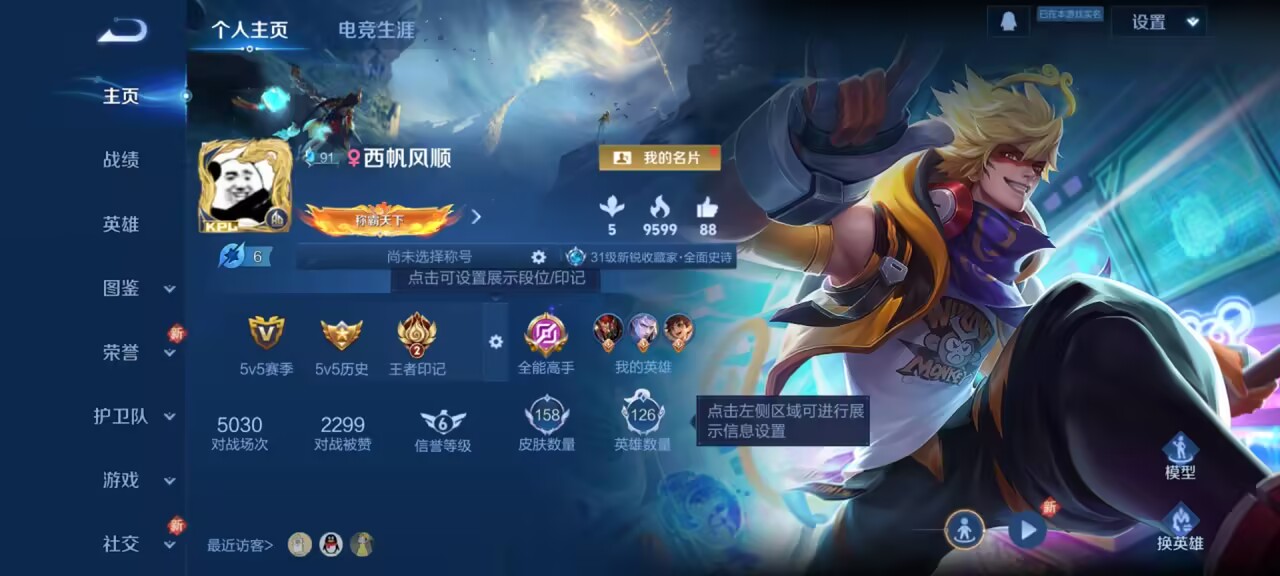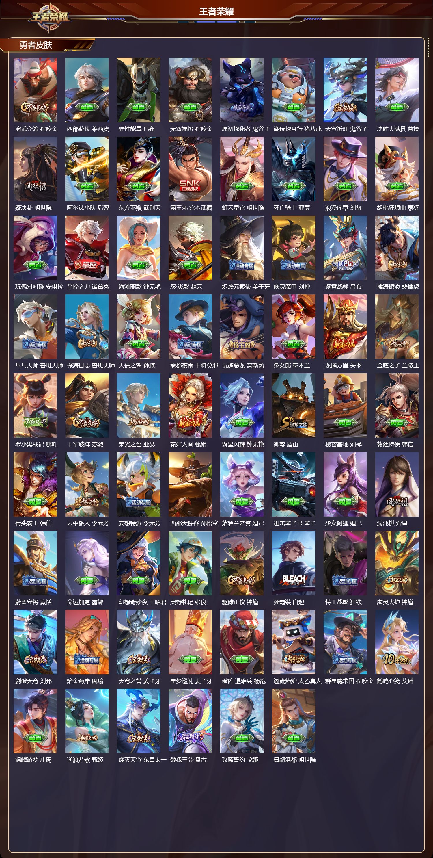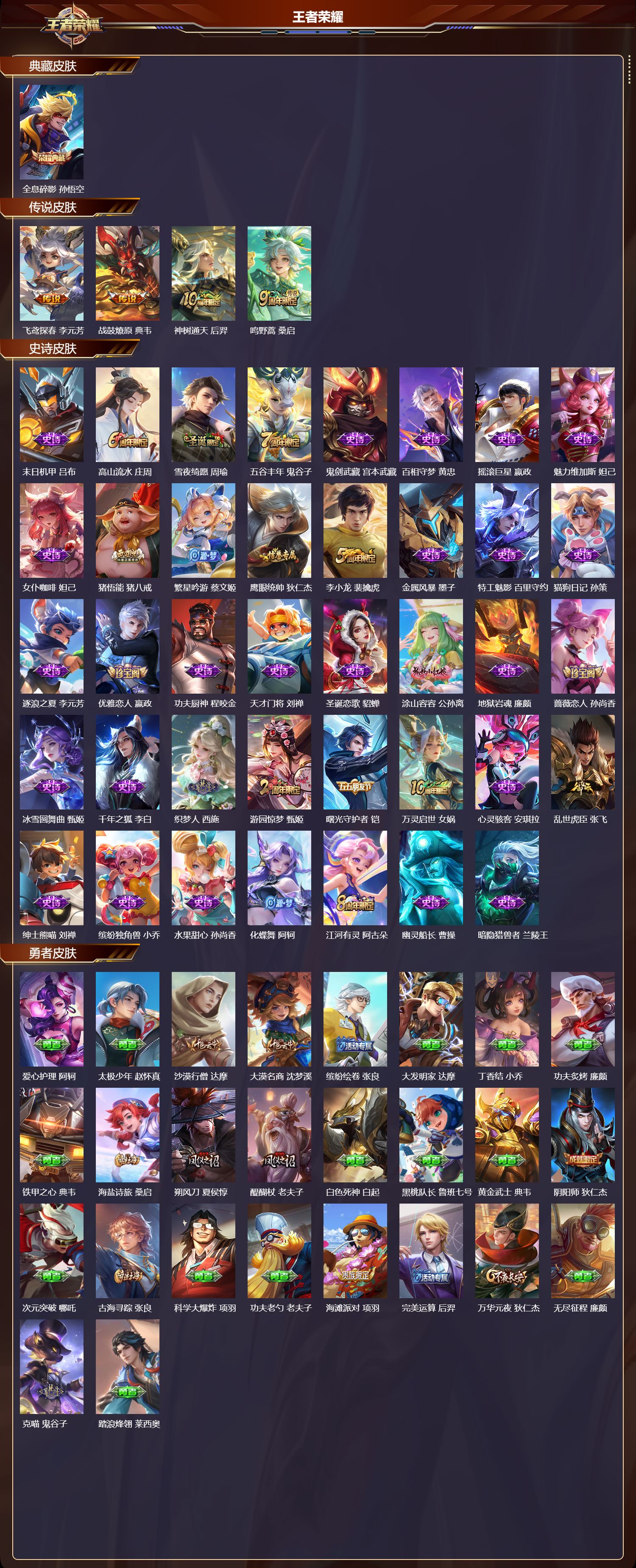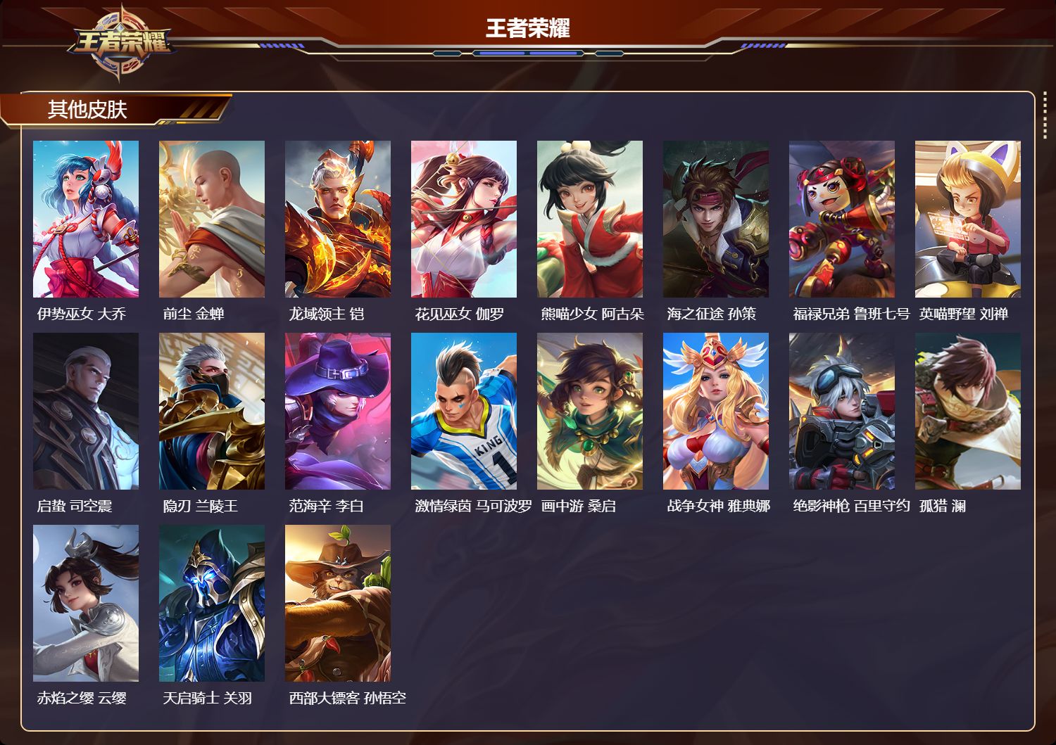 安卓qq/永恒钻石/158皮肤/126英雄/1典藏/0珍品无双/0无双/0珍品传说/4传说/39史诗/8稀有英雄【1 典藏皮肤】全息碎影 孙悟空【4 传说皮肤】飞鸢探春 李元芳战鼓燎原 典韦神树通天 后羿鸣野蒿 桑启【39 史诗皮肤】末日机甲 吕布高山流水 庄周雪夜绮愿 周瑜五谷丰年 鬼谷子鬼剑武藏 宫本武藏百相守梦 黄忠摇滚巨星 嬴政魅力维加斯 妲己