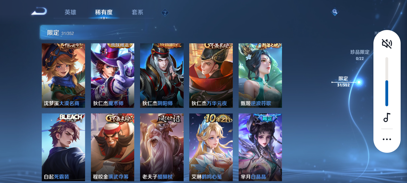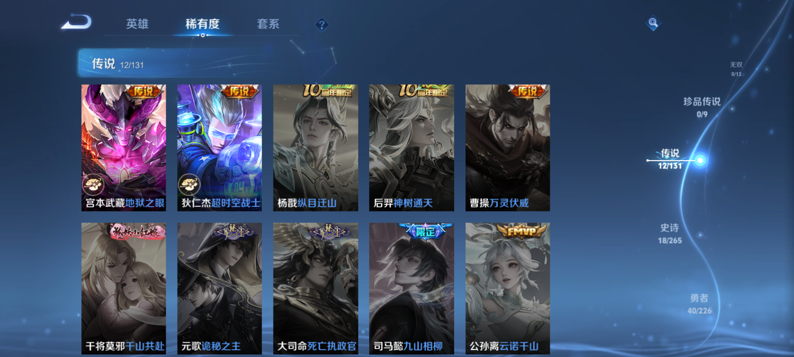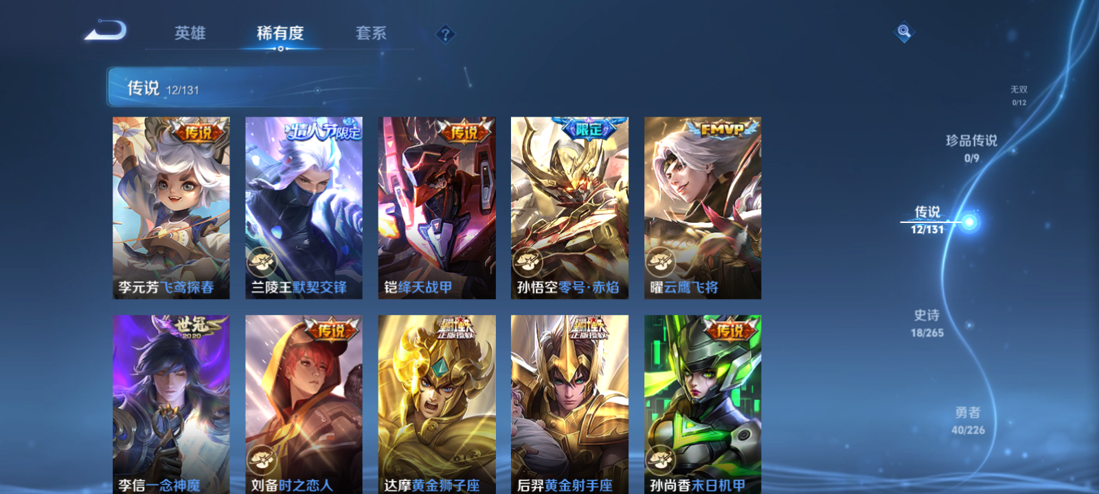 【12传说 v7 】安卓q-85皮肤-102英雄 【传说皮肤】 黄金狮子座 超时空战士 地狱之眼 黄金射手座 绛天战甲 默契交锋 一念神魔 飞鸢探春 时之恋人 末日机甲 零号·赤焰 云鹰飞将 【史诗皮肤】 默契交锋 谧流熔炉 白晶晶 魅语 舞动绿茵 幽灵船长 功夫厨神 魅力维加斯 魔术师 鹰眼统帅 鬼剑武藏 修罗 暗隐猎兽者 天才门将 晚萤 心灵战警 云间偶戏 皇家上将 五