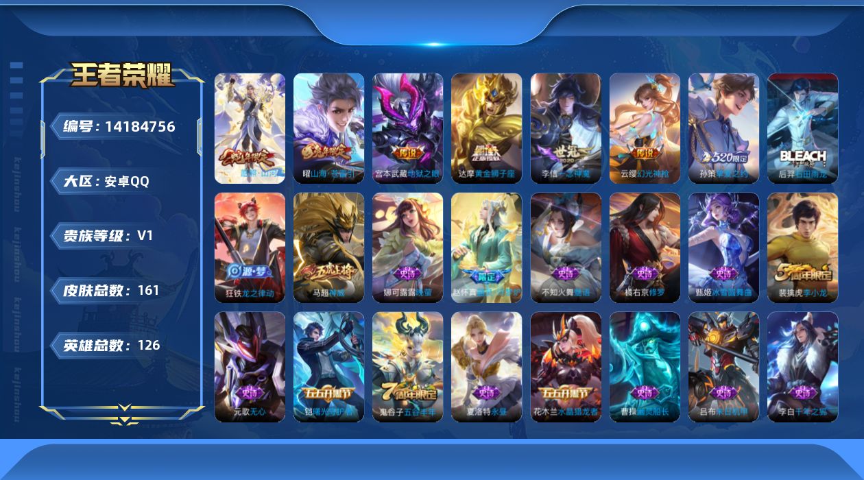 [14184756]【终身售后 找回包赔】安卓手q277区161皮0典藏7传说0无双 营地id1843382528包人脸v1至尊星耀iv 【优质限定皮肤】:神威山海·苍雷引【传说皮肤】:地狱之眼挚爱之约一念神魔黄金狮子座愿照·山河定幻光神呛山海·苍雷引【特殊英雄】:嬴政,【史诗皮肤】:乘风破浪石田雨龙龙之律动魔术师修罗魅语永昼晚萤星夜王子功夫厨神曙光守护者幽灵船长皇家上将末日机甲鹰眼统帅金属风暴梁祝高山流水神威白龙吟水果甜心纤云弄巧李小龙偶像歌手千年之狐魅力维加斯五谷丰年游园惊梦蔷薇恋人冰雪圆舞曲猫狗日记节奏热浪天才门将逐浪之夏无心地狱岩魂未来纪元暗隐猎兽者器灵·浮梦炉鬼剑武藏水晶猎龙者 星元:18按键:4贵族:6皮肤碎片:114荣耀积分:16英雄碎片:191