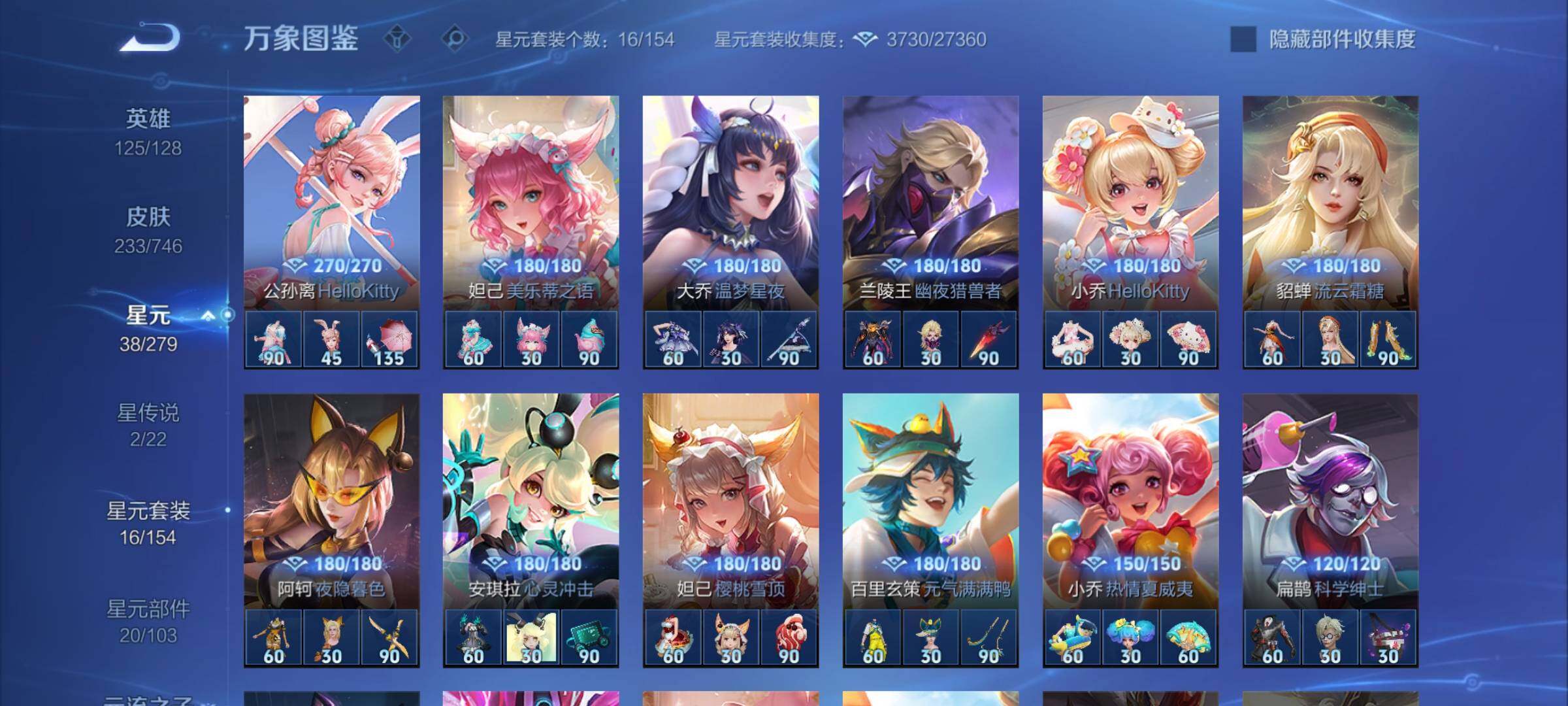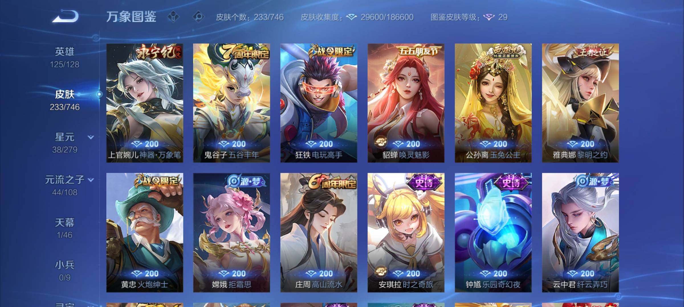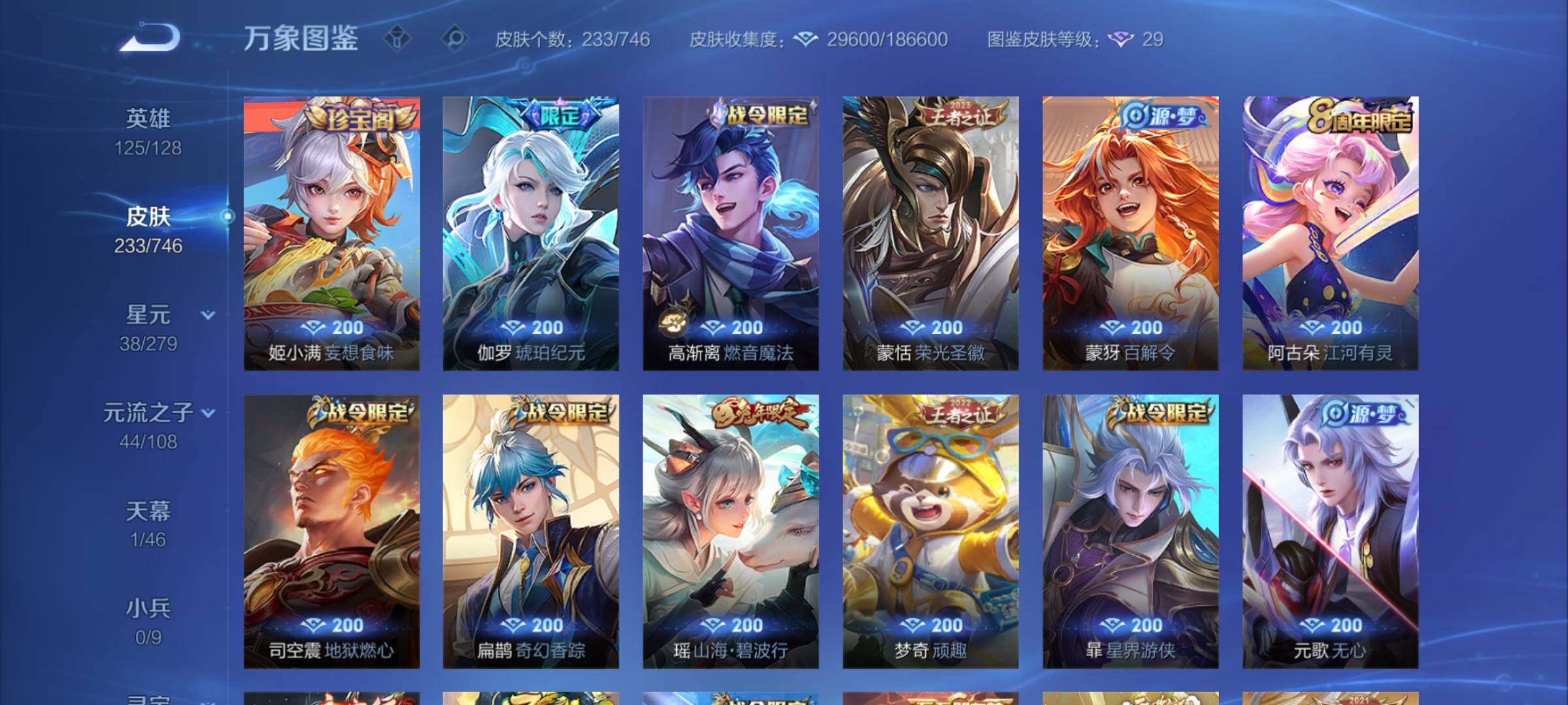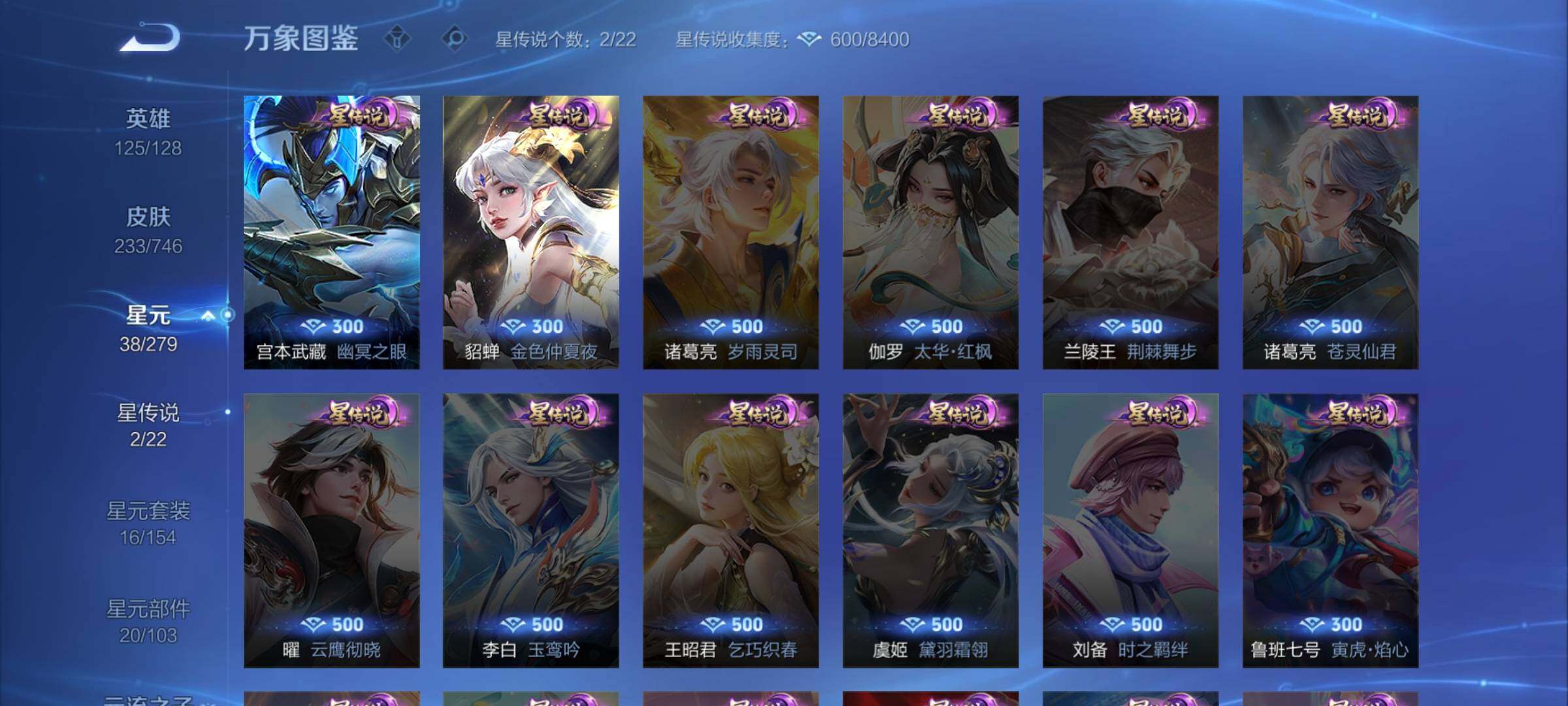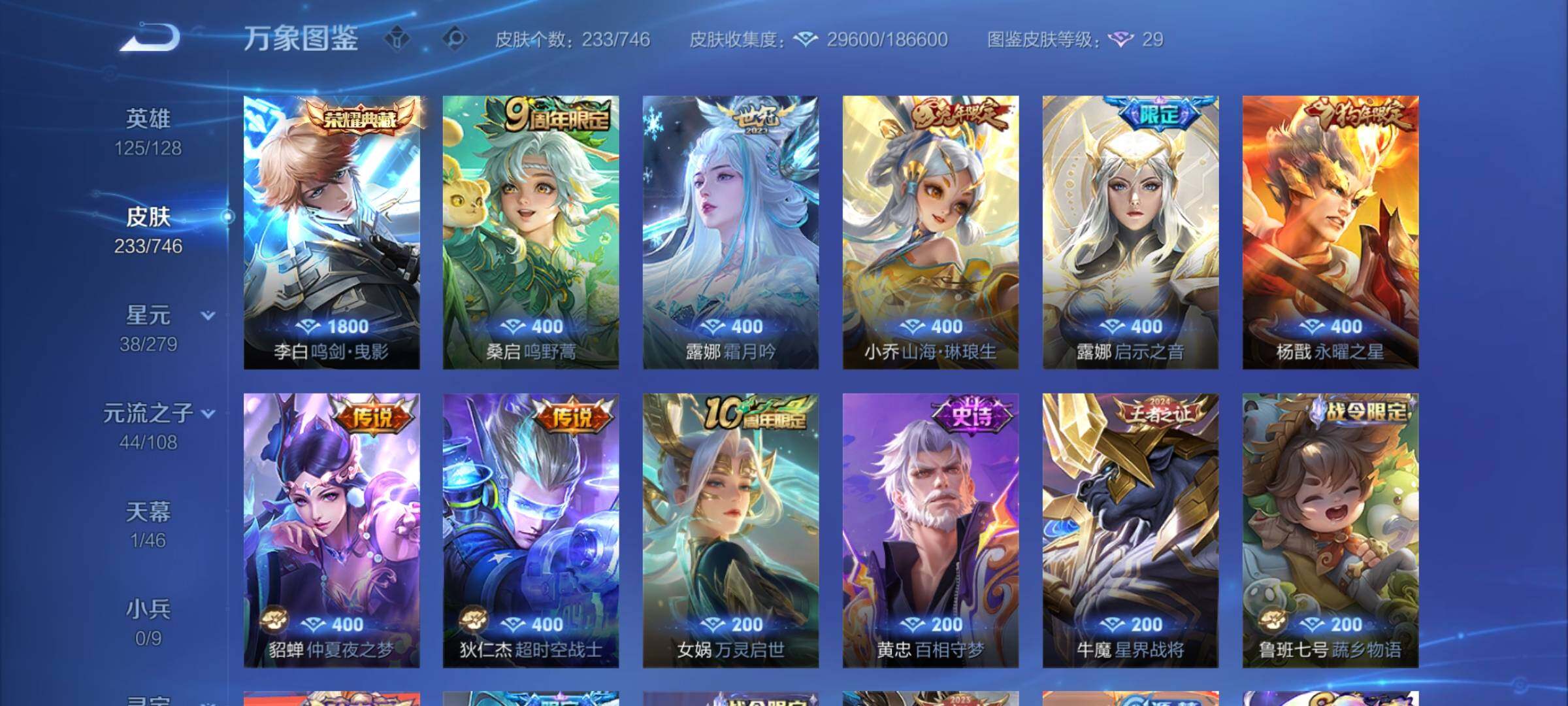 【店铺主推·露娜全皮·鸣剑曳影·山海琳琅生·永曜之星·山海碧波行·2星传说·可二次】w6781-安卓q-125英雄-233皮肤-15王者印记-240铭文-贵族积分2w【贵族7】【1典藏·2星传说·7传说·1天幕·4按键】【因赛季更新游戏段付以上号为准!】 【英雄全皮】:露娜全皮,蒙恬全皮 【荣耀典藏】:李白鸣剑曳影 【星元皮肤】:宫本武藏幽冥之眼,貂蝉金色仲夏夜 【天幕】:共赏芳华天幕 【