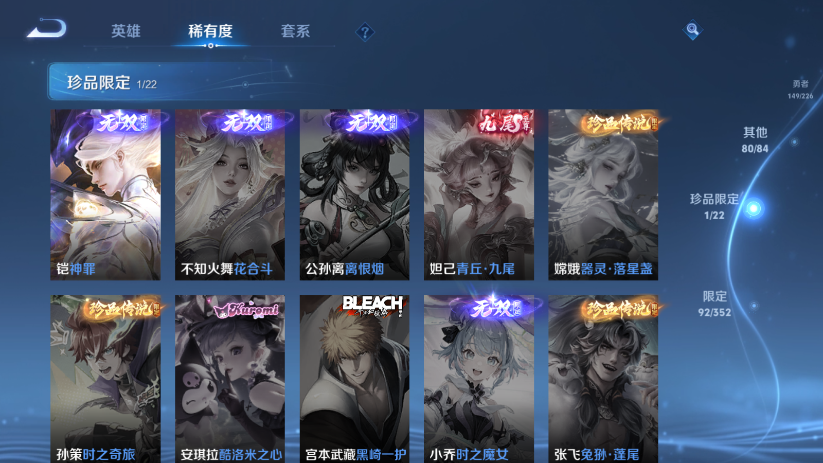 2284329v9-366皮肤5典藏1无双27传说 2星传说 幽冥火 金色仲夏夜【典藏】 拾光映像 无限飓风号 天鹅之梦 大秦宣太后 星域神启 【无双】 神罪 【传说】 小动物乐团 神树通天 鸣野蒿 启明星使 牧神诗旅 零号赤焰 深海之息 无尽星芒 异界灵契 挚爱之约 挚爱花嫁 淬星耀世 乞巧织情 音你心动女 无双飞将 地狱火 炽阳神光 云鹰飞将 猫影幻舞 久胜战神 一念神魔 云霓雀翎