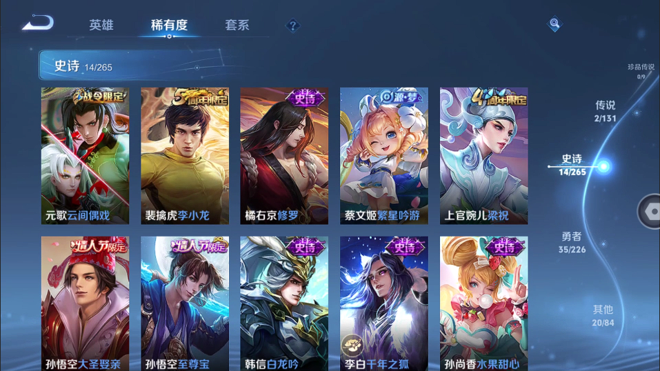【王者荣耀】【lywz21485】珍品无双0 典藏0 无双0 珍品传说0 传说2 史诗14 英雄96 皮肤71 贵族6级 传说皮肤:地狱之眼|凤求凰__稀有限定:至尊宝|大圣娶亲|李小龙|梁祝|大漠名商|繁星吟游|海滩派对|皇家上将|混沌棋|金庭之子|魔术师|沙漠行僧|朔风刀|醍醐杖|玩趣恶龙|万华元夜|演武夺筹|阴阳师|云间偶戏|白龙吟|苍穹之光|水果甜心|紫霞仙子|修罗|千年之狐|御霄|原初探秘者|云中旅人|荣光之誓|鹤鸣心笺__优质皮肤:一千零一夜|创世神祝|孤猎|午夜歌剧院|未来旅行|第七人偶|街头旋风|绝影神呛|隐刃|范海辛|星航指挥官|龙域领主|东海龙王|灼热之刃|战争女神|异域舞娘|精灵公主|修竹墨客|秘密基地|海滩丽影|阿尔法小队|兔女郎|死亡骑士|少女阿狸|忍·炎影|街头霸王|黑桃队长|拳王|白色死神|程咬金-星际陆战队|大发明家|哥特玫瑰|缤纷绘卷|龙腾万里|霸王丸|孙悟空-西部大镖客|牛魔-西部大镖客|潮玩骑士王__贵族等级:贵族6级__王者段位:至尊星耀凤求凰 地狱之眼 至尊宝 大圣娶亲