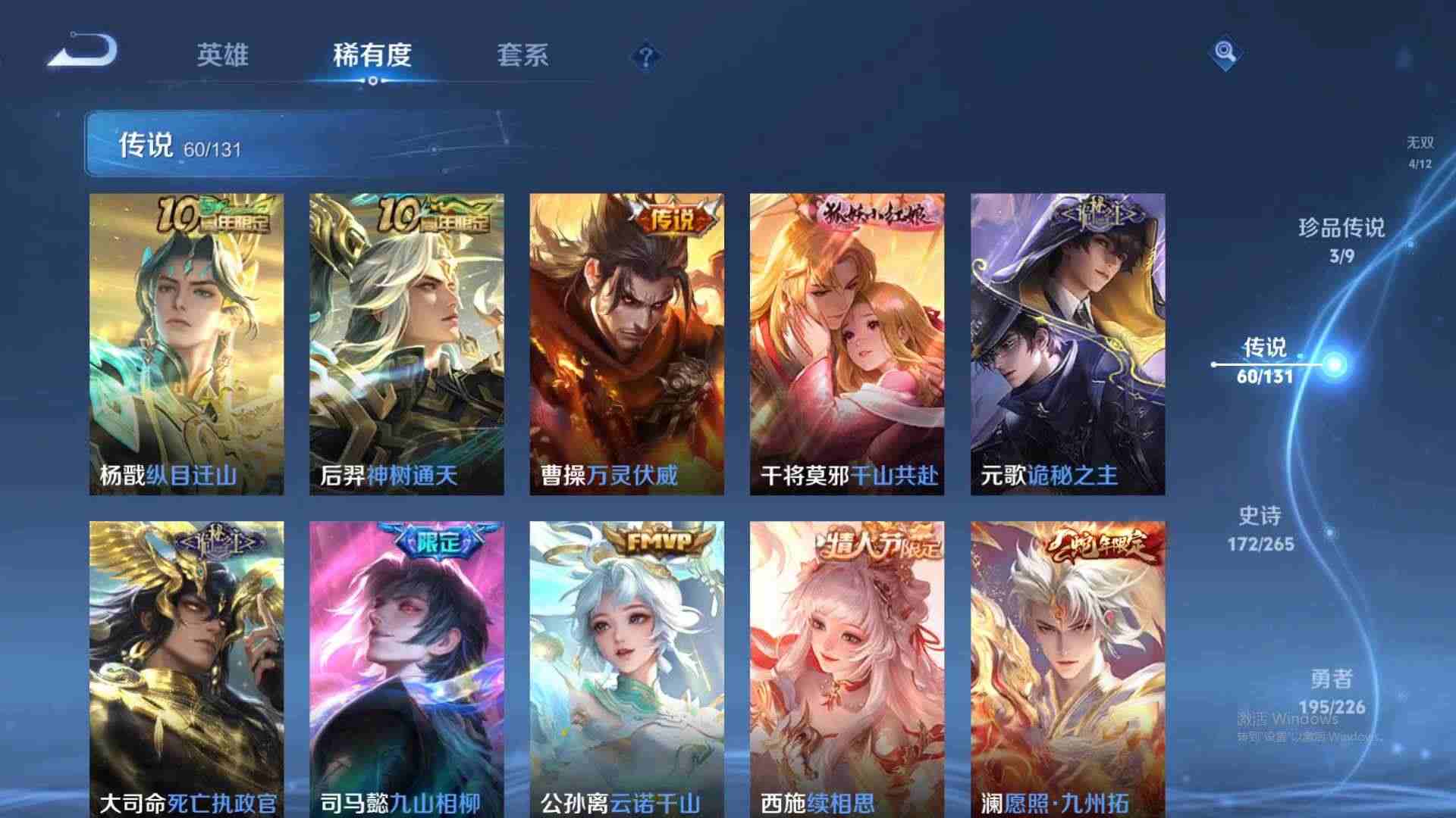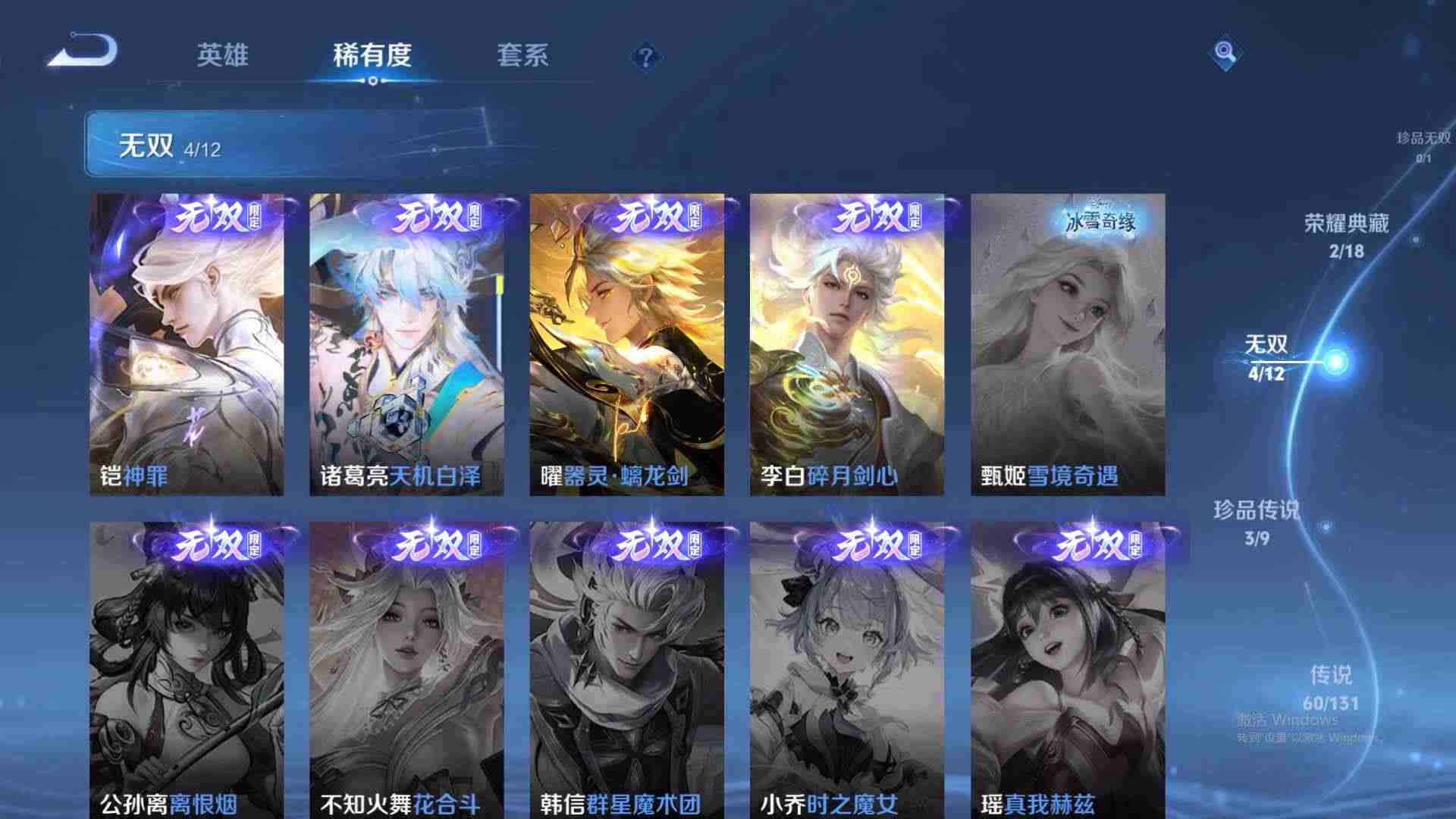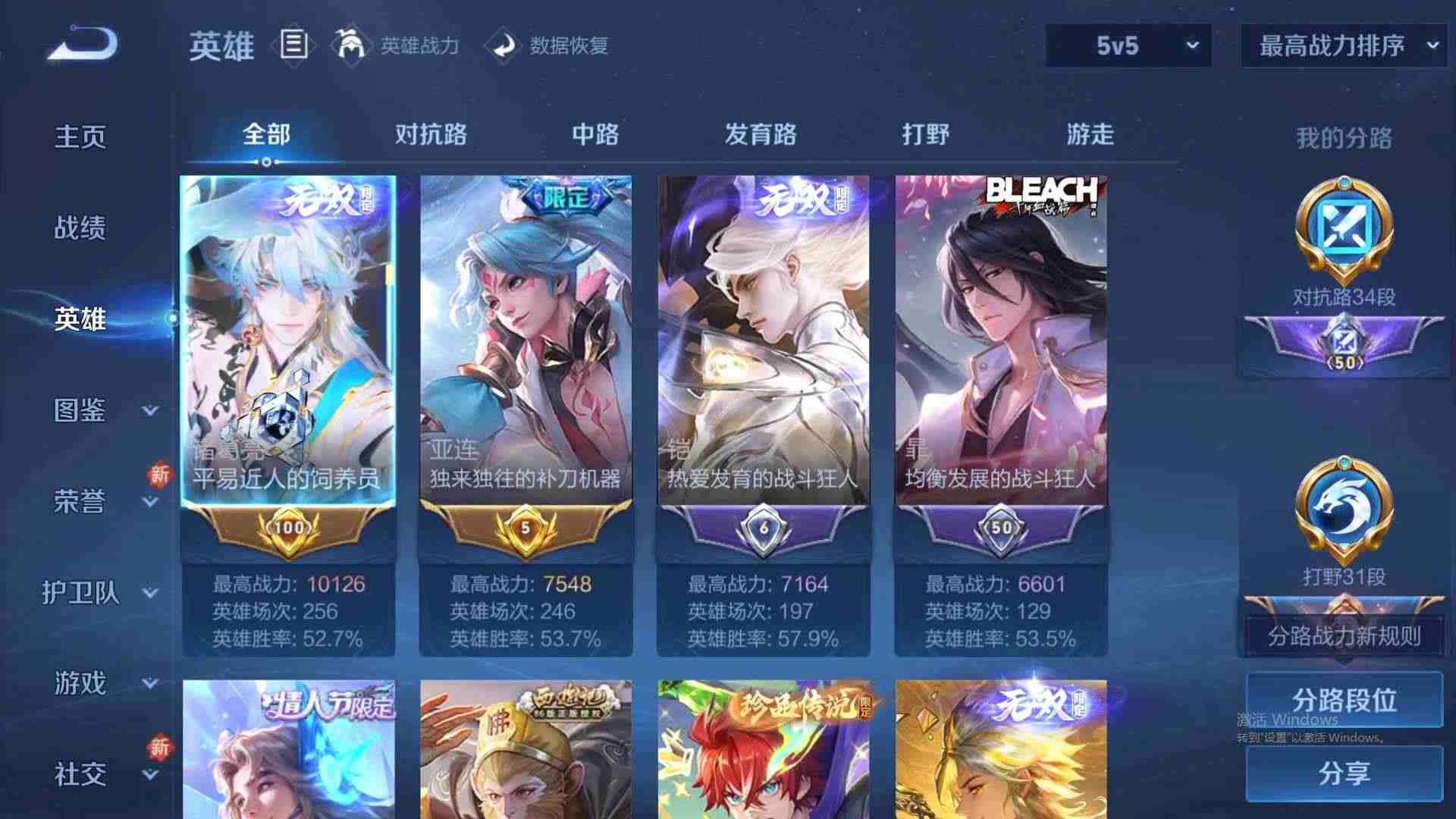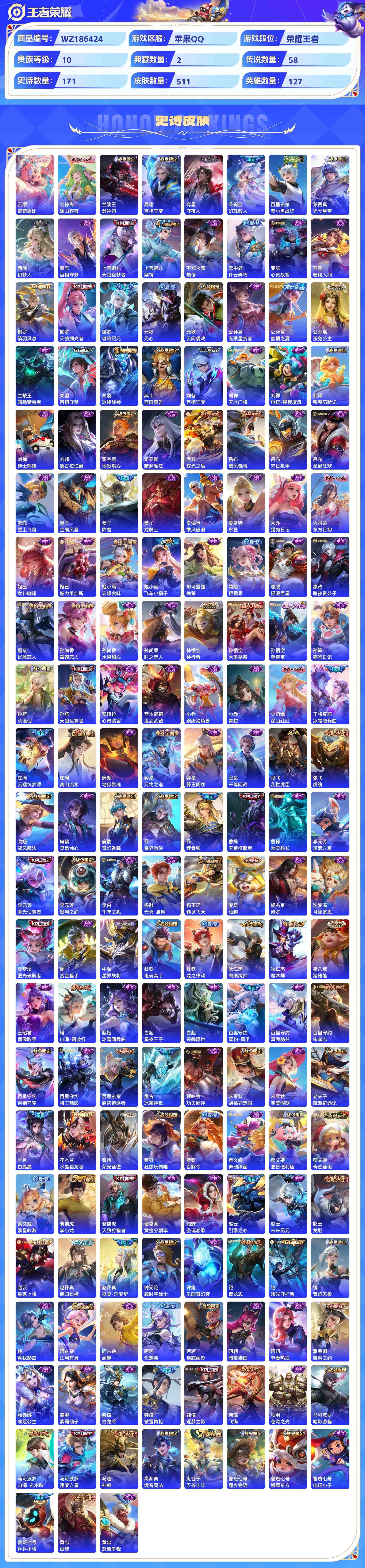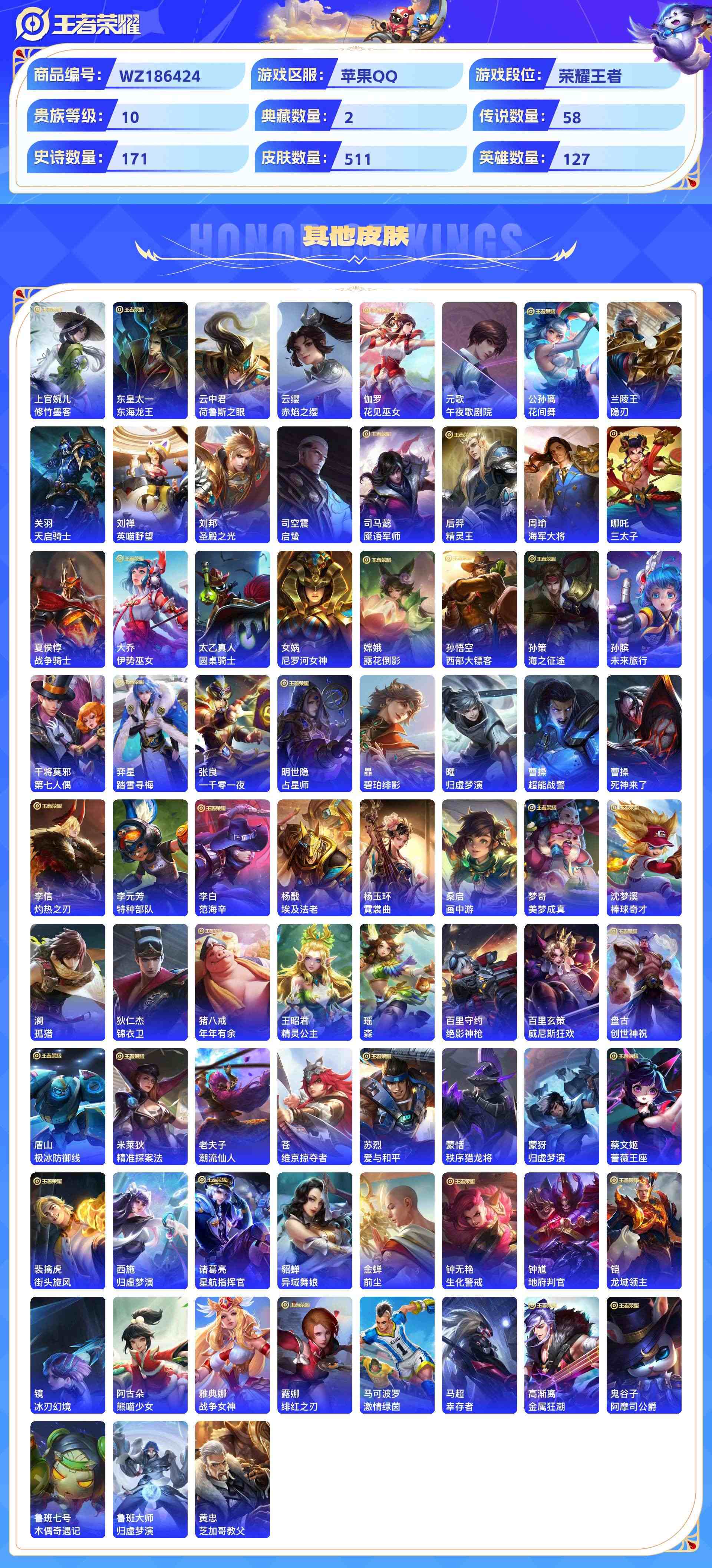 wz186424|精品金标万战号3金标(诸葛亮 亚连 项羽)1万战(诸葛亮)苹果qq 贵族10级 511皮 2典藏(鸣剑·曳影星域神启) 3珍品传说(朽木白哉器灵·落星盏时之奇旅) 4无双(天机白泽神罪器灵·螭龙剑碎月剑心) 58传说 171史诗4星传说34个性按键