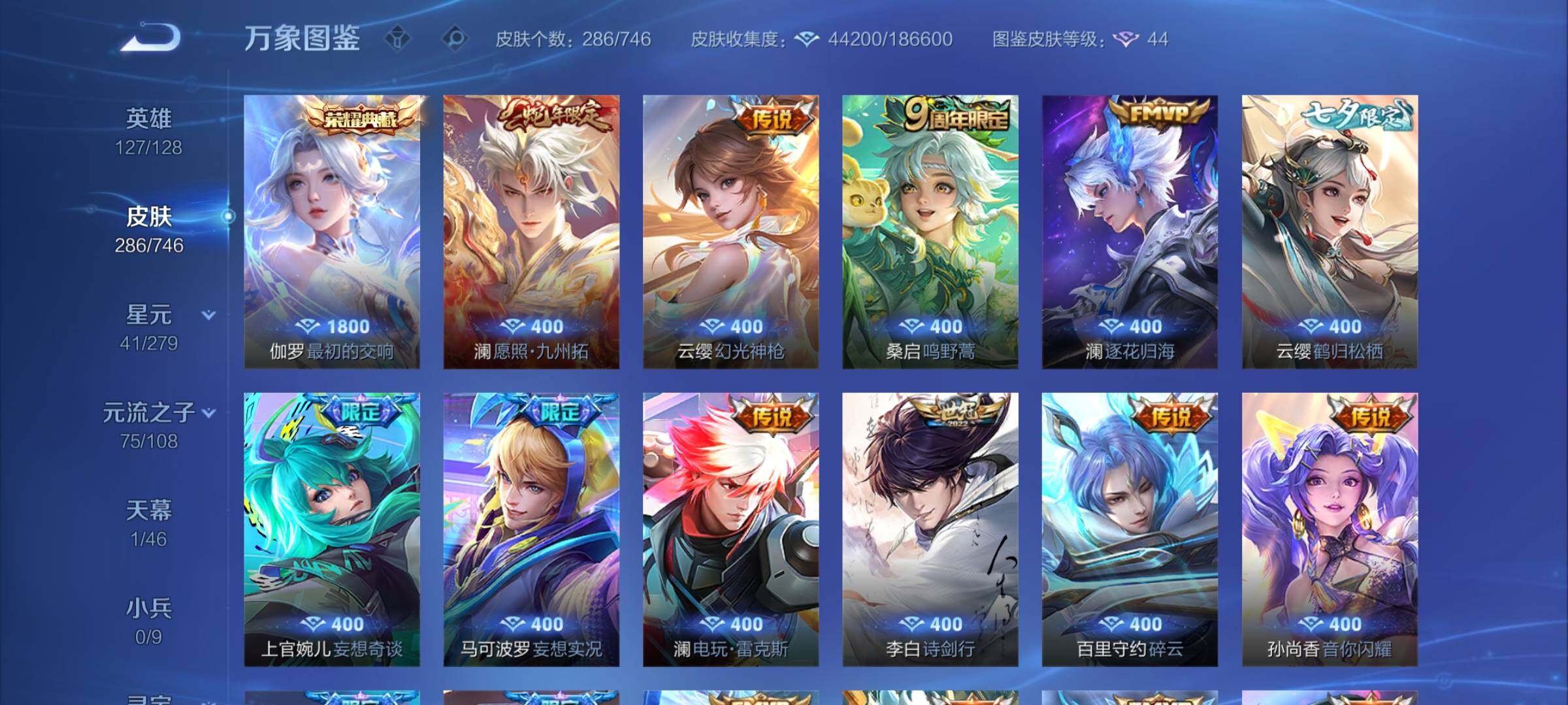 【店长推荐·全皮澜·最初的交响·hello kitty天幕·鹤归松栖·妄想奇谈·妄想实况·诗剑行·碎云·深海之息·无尽星芒·无双飞将·游龙清影·绛天战甲·炽阳神光·曜云鹰飞将·可二次】w6824-安卓q-127英雄-286皮肤-7王者印记-180铭文-贵族积分9w【贵族8】【1典藏·1星传说·27传说·1天幕·7按键】【因赛季更新游戏段付以上号为准!】 【英雄全皮】:孙权全皮,澜全皮,戈娅