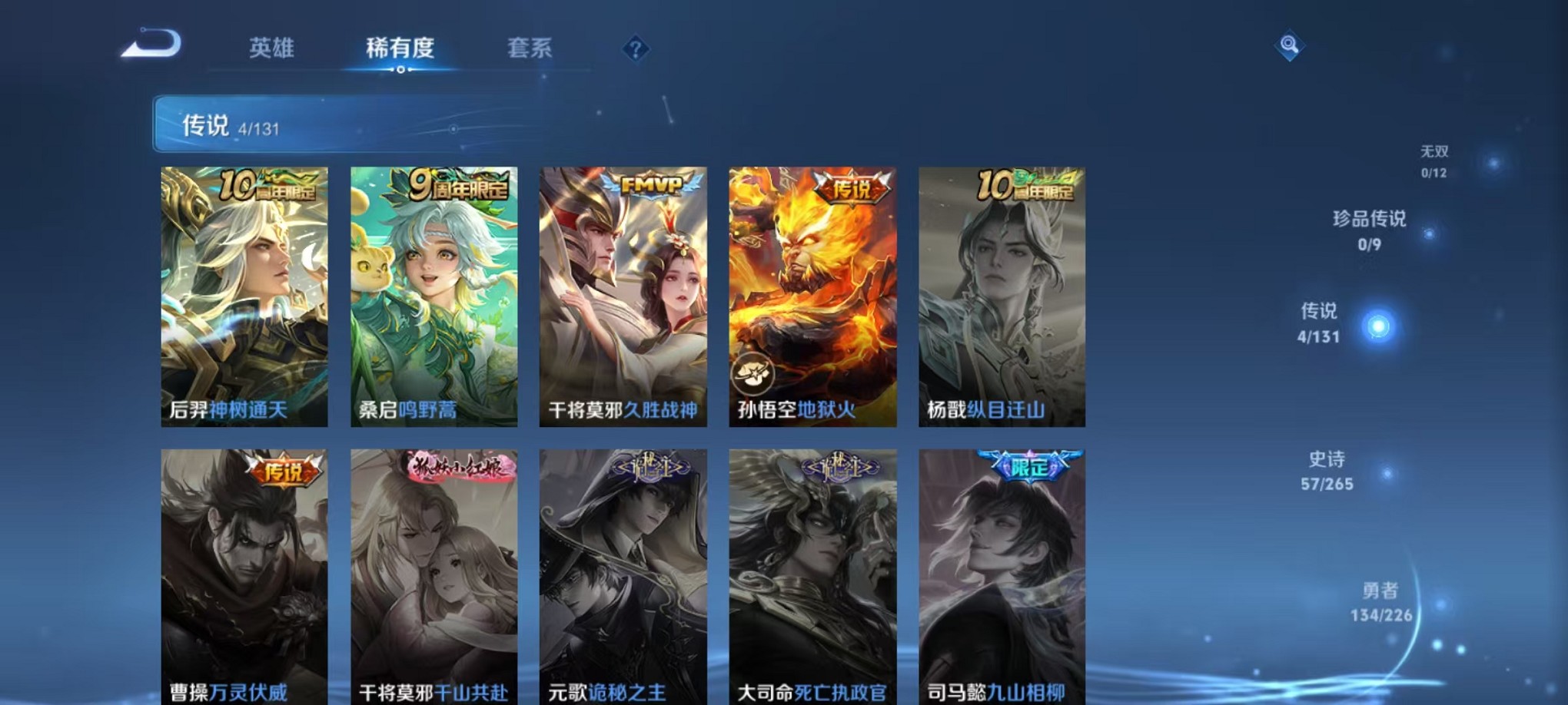 【259皮肤1典藏1星元4传说可秒换绑】安卓q-125英雄【1水晶】全息碎影【1星元】幽冥火【4传说】神树通天 鸣野蒿 久胜战神 地狱火【54史诗】荣光圣徽 龙之律动 百相守梦 万物之道 涂山容容 顽趣 电玩·爆裂旋风 舞动绿茵 幽灵船长 繁星吟游 功夫厨神 女仆咖啡 魅力维加斯 魔术师 鹰眼统帅 蓝屏警告 圣诞恋歌 蜜橘之夏 鬼剑武藏 水晶猎龙者 暗隐猎兽者 天才门将 紫霞仙