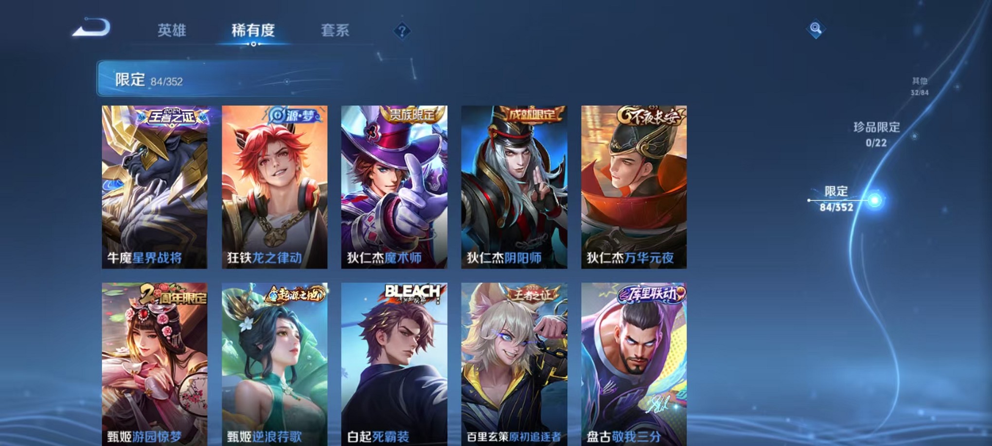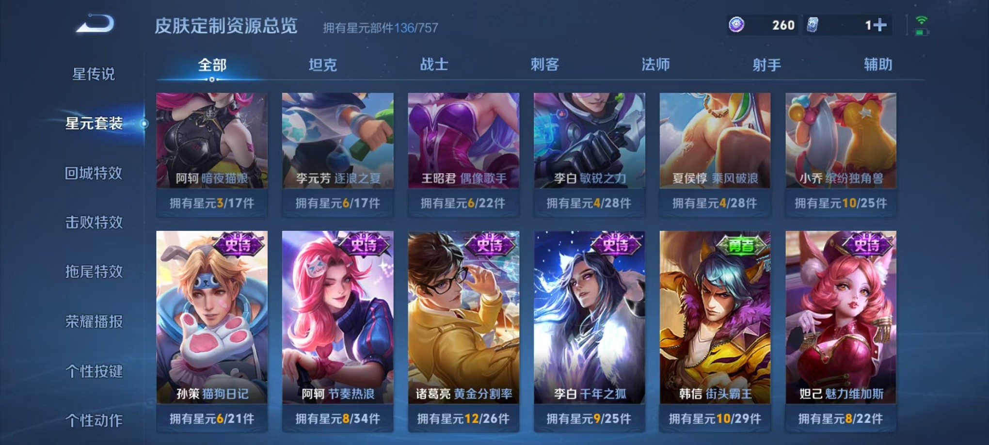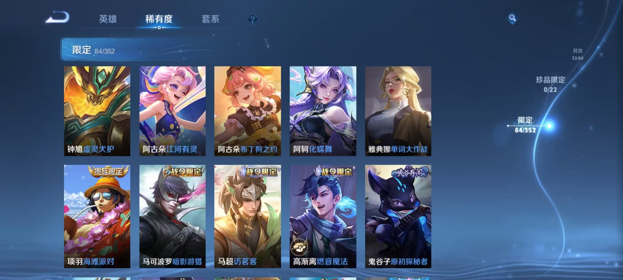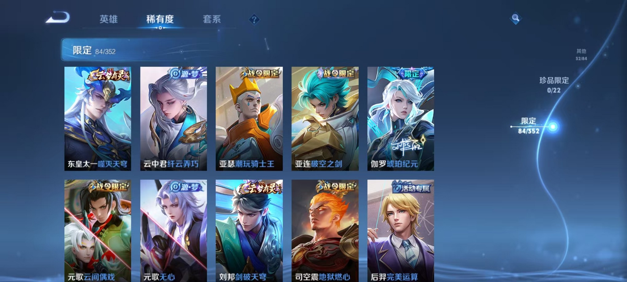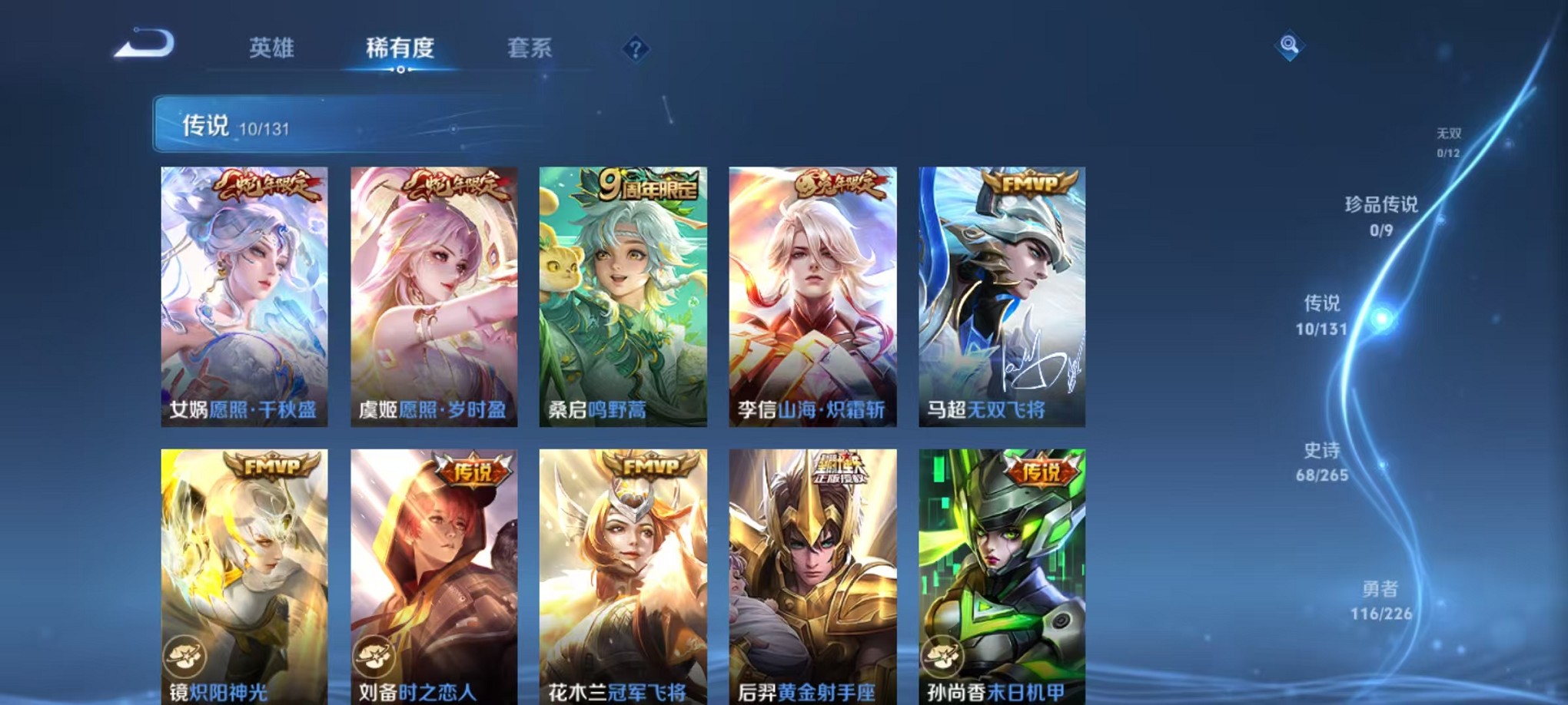 【227皮肤1典藏2星元11传说 可秒换绑】安卓q-127英雄【1水晶】 星域神启【2星元】未来机甲 时之思念【11传说】至美·乘鲤谣 鸣野蒿 愿照·岁时盈 愿照·千秋盛 炽阳神光 山海·炽霜斩 无双飞将 黄金射手座 冠军飞将 时之恋人 末日机甲【58史诗】百解令 荣光圣徽 龙之律动 百相守梦 奇幻香踪 琥珀纪元 器灵·浮梦炉 星界游侠 顽趣 驭风魔法 狼魂孤将 电玩·爆裂旋风