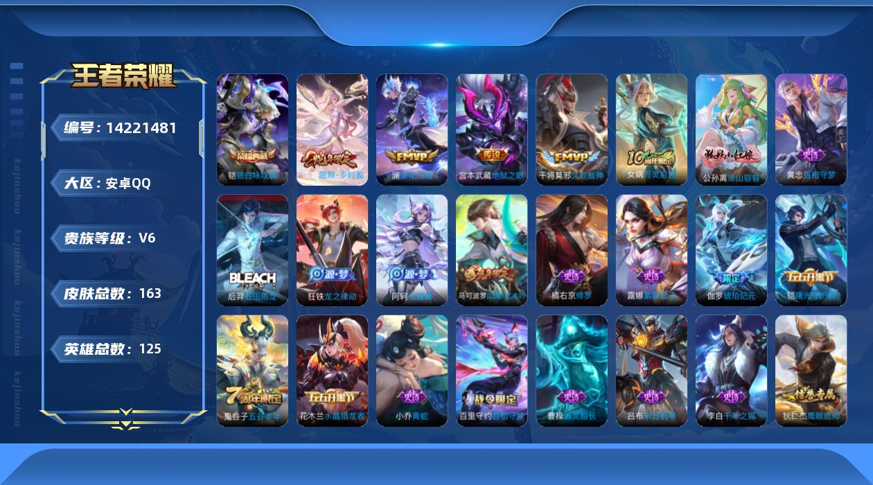 [14221481]安卓q-v5-最强王者段位-125英雄-163皮肤-1典藏皮肤-5传说-44史诗 【英雄全皮】:孙权全皮 【荣耀典藏】:铠银白咏叹调 【传说皮肤】:后羿神树通天,虞姬愿照岁时盈,澜逐花归海,干将莫邪久胜战神,宫本武藏地狱之眼 【限定皮肤】:蒙犽顽岩魄,姜子牙天穹之誓,杨戬破阵退雄兵,狄仁杰阴阳师,赵云皇家上将,马可波罗山海玄木吟,达摩沙漠行僧,项羽海滩派对,李元芳云中旅人,钟馗驱傩正仪,女娲朔望之晖,干将莫邪胡桃夹子,鬼谷子五谷丰年,苏烈千军破阵,张良古海寻踪,蒙犽百解令,高渐离燃音魔法,妲己灵卜魔法,鬼谷子天穹祈灯,伽罗琥珀纪元,沈梦溪龙舞盛年,鲁班七号蔬乡物语,李元芳蔬乡物语,刘邦剑破天穹,程咬金群星魔术团,刘备异域游侠,周瑜熔金海岸 【年限皮肤】:马可波罗山海玄木吟 【赛季限定】:达摩沙漠行僧,张良古海寻踪,李元芳云中旅人,钟馗驱傩正仪,苏烈千军破阵,鬼谷子天穹祈灯,刘邦剑破天穹,姜子牙天穹之誓 【战令限定】:女娲朔望之晖,高渐离燃音魔法,妲己灵卜魔法,鲁班七号蔬乡物语,李元芳蔬乡物语 【史诗皮肤】:露娜紫霞仙子,赵云皇家上将,赵云未来纪元,貂蝉圣诞恋歌,王昭君偶像歌手,廉颇地狱岩魂,宫本武藏鬼剑武藏,孙尚香水果甜心,妲己魅力维加斯,吕布圣诞狂欢,曹操幽灵船长,李白千年之狐,吕布末日机甲,张飞乱世虎臣,花木兰水晶猎龙者,夏侯惇乘风破浪,诸葛亮黄金分割率,百里守约特工魅影,铠曙光守护者,蔡文姬舞动绿茵,白起星夜王子,阿轲节奏热浪,孙策猫狗日记,狄仁杰鹰眼统帅,小乔青蛇,橘右京修罗,沈梦溪月团寄思,鬼谷子五谷丰年,马可波罗山海玄木吟,蒙犽百解令,妲己灵卜魔法,高渐离燃音魔法,伽罗琥珀纪元,鲁班七号蔬乡物语,黄忠怒海争锋,蒙犽顽岩魄,百里守约百相守梦,牛魔星界战将,阿轲化蝶舞,狂铁龙之律动,后羿石田雨龙,黄忠百相守梦,公孙离涂山容容,女娲万灵启世,少司缘巫礼祀神 【其他皮肤】:项羽海滩派对,韩信教廷特使,韩信街头霸王,露娜哥特玫瑰,赵云白执事,赵云忍炎影,芈月红桃皇后,白起白色死神,牛魔西部大镖客,安琪拉玩偶对对碰,孙膑天使之翼,妲己少女阿狸,典韦黄金武士,亚瑟死亡骑士,花木兰兔女郎,甄姬花好人间,宫本武藏万象初新,狄仁杰阴阳师,刘备纽约教父,关羽龙腾万里,钟无艳海滩丽影,狂铁命运角斗场,孙尚香沉稳之力,李白敏锐之力,苏烈坚韧之力,大乔守护之力,女娲朔望之晖,小乔
