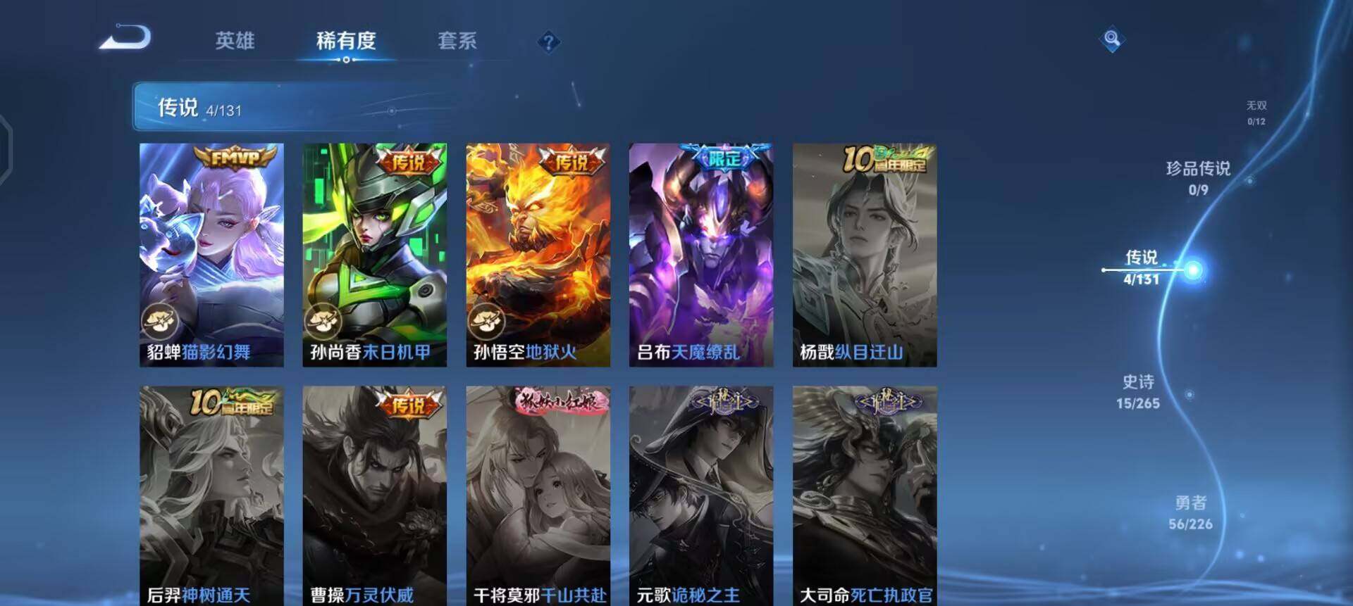 w11223 可立即换绑无需挂单养号 铭文满级 传说4 按键1 夺宝56 安卓q-v5-最强王者段位-125英雄-90皮肤-0典藏-0珍品无双-0无双-0珍品传说-4传说-15史诗 【英雄全皮】:空空儿全皮 【传说皮肤】:貂蝉猫影幻舞,孙尚香末日机甲,孙悟空地狱火,吕布天魔缭乱 【限定皮肤】:白起狰,狄仁杰阴阳师,虞姬凯尔特女王,赵云皇家上将,孙尚香蔷薇恋人,庄周蜃楼王,孙膑妖